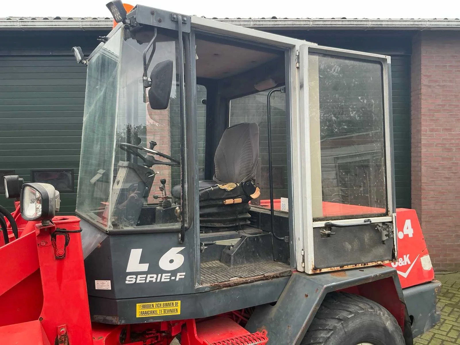 Voorzien van snelwissel, lepels, graafbak, extra ventiel, hefvermogen: 3500 kg, hydraulische schijfremmen. Nee Merk: O&K Type: L6-4 Bouwjaar: 1997 Serienummer: 277925 Merk motor: Deutz BF4M 1012 Kenteken: TTK-02-T Motorvermogen (kW): 41kW Aantal cilinders: 4 Brandstof: diesel Bedrijfsgewicht: 5800kg Graafbak afm. l: 2000mm Graafbak afm. b: 700mm Graafbak afm. h: 850mm Bandenmaat: 14/80 R20 Cabine: true Afgelezen urenstand: 8639 Totale afmeting L: 4800mm Totale afmeting Breedte: 1900mm Totale afmeting Hoogte: 2750mm