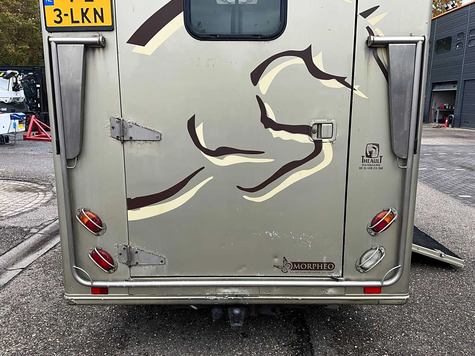 Elektrische ramen en spiegels, Cruise Control, automaat versnelling, airco, Webasto standkachel, Luchtvering, ledere bekleding, Morpheo paardenwagen opbouw, zijlader 2-paards No Kenteken: V-23-LKN Merk: Renault Type: Master 2.5 dCi Bouwjaar: 2007 Chassisnummer: VF1EDCYKH37380360 Afgelezen kilometerstand: 244000km Cilinderinhoud: 2464cc Vermogen (kW): 107kW Brandstof: Diesel Datum eerste toelating: 2007-11-09 Datum eerste toelating (NL): 11-03-2025 APK vervaldatum: 2026-09-16 Transmissie: Automaat Aantal zitplaatsen: 5 Nationaliteit documenten: Nederland Bruto BPM (NL): 10185 Aantal deuren: 2 Aantal sleutels: 2 Ledig gewicht: 1877kg Laadvermogen: 1623kg Aantal cilinders: 4 Carrosserie: Paardenwagen Emissieklasse: 4 Kentekenpapieren compleet?: true Maximaal trekgewicht geremd: 2000 Self drive export possible : true