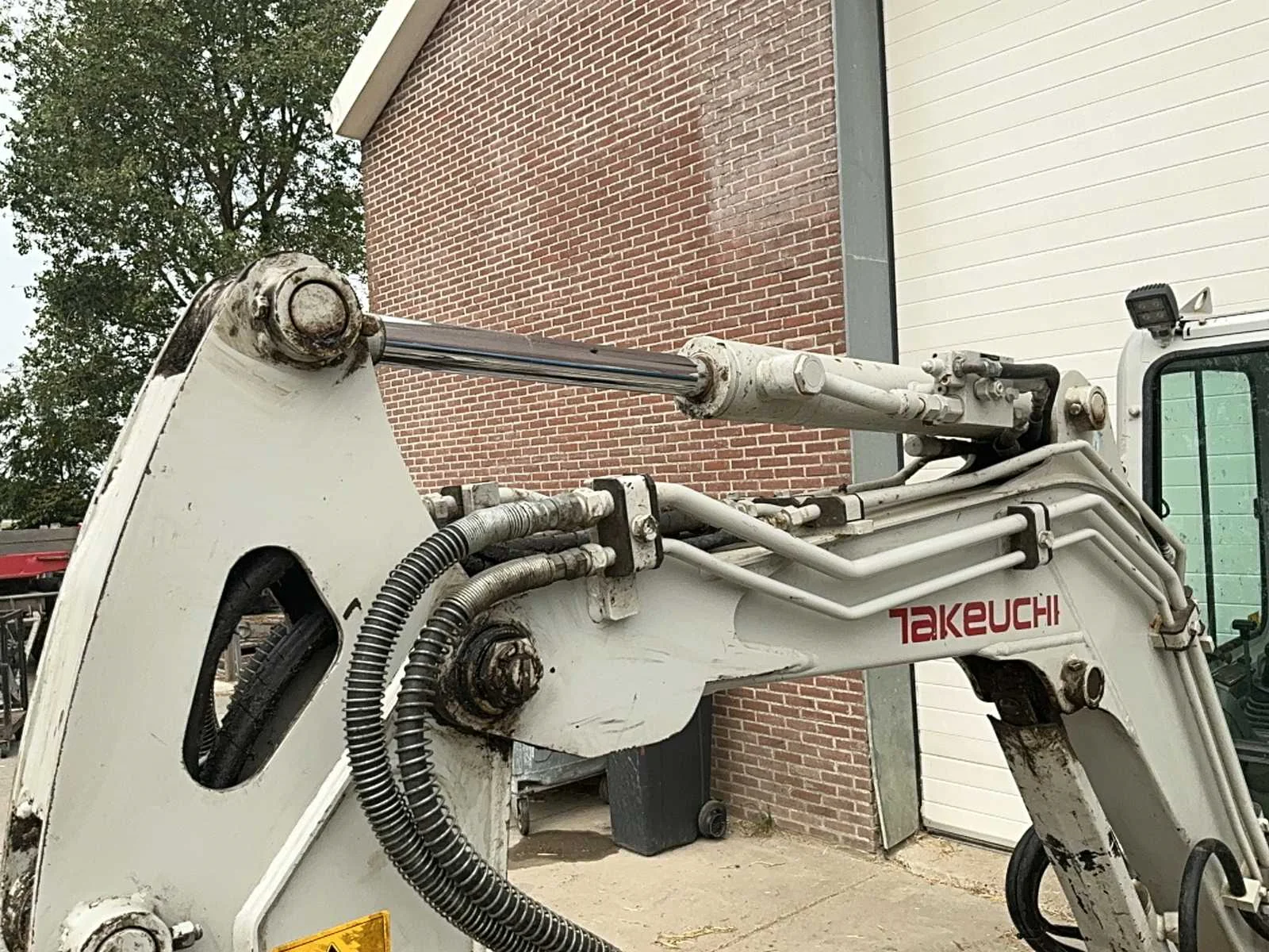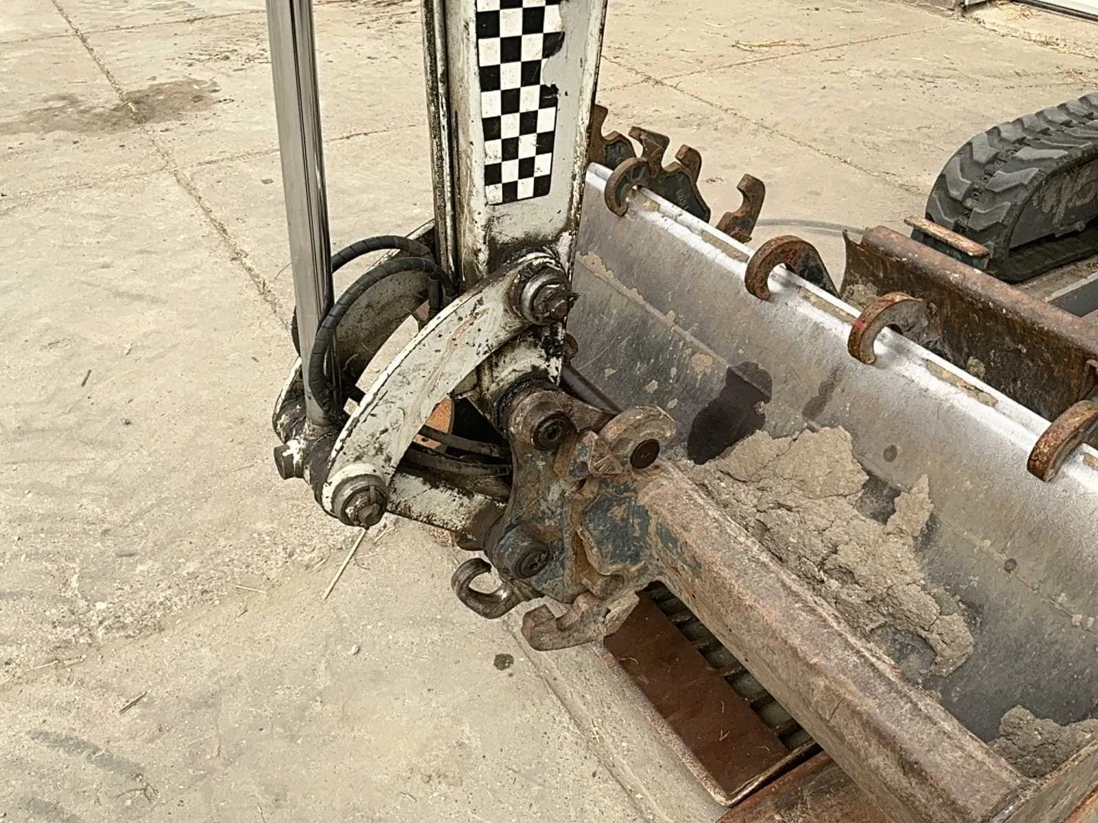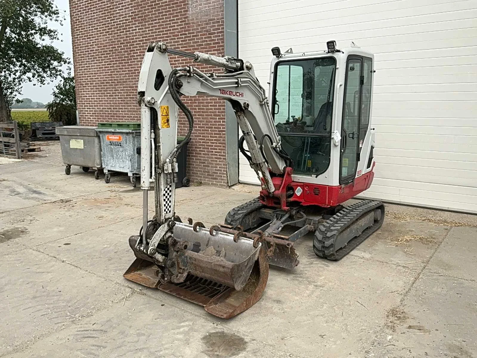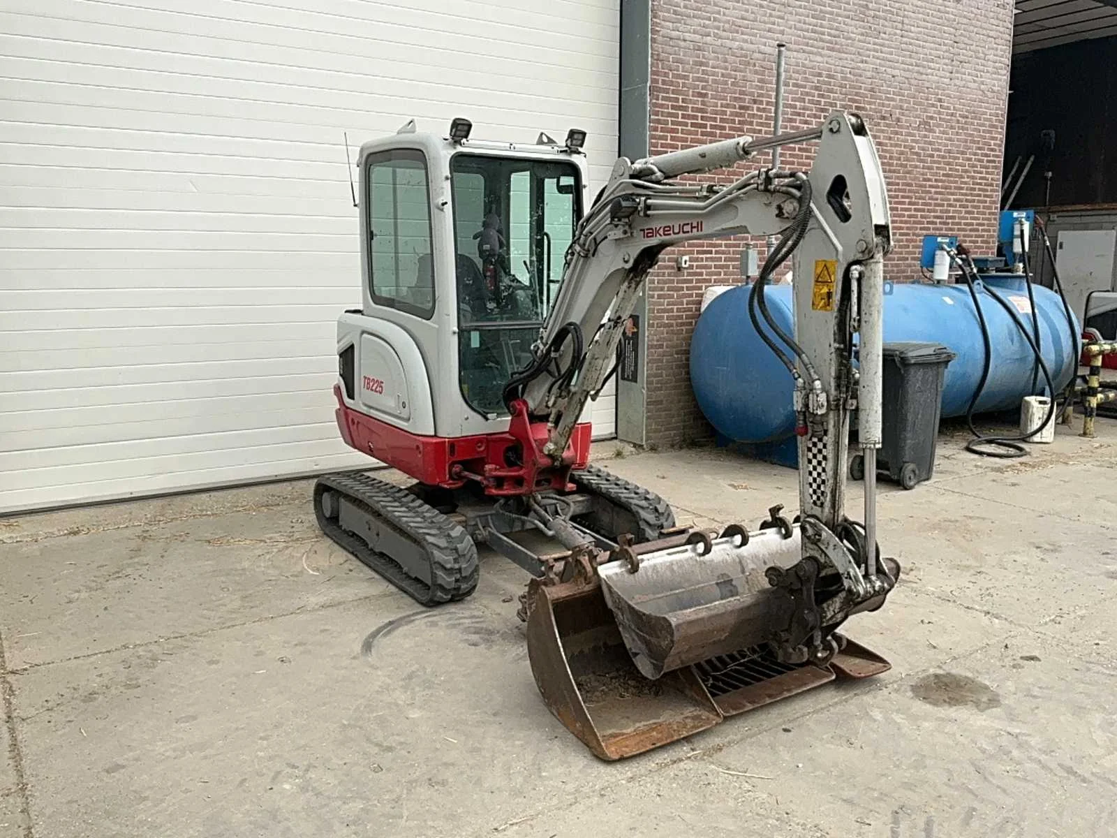 Voorzien van onder andere: verstekgiek, dozerblad, in breedte verstelbare rupsen, werkverlichting op cabine en giek, en extra functies, CW 05 hydraulische snelwissel. Inclusief 4 ‘CW 05’ graafbakken. Breedte graafbakken variërend van 240mm tot 1190mm. No Merk: Takeuchi Type: TB 225 Bouwjaar: 2018 Serienummer: 122500856 Aantal cilinders: 3 Brandstof: Diesel Bedrijfsgewicht: 2400kg Inclusief graafbak: Yes Rups breedte: 250mm Afgelezen urenstand: 3460 Totale afmeting L: 3700mm Totale afmeting Breedte: 1500mm Totale afmeting Hoogte: 2400mm