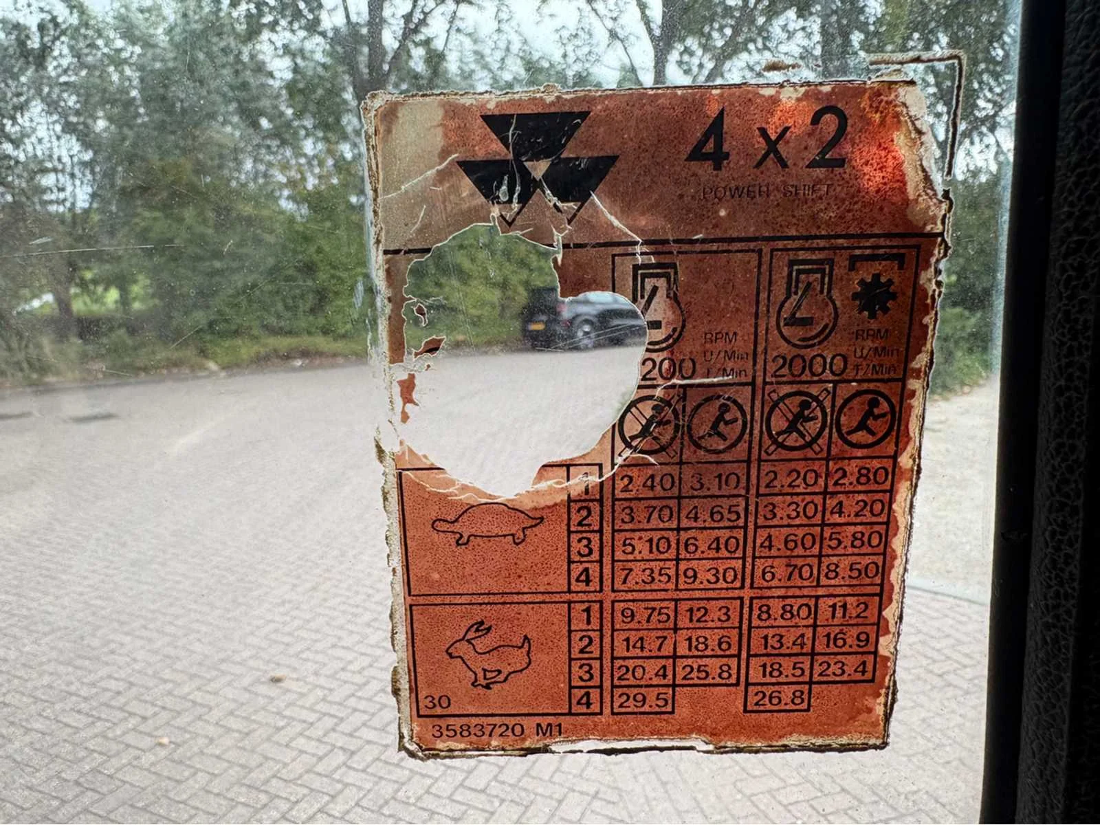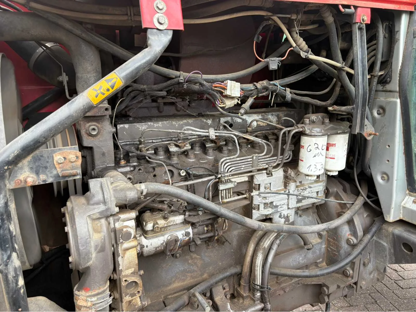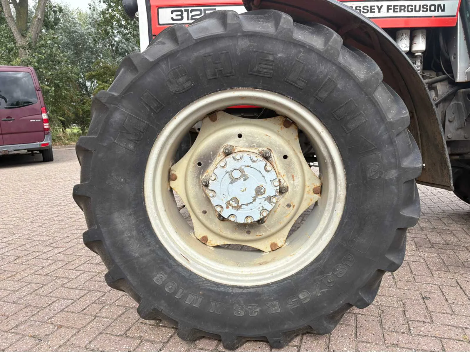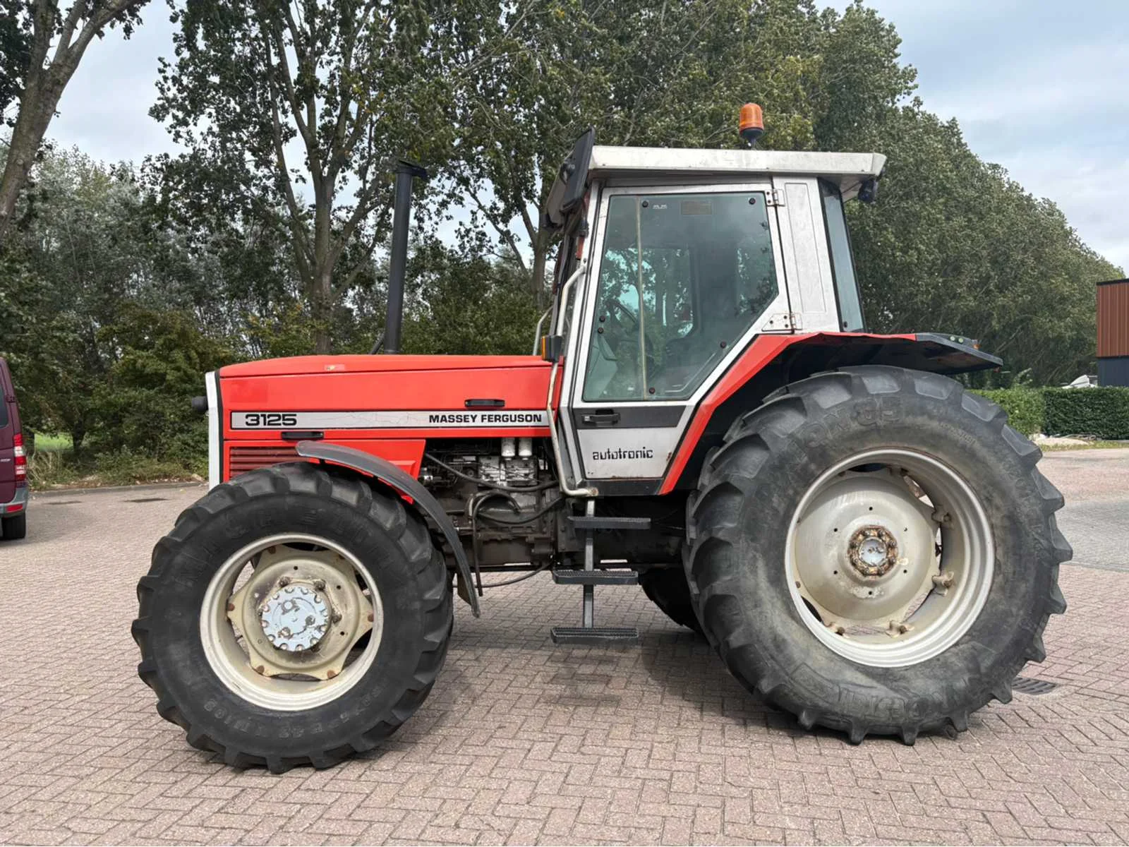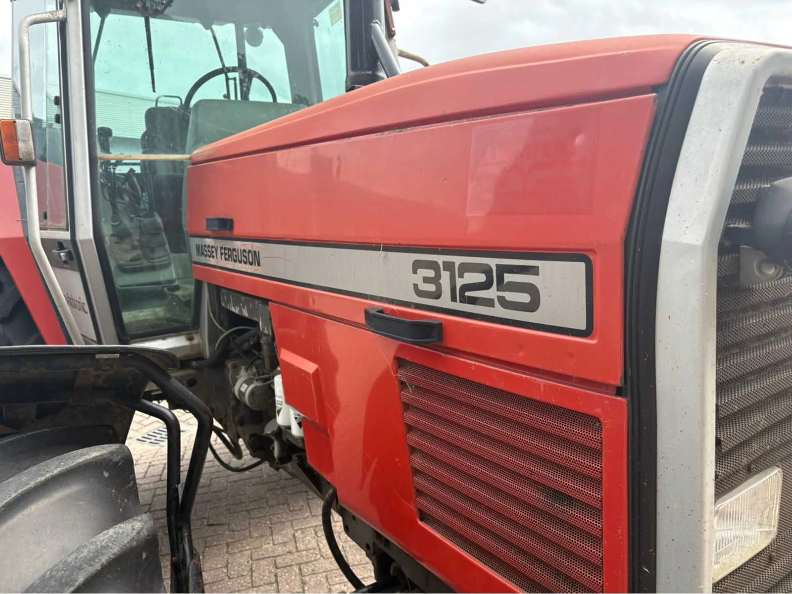 Massey Ferguson 3125 tractor, bouwjaar 1990, geproduceerd in Beauvais, Frankrijk. Serienummer R099049 en motornummer 515516U. De tractor is uitgevoerd met een 4x2 aandrijving en beschikt over een Powershift-transmissie. Het opgegeven motorvermogen bedraagt circa 120 pk (88 kW), geleverd door een Perkins 6-cilinder dieselmotor. Het leeggewicht van de tractor ligt rond de 5.000 kg, met een maximaal hefvermogen achter van circa 6.500 kg. De aftakas (PTO) levert zowel 540 als 1000 tpm. (LET OP! dit voertuig heeft een kenteken registratie, bij afhalen dient u dit ter plaatste bij een derde partij te naam te stellen of te exporteren, hier zijn extra kosten aan verbonden) Nee Merk: Massey Ferguson Type: 3125 Bouwjaar: 1990 Serienummer: R099049 Kenteken: T-14-GFN Chassisnummer: R099049 Motorvermogen (kW): 93kW Afgelezen urenstand: 6513.3 Aftakastoerental: 1000rpm Bandenmaat voor: 480/65R28 Bandenmaat achter: 520/85R38 Aantal hydraulische ventielen achter: 3 Cabine: true Luchtgeveerde stoel: true Eigen gewicht: 5210kg Totale afmeting L: 4000mm Totale afmeting Breedte: 2400mm Totale afmeting Hoogte: 3250mm Datum eerste toelating: 1990-08-07 Nationaliteit documenten: Nederland
