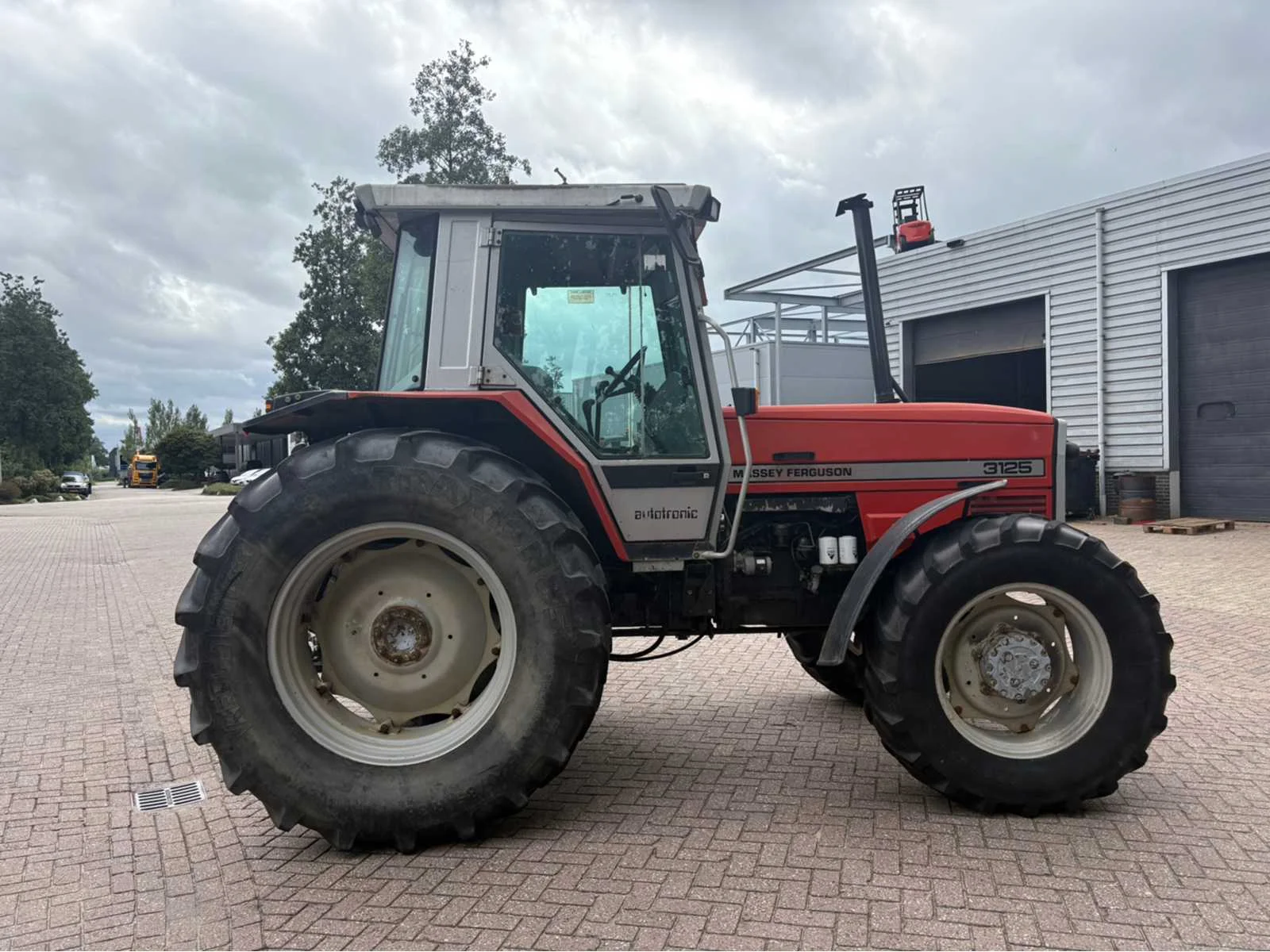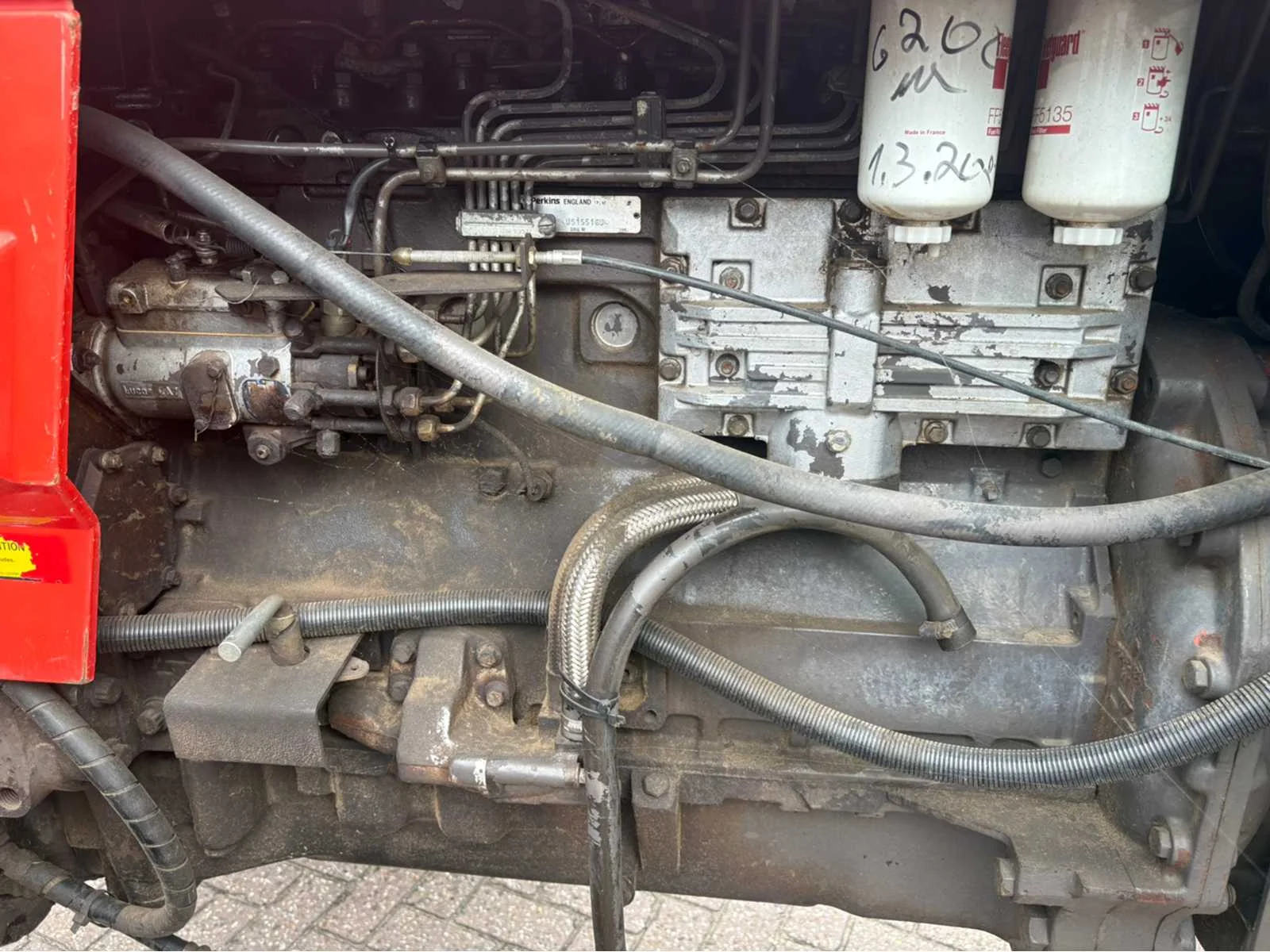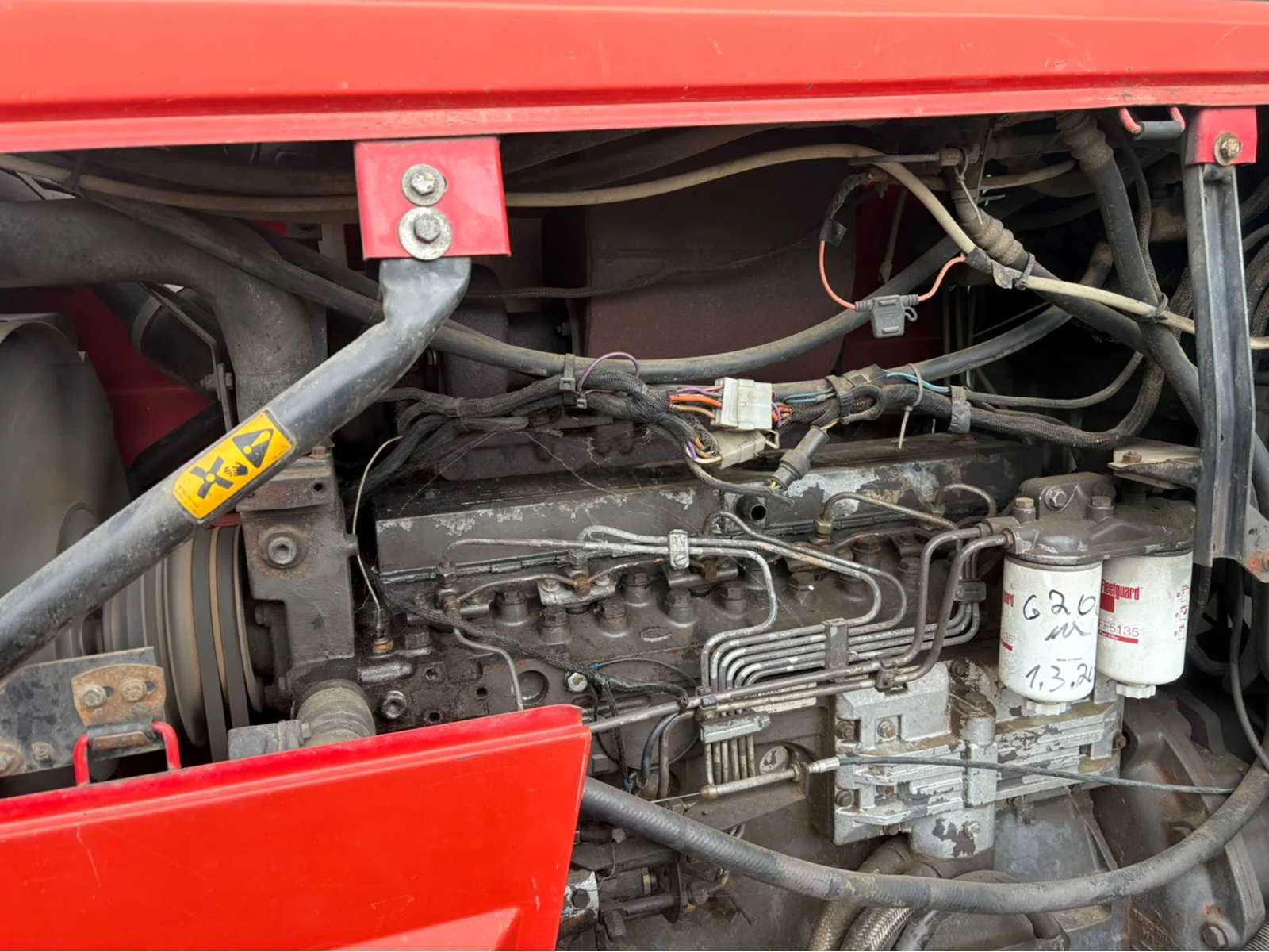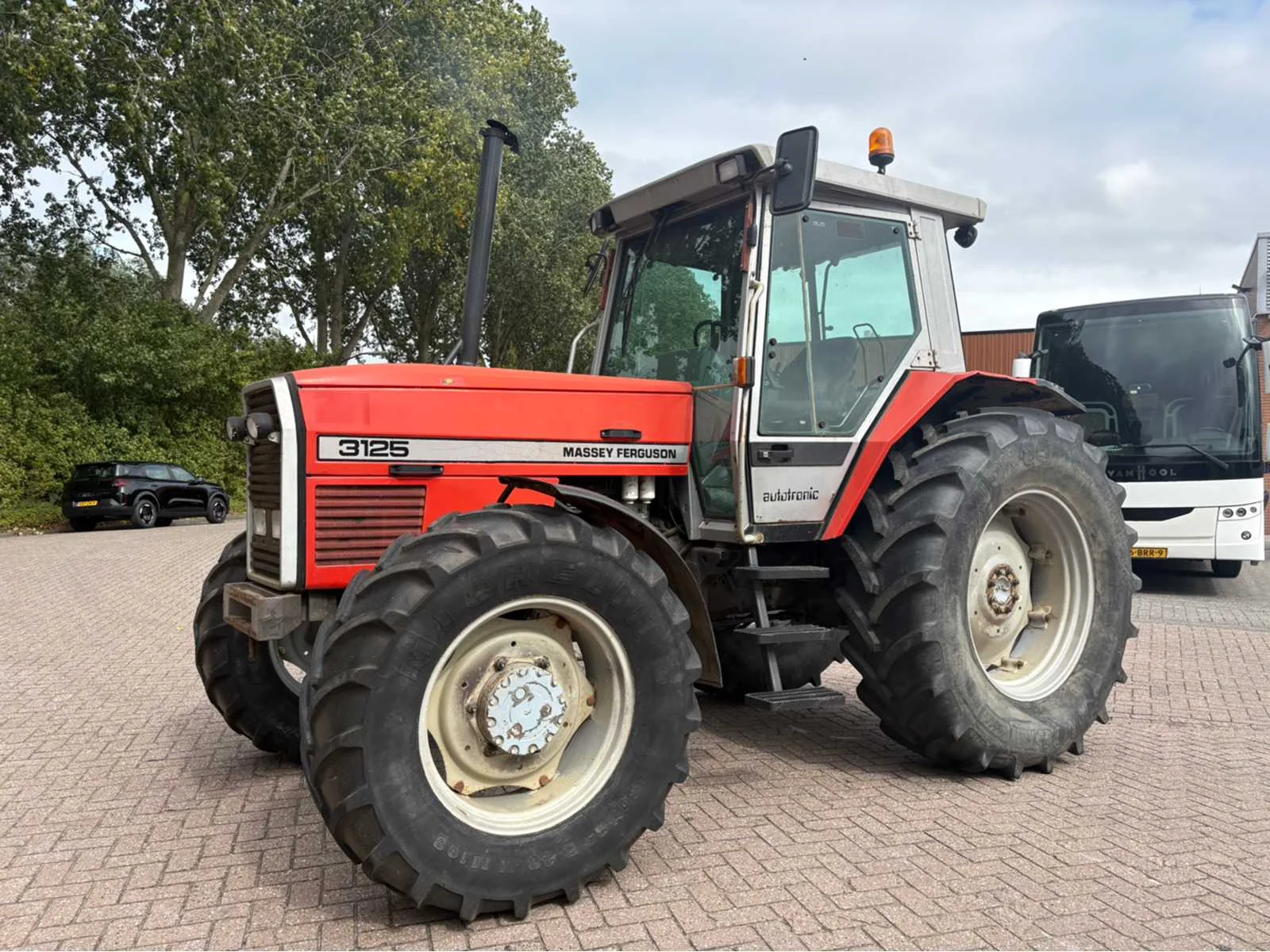 Massey Ferguson 3125 tractor, bouwjaar 1990, geproduceerd in Beauvais, Frankrijk. Serienummer R099049 en motornummer 515516U. De tractor is uitgevoerd met een 4x2 aandrijving en beschikt over een Powershift-transmissie. Het opgegeven motorvermogen bedraagt circa 120 pk (88 kW), geleverd door een Perkins 6-cilinder dieselmotor. Het leeggewicht van de tractor ligt rond de 5.000 kg, met een maximaal hefvermogen achter van circa 6.500 kg. De aftakas (PTO) levert zowel 540 als 1000 tpm. (LET OP! dit voertuig heeft een kenteken registratie, bij afhalen dient u dit ter plaatste bij een derde partij te naam te stellen of te exporteren, hier zijn extra kosten aan verbonden) Nee Merk: Massey Ferguson Type: 3125 Bouwjaar: 1990 Serienummer: R099049 Kenteken: T-14-GFN Chassisnummer: R099049 Motorvermogen (kW): 93kW Afgelezen urenstand: 6513.3 Aftakastoerental: 1000rpm Bandenmaat voor: 480/65R28 Bandenmaat achter: 520/85R38 Aantal hydraulische ventielen achter: 3 Cabine: true Luchtgeveerde stoel: true Eigen gewicht: 5210kg Totale afmeting L: 4000mm Totale afmeting Breedte: 2400mm Totale afmeting Hoogte: 3250mm Datum eerste toelating: 1990-08-07 Nationaliteit documenten: Nederland
