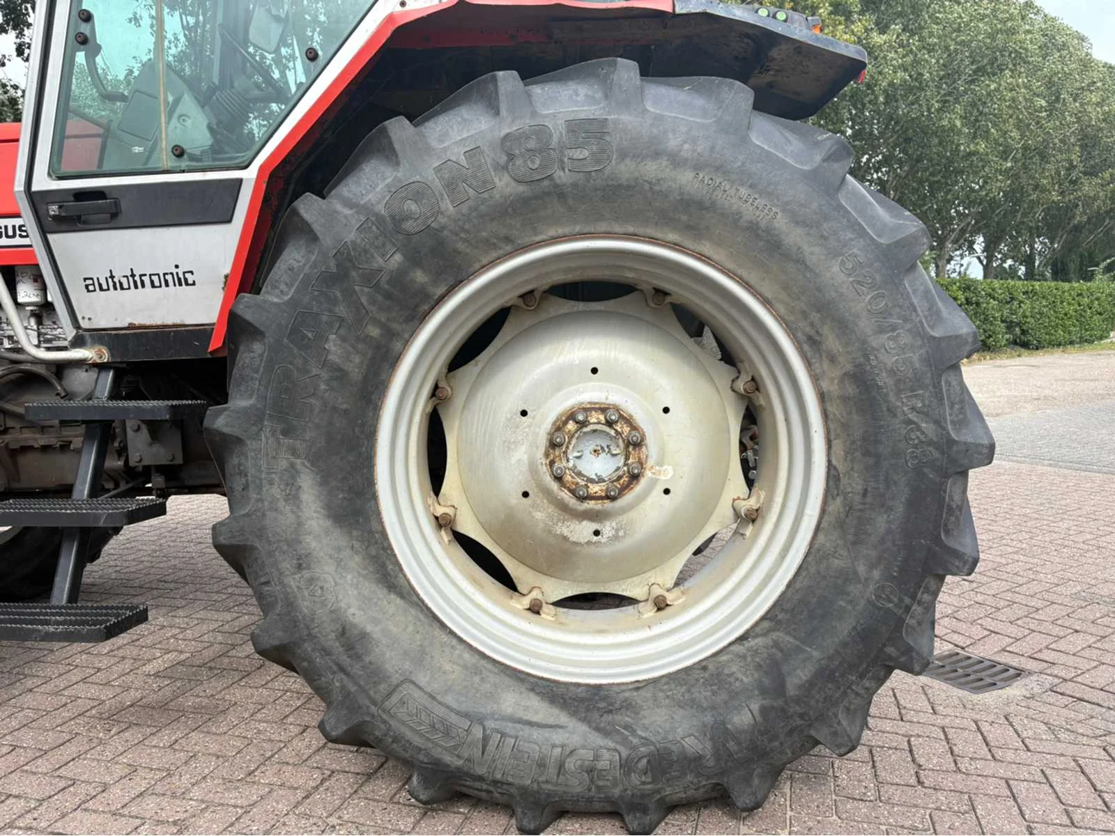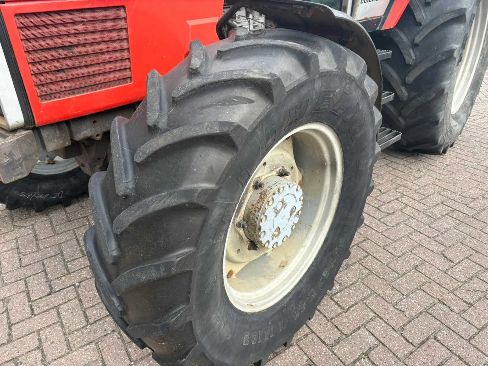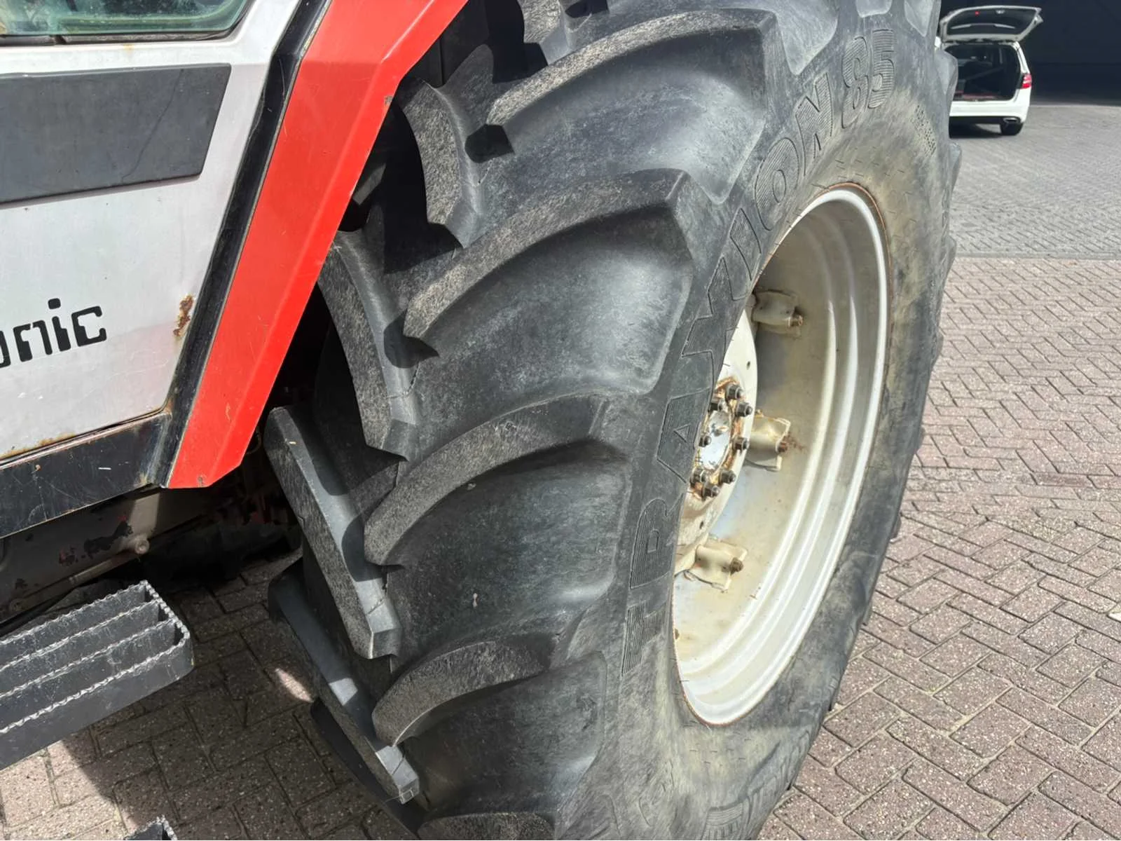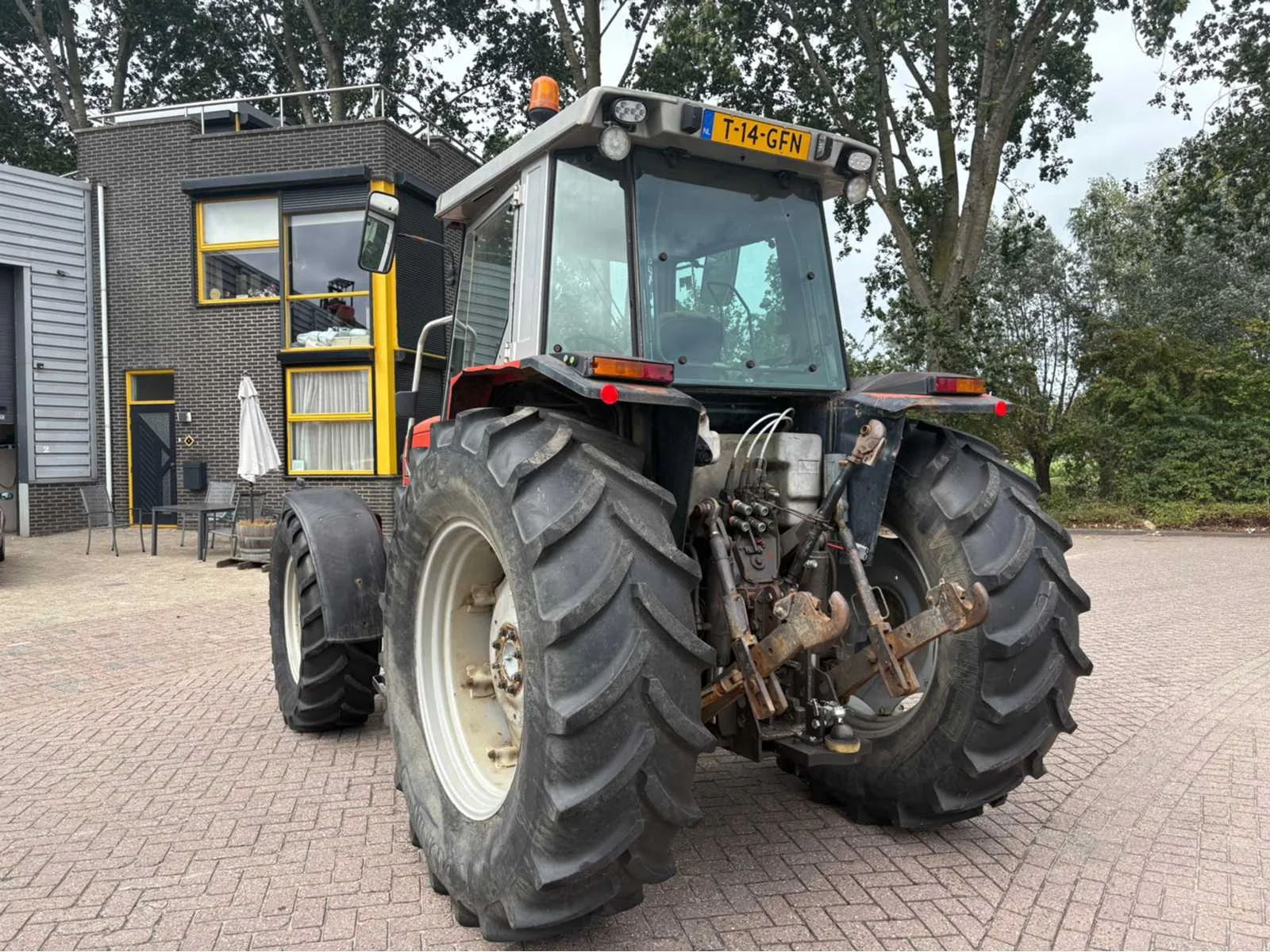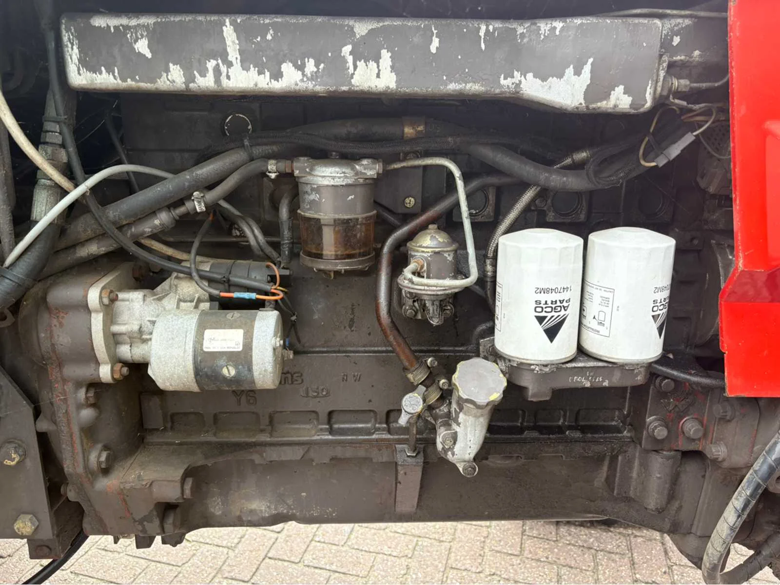 Massey Ferguson 3125 tractor, bouwjaar 1990, geproduceerd in Beauvais, Frankrijk. Serienummer R099049 en motornummer 515516U. De tractor is uitgevoerd met een 4x2 aandrijving en beschikt over een Powershift-transmissie. Het opgegeven motorvermogen bedraagt circa 120 pk (88 kW), geleverd door een Perkins 6-cilinder dieselmotor. Het leeggewicht van de tractor ligt rond de 5.000 kg, met een maximaal hefvermogen achter van circa 6.500 kg. De aftakas (PTO) levert zowel 540 als 1000 tpm. (LET OP! dit voertuig heeft een kenteken registratie, bij afhalen dient u dit ter plaatste bij een derde partij te naam te stellen of te exporteren, hier zijn extra kosten aan verbonden) Nee Merk: Massey Ferguson Type: 3125 Bouwjaar: 1990 Serienummer: R099049 Kenteken: T-14-GFN Chassisnummer: R099049 Motorvermogen (kW): 93kW Afgelezen urenstand: 6513.3 Aftakastoerental: 1000rpm Bandenmaat voor: 480/65R28 Bandenmaat achter: 520/85R38 Aantal hydraulische ventielen achter: 3 Cabine: true Luchtgeveerde stoel: true Eigen gewicht: 5210kg Totale afmeting L: 4000mm Totale afmeting Breedte: 2400mm Totale afmeting Hoogte: 3250mm Datum eerste toelating: 1990-08-07 Nationaliteit documenten: Nederland