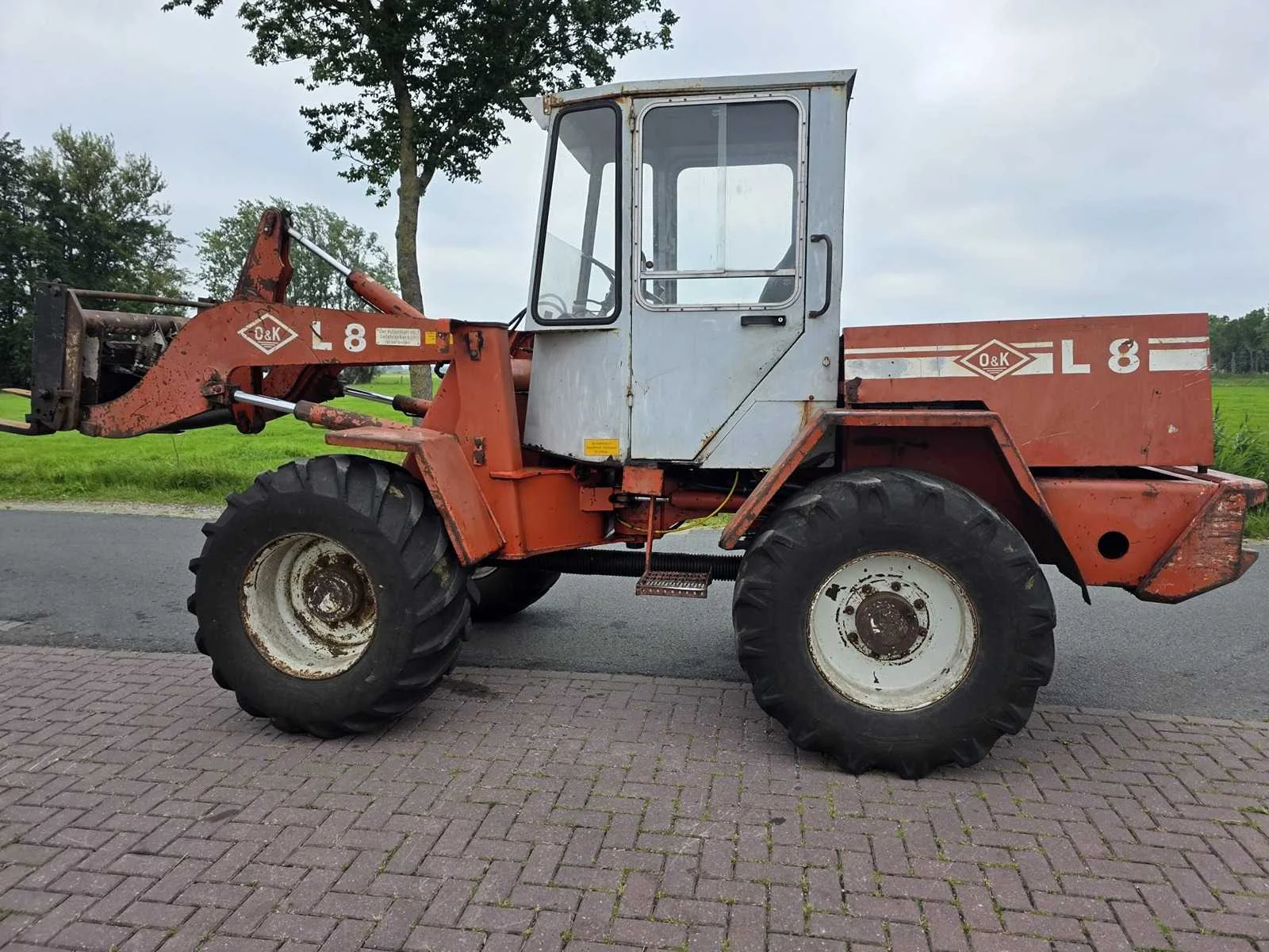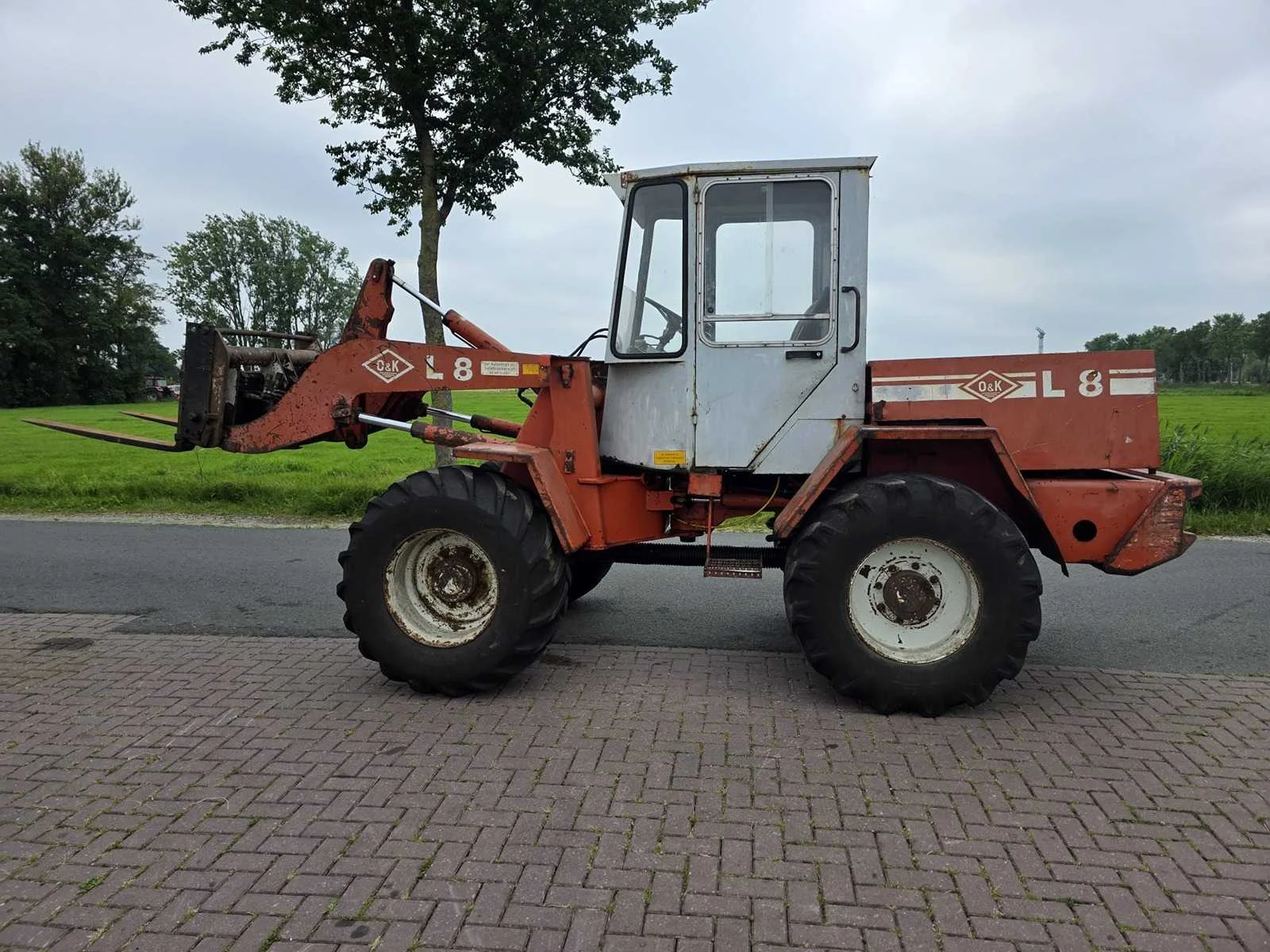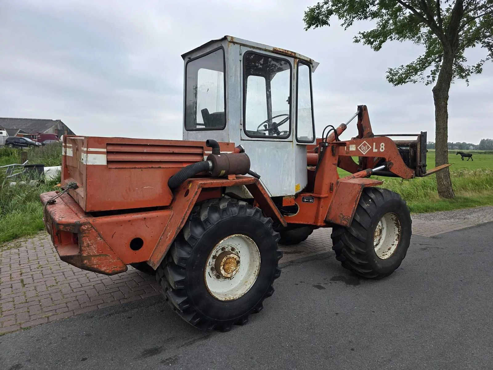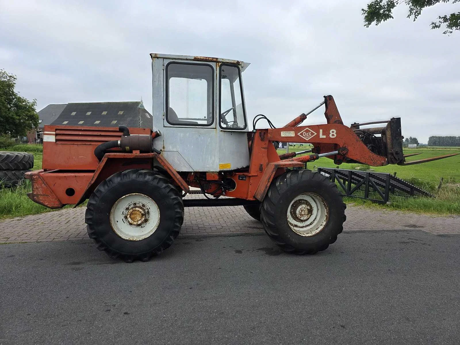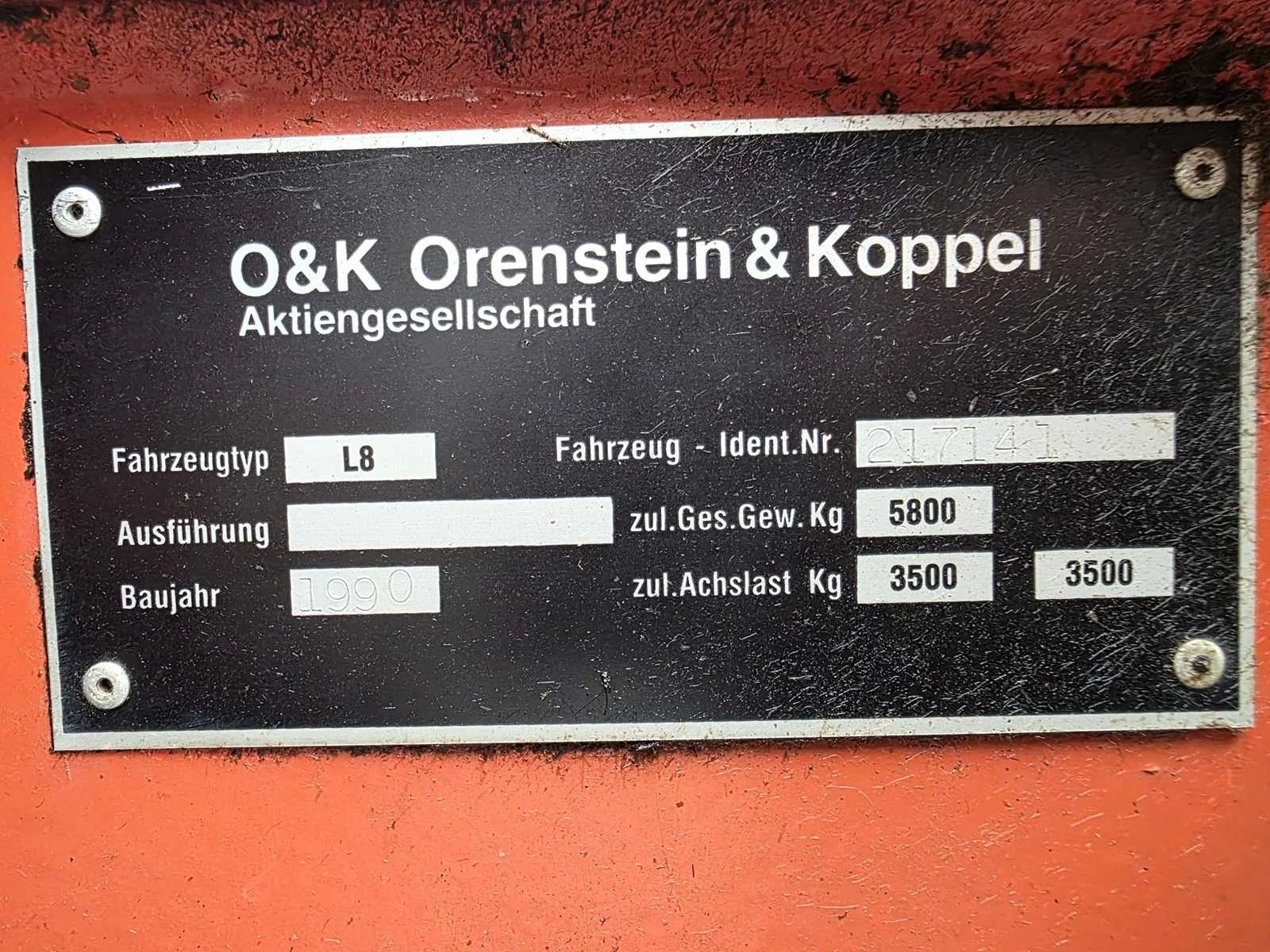 Voorzien van 3-Cil. “Deutz” Dieselmotor; hydraulische snelwissel; hoge/ lage gearing; Nee Merk: O&k Type: L8 Bouwjaar: 1990 Serienummer: 217141 Merk motor: Deutz Kenteken: TNS-53-K Aantal cilinders: 3 Brandstof: diesel