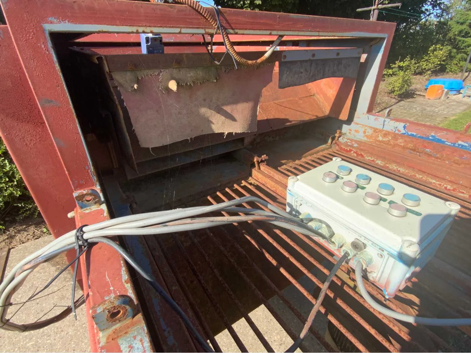 Voorzien van elektromotoren met messen, controlekast, motoren beide apart aanstuurbaar, 2 schudbedden. Nee Werkbreedte: 1000mm Totale afmeting L: 3800mm Totale afmeting Breedte: 1200mm Totale afmeting Hoogte: 1400mm