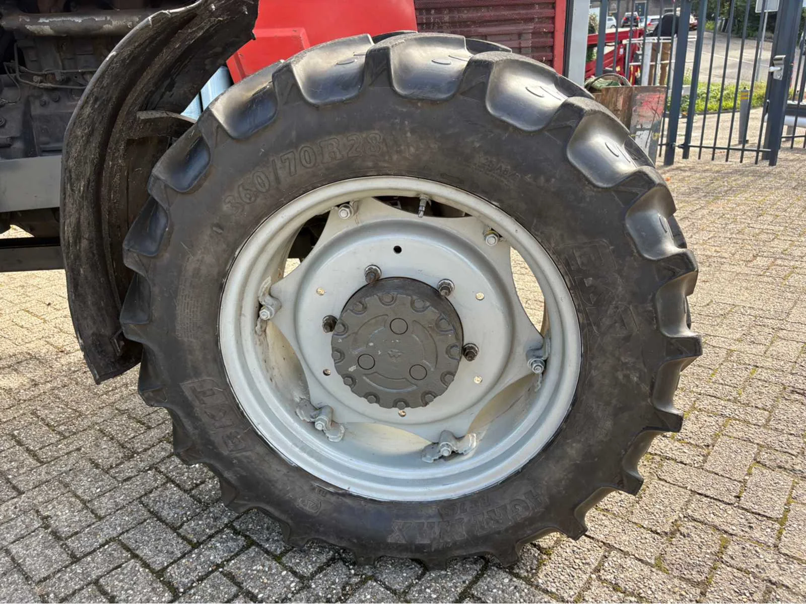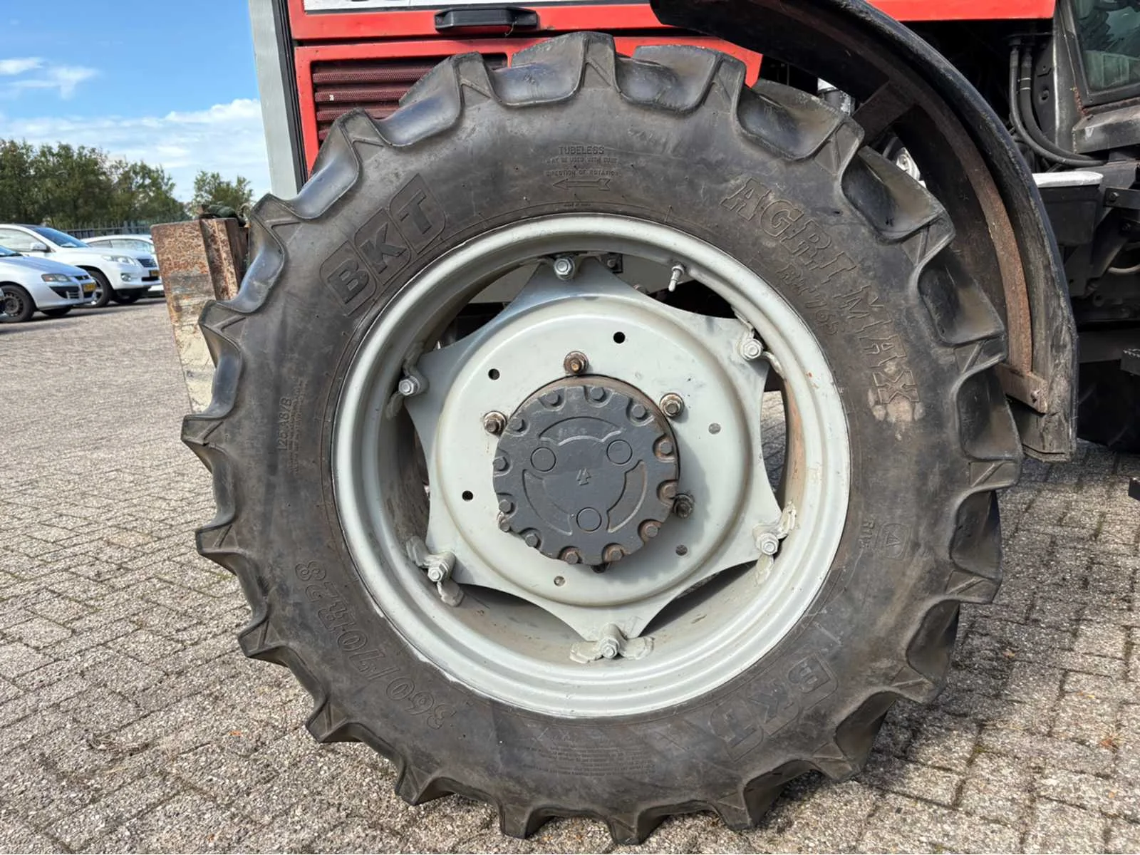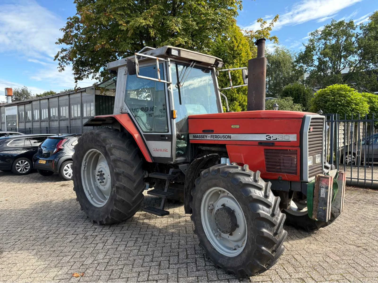 Massey Ferguson 3630 tractor, geproduceerd in Frankrijk door Massey Ferguson S.A. Uitgerust met 4-cilinder dieselmotor van circa 90 pk. Voorzien van 2WD-voorwielaandrijving en handgeschakelde transmissie. Eigen gewicht 4.000–4.500 kg. Serienummer N 054039, motornummer U 793735. Uitgerust met gesloten cabine. Nee Merk: Massey ferguson Type: 3630 Bouwjaar: 1988 Serienummer: N 054039 Kenteken: TRH-19-S Motorvermogen (kW): 72.7kW Afgelezen urenstand: 11748 Aftakastoerental: 540rpm Bandenmaat voor: 360/70R28 Bandenmaat achter: 600/65R28 Aantal hydraulische ventielen achter: 4 Cabine: true Eigen gewicht: 5320kg Totale afmeting L: 4850mm Totale afmeting Breedte: 2400mm Totale afmeting Hoogte: 2860mm Datum eerste toelating: 1988-06-30
