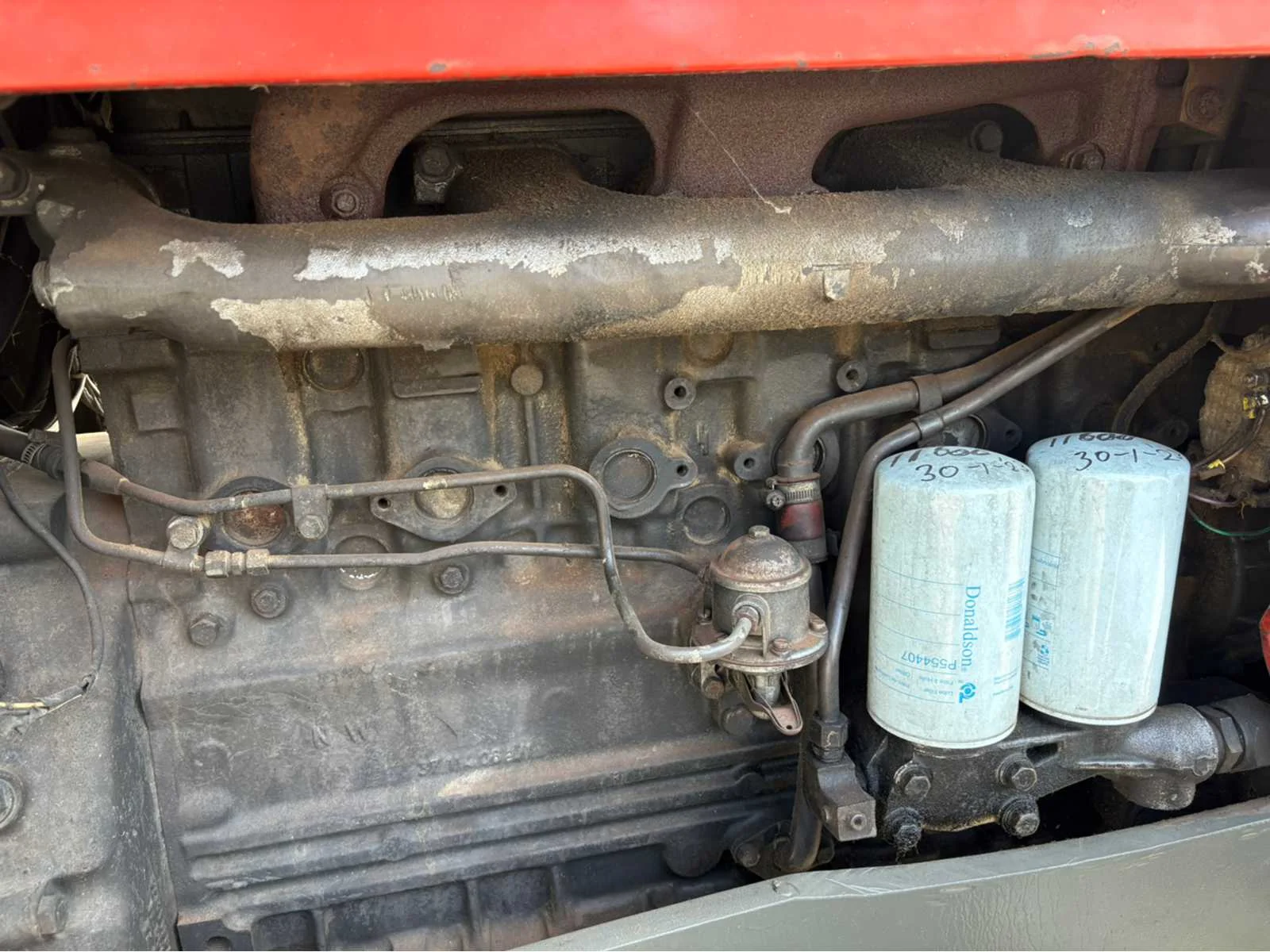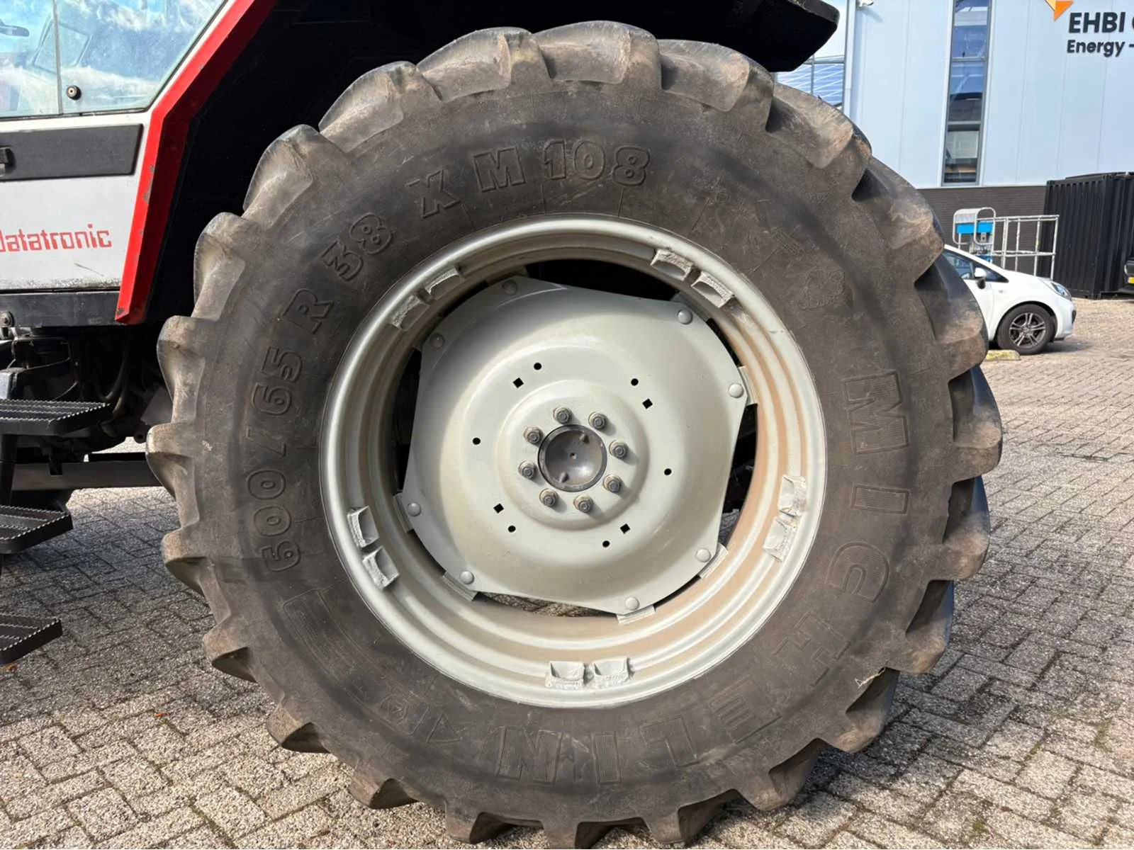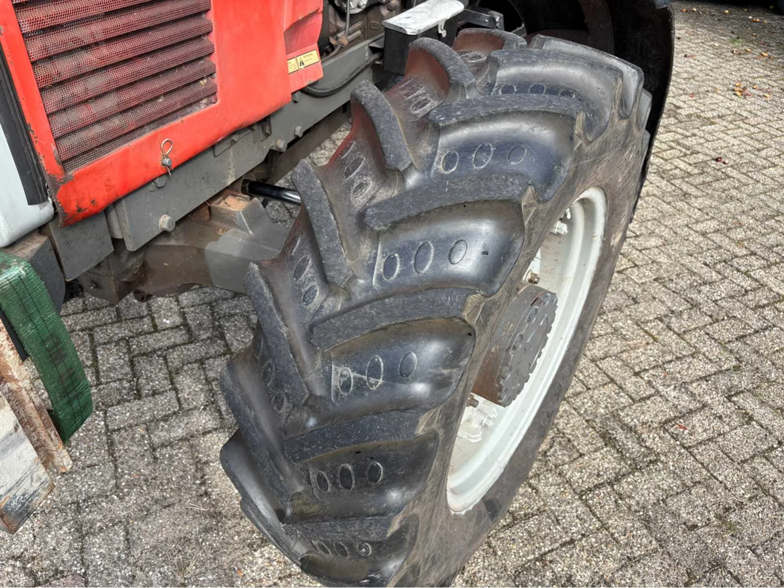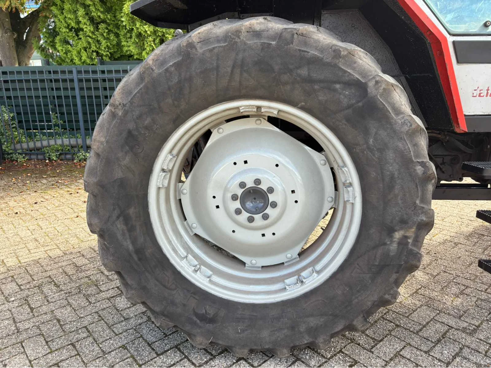 Massey Ferguson 3630 tractor, geproduceerd in Frankrijk door Massey Ferguson S.A. Uitgerust met 4-cilinder dieselmotor van circa 90 pk. Voorzien van 2WD-voorwielaandrijving en handgeschakelde transmissie. Eigen gewicht 4.000–4.500 kg. Serienummer N 054039, motornummer U 793735. Uitgerust met gesloten cabine. Nee Merk: Massey ferguson Type: 3630 Bouwjaar: 1988 Serienummer: N 054039 Kenteken: TRH-19-S Motorvermogen (kW): 72.7kW Afgelezen urenstand: 11748 Aftakastoerental: 540rpm Bandenmaat voor: 360/70R28 Bandenmaat achter: 600/65R28 Aantal hydraulische ventielen achter: 4 Cabine: true Eigen gewicht: 5320kg Totale afmeting L: 4850mm Totale afmeting Breedte: 2400mm Totale afmeting Hoogte: 2860mm Datum eerste toelating: 1988-06-30