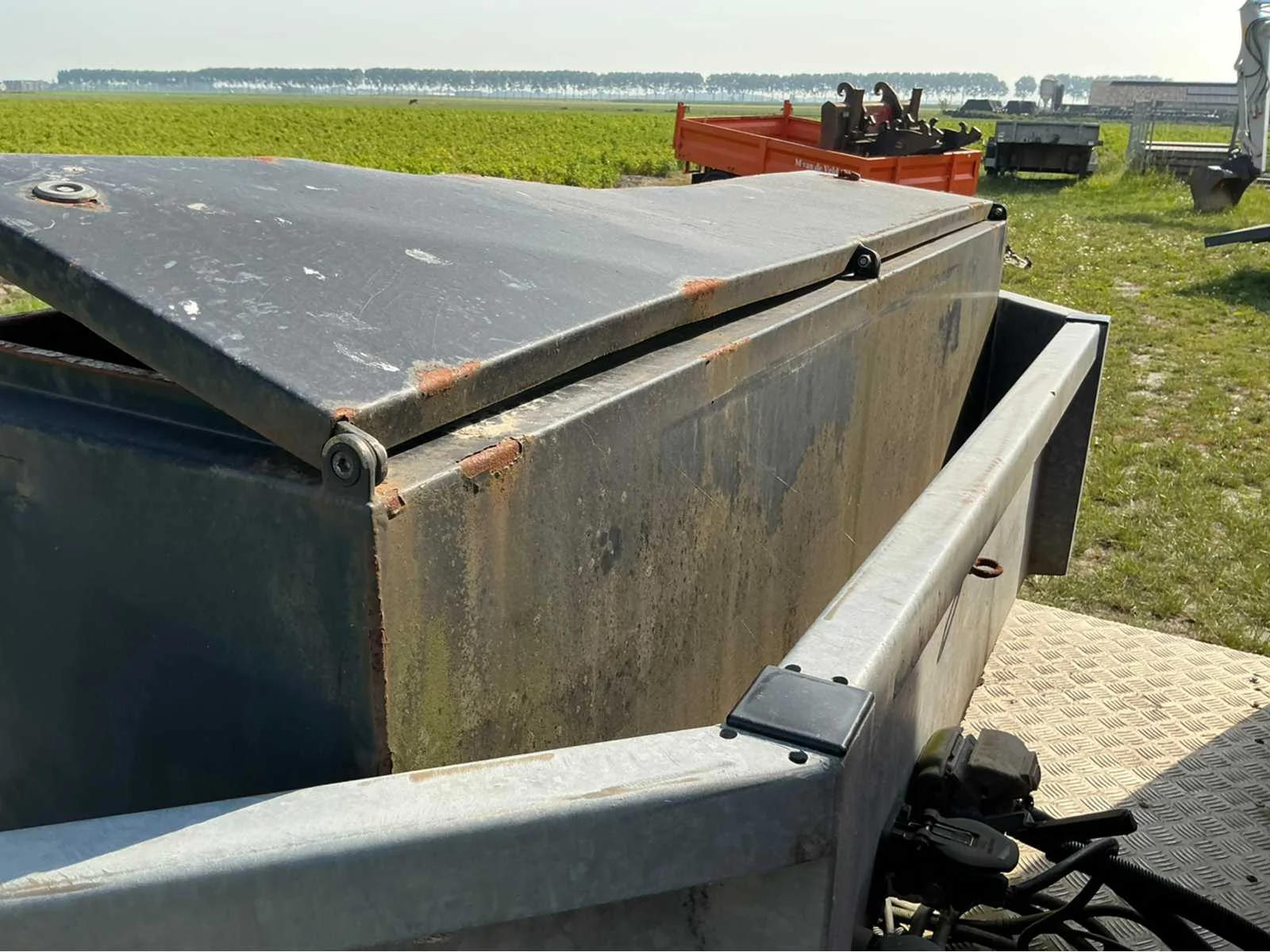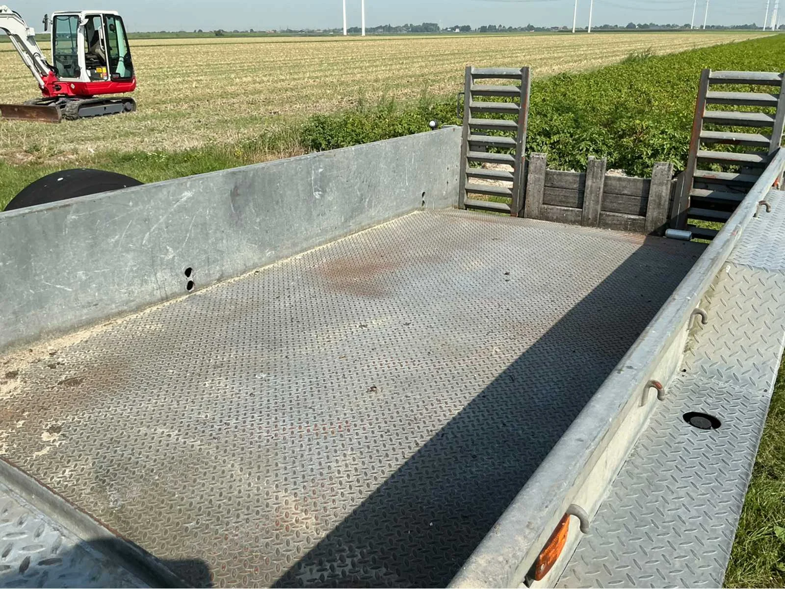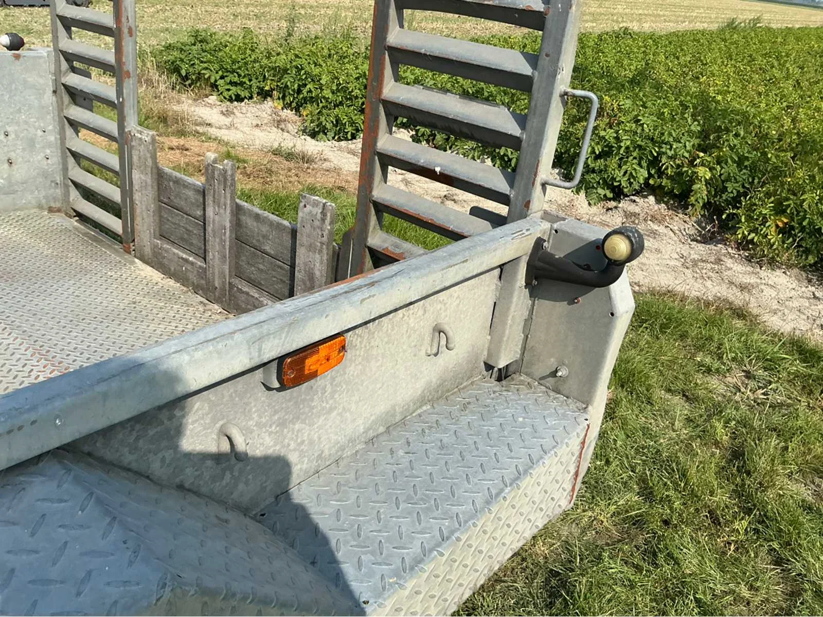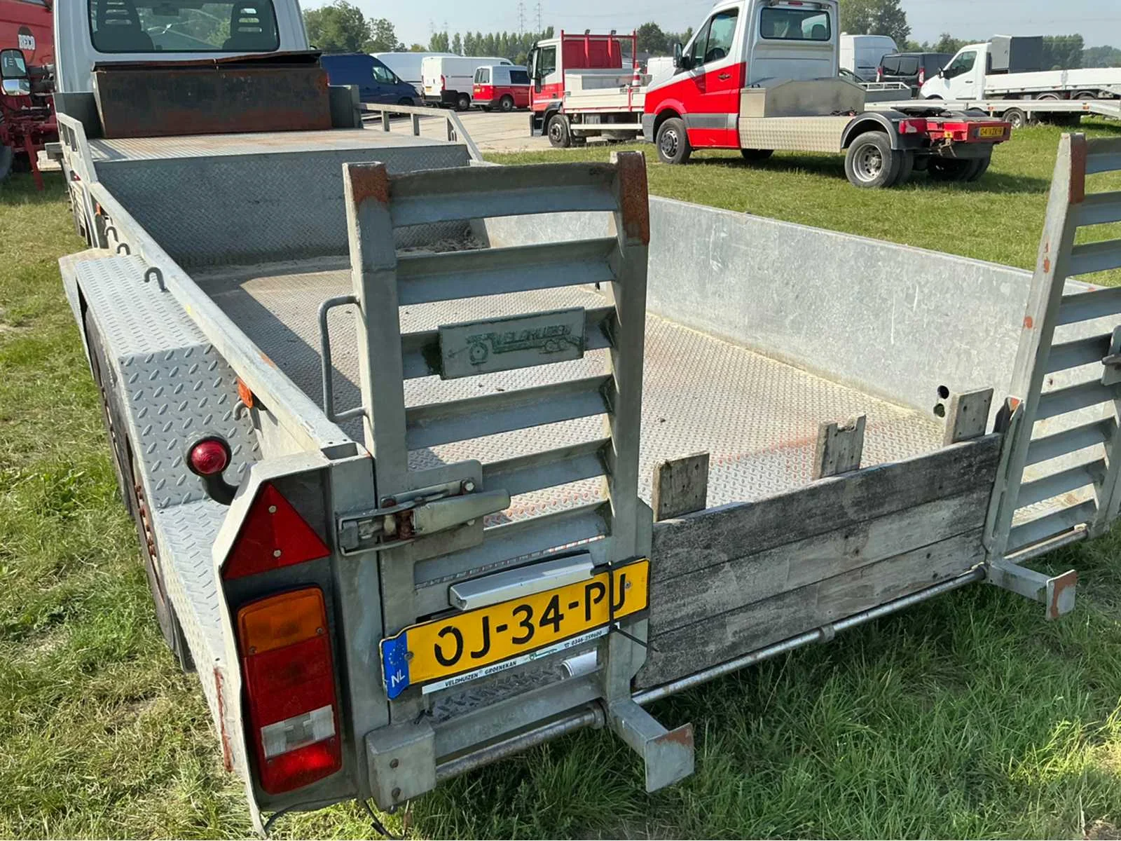 Voorzien van: oprijplaten 470mm breed, laadbak van 4000x2000, luchtremmen, gereedschap kist, steunpoot, reserve wiel Nee Merk: Veldhuizen Type: P33-2 Bouwjaar: 2006 Kenteken: OJ-34-PJ Aantal assen: 2 Laadvermogen: 6280kg Totale afmeting L: 6700mm Totale afmeting Breedte: 2500mm Totale afmeting Hoogte: 1300mm