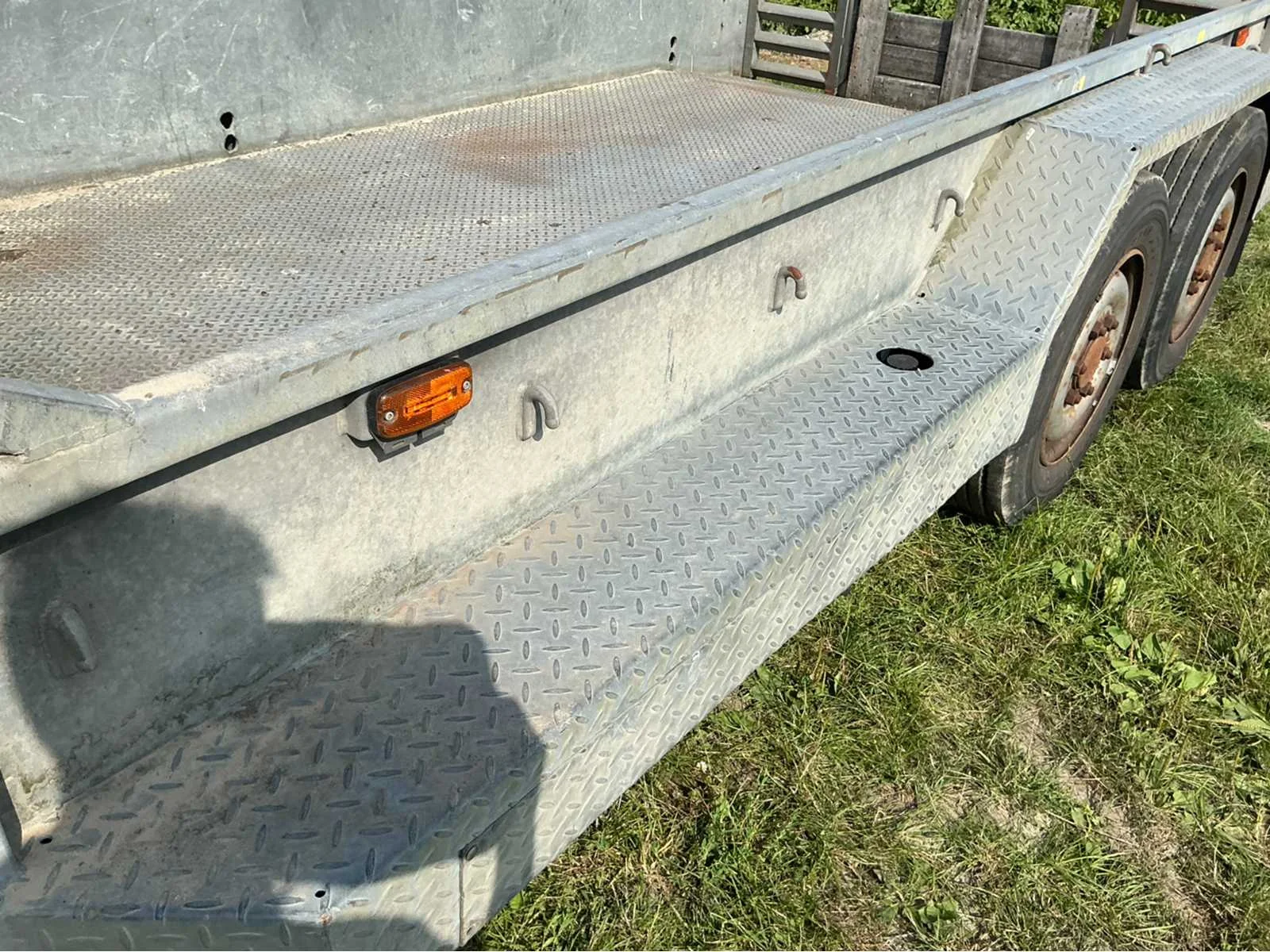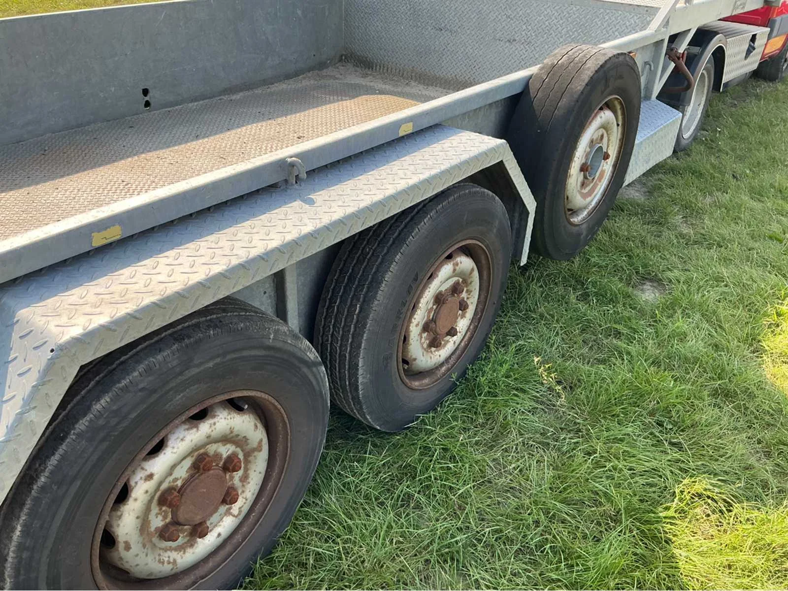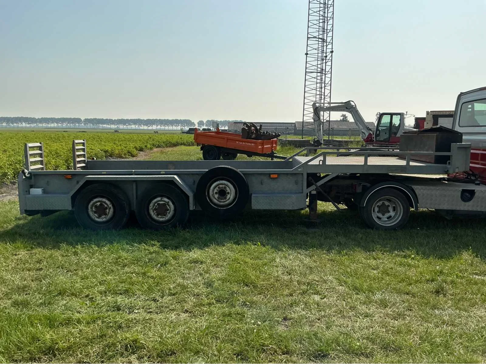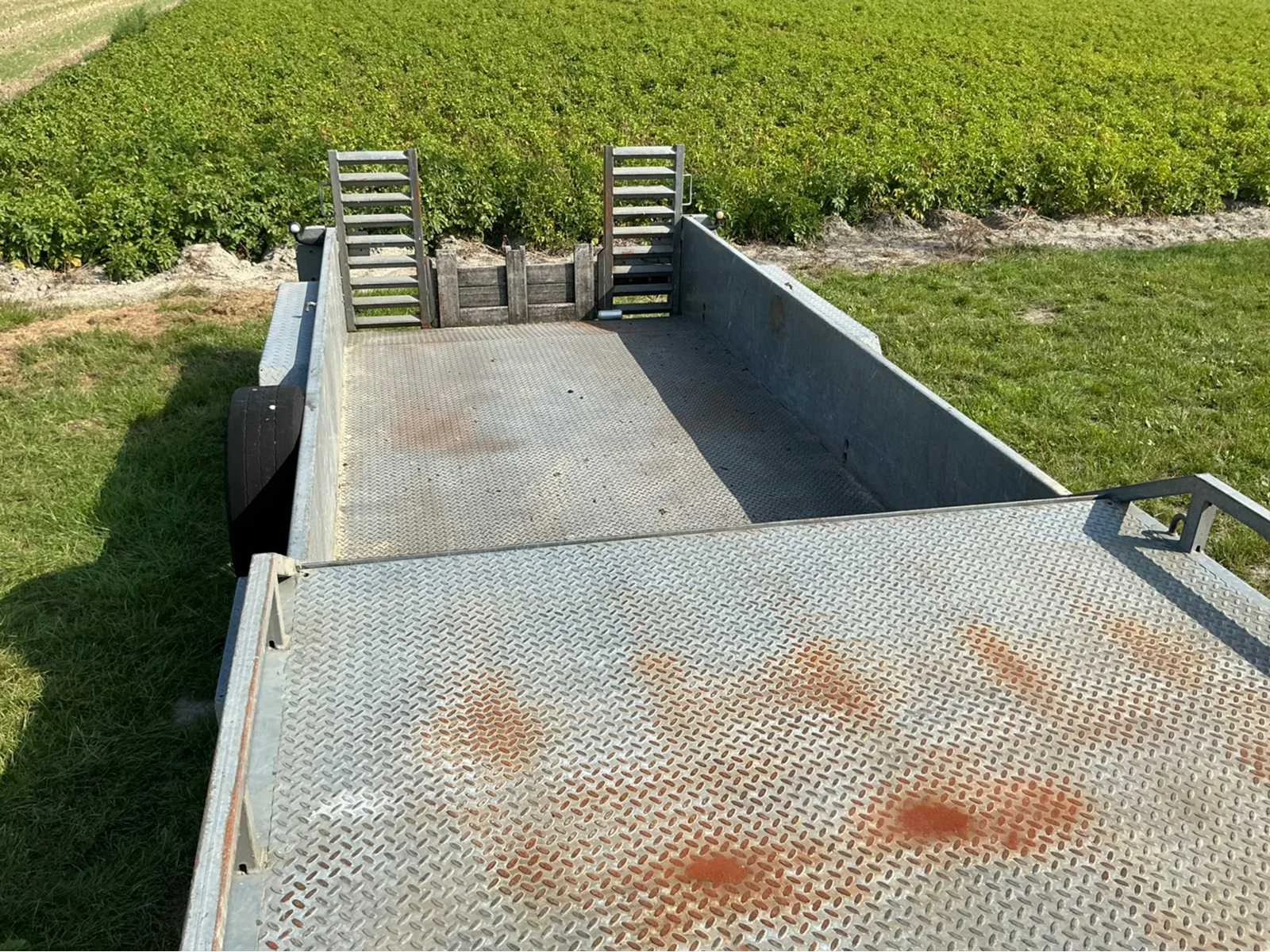 Voorzien van: oprijplaten 470mm breed, laadbak van 4000x2000, luchtremmen, gereedschap kist, steunpoot, reserve wiel Nee Merk: Veldhuizen Type: P33-2 Bouwjaar: 2006 Kenteken: OJ-34-PJ Aantal assen: 2 Laadvermogen: 6280kg Totale afmeting L: 6700mm Totale afmeting Breedte: 2500mm Totale afmeting Hoogte: 1300mm