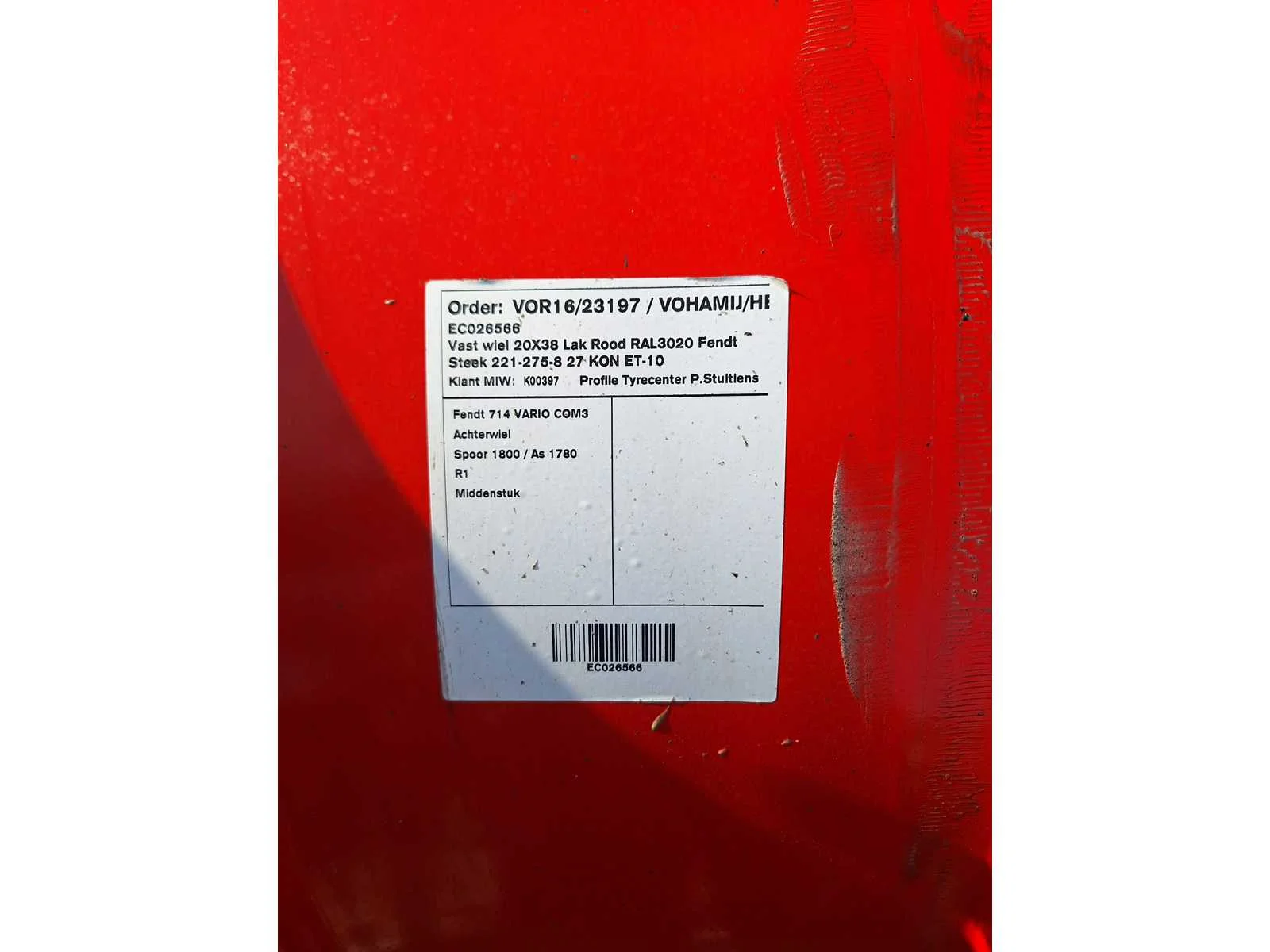 Bestaat uit: velg Ral 3020 Fendt, 20x38, steek 221-275-8, KON ET-10. No Type: 20x38