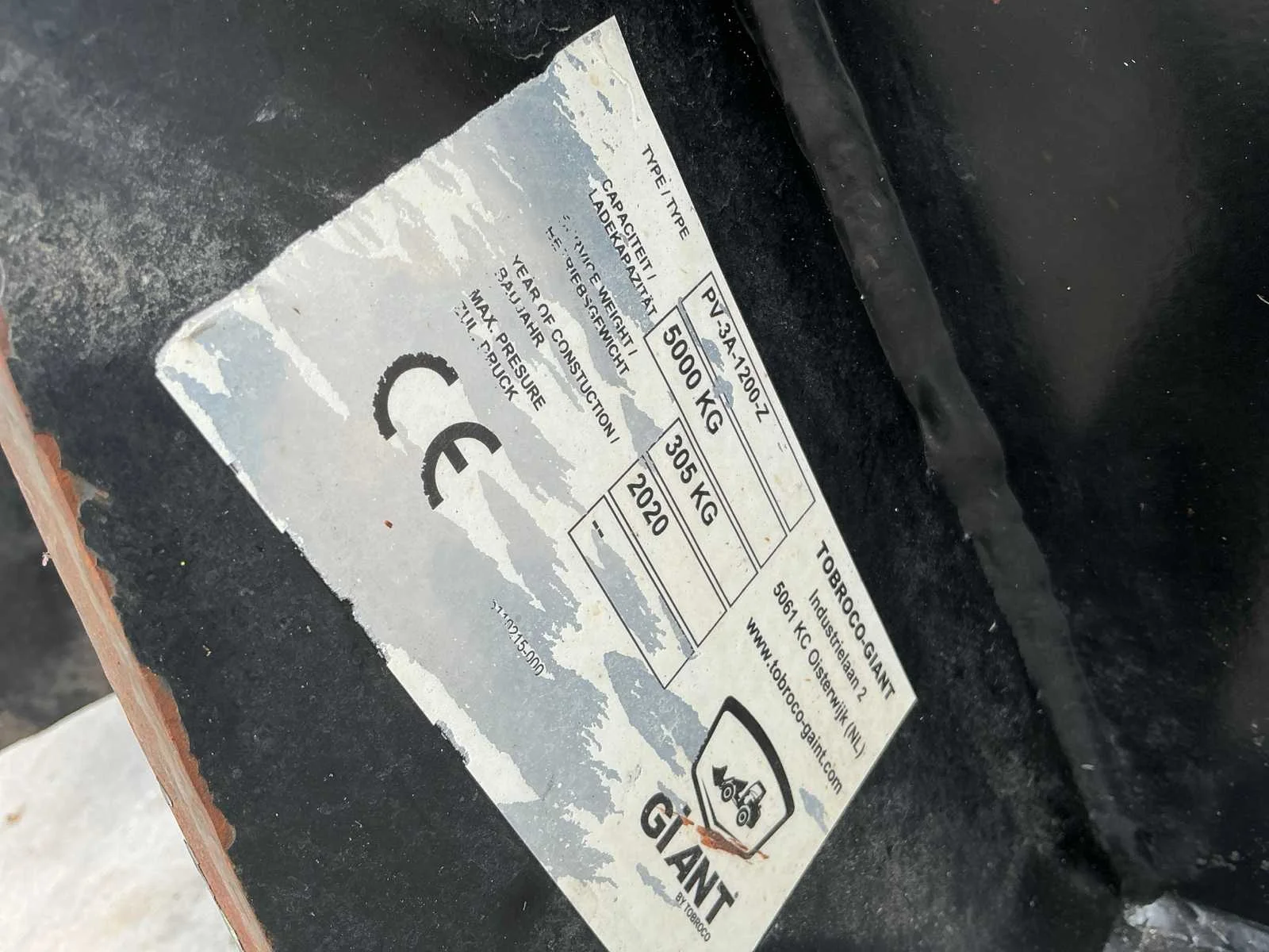Voorzien van: capaciteit: 5000kg, Giant aansluiting, Hydraulisch verstelbare vorkenbreedte, lepel breedte 15cm, lepel lengte 160cm, Nee Merk: Tobroco-Giant Type: PV-3A-1200-Z Bouwjaar: 2020 Eigen gewicht: 305kg Totale afmeting L: 2100mm Totale afmeting Breedte: 1600mm Totale afmeting Hoogte: 900mm