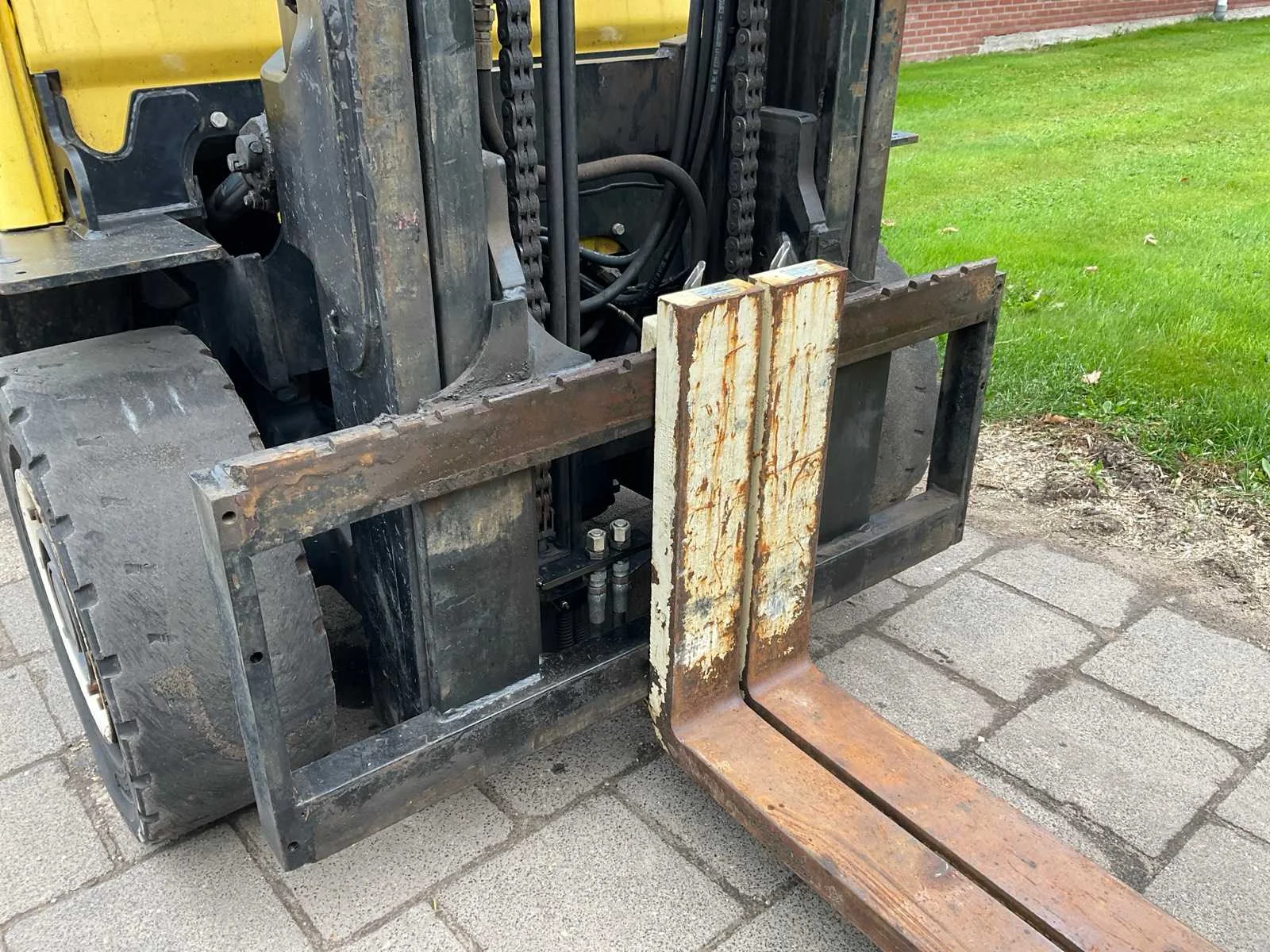 Voorzien van: dichte cabine, LPG brandstofsysteem, (geen kentekenregistratie) Nee Merk: Hyster Type: H4.0FT6 Bouwjaar: 2018 Serienummer: U005B04695S Afgelezen urenstand: 7644 Side-shift: true Eigen gewicht: 7060kg Hefvermogen: 4000kg Lepellengte: 1219mm Hefhoogte: 4950mm LPG: true