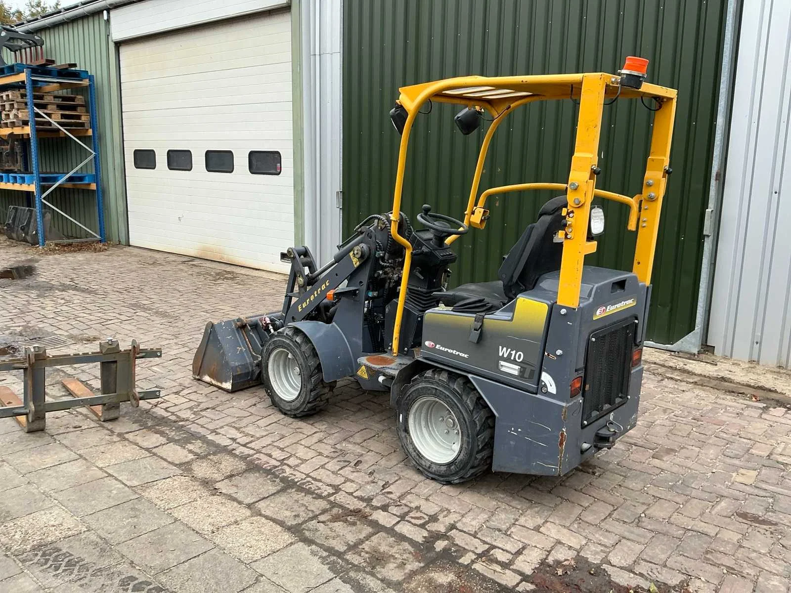Voorzien van: werkverlichting, palletvorken, graafbak, hydraulische aansluiting, beschermende kooi, Nee Merk: Eurotrac Type: 800/W10 Bouwjaar: 2020 Serienummer: 10A1803170 Merk motor: Kubota Bedrijfsgewicht: 1080kg