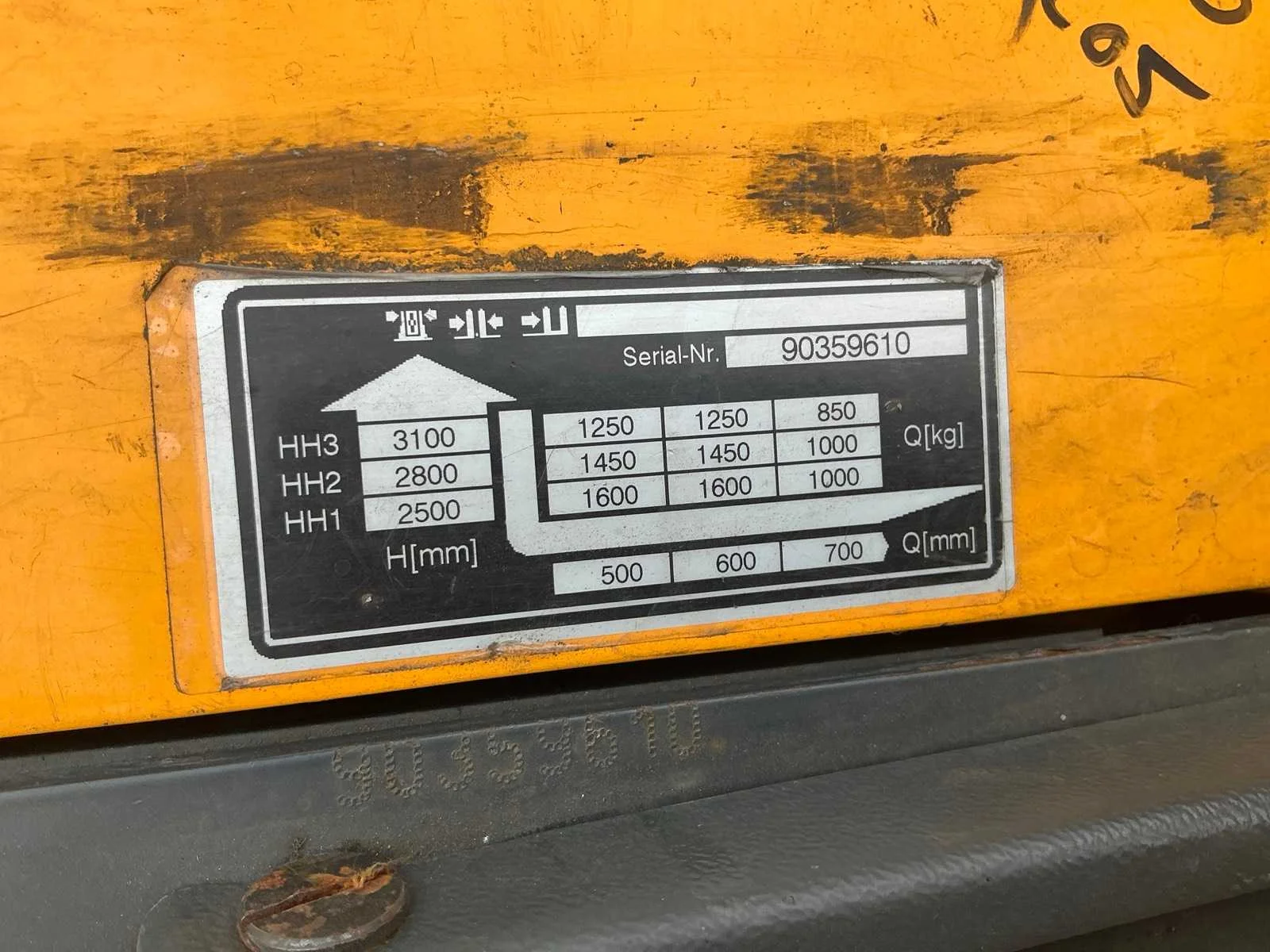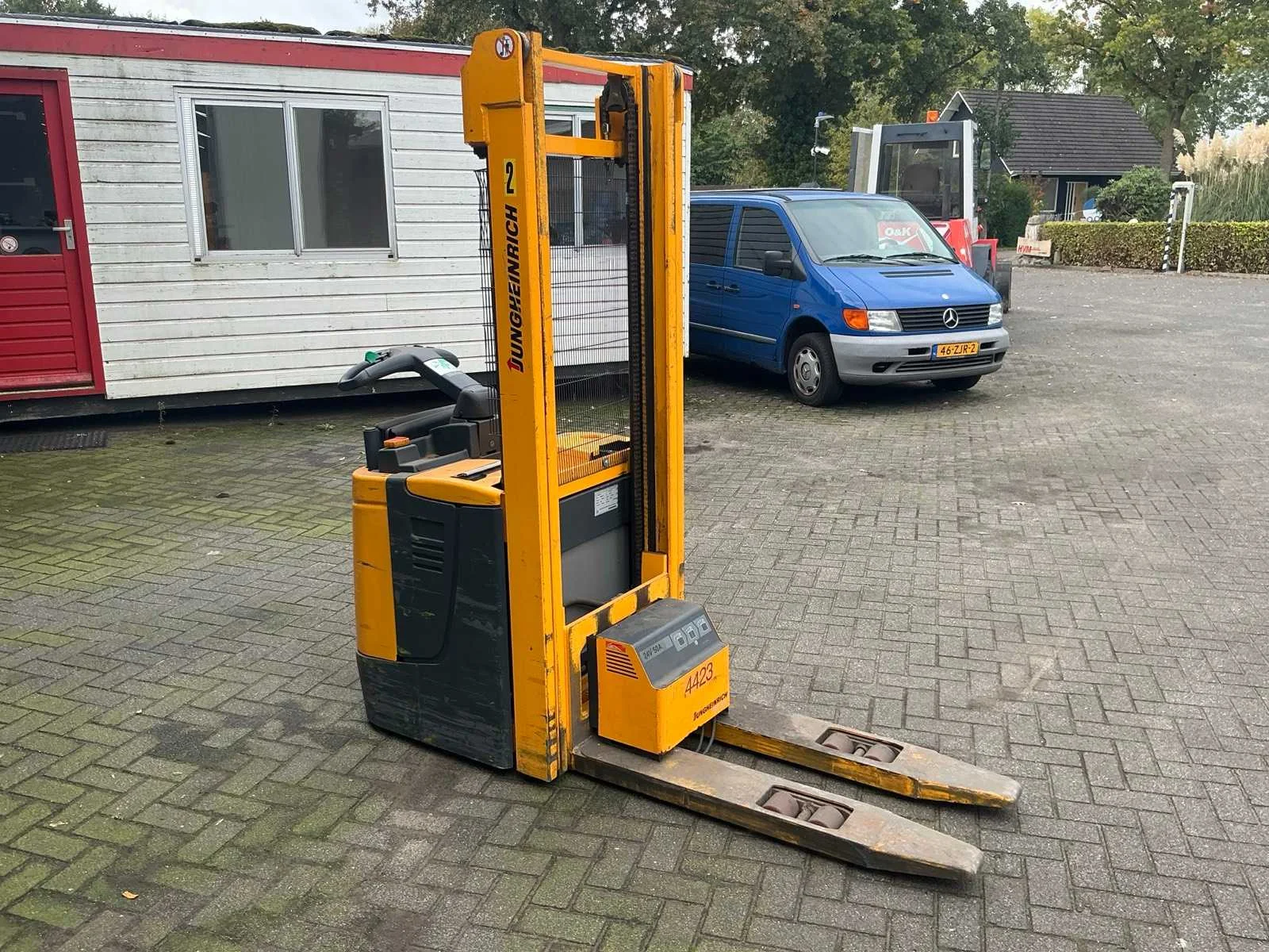 Doorrijhoogte: 2050 mm. Nee Merk: Jungheinrich Type: ERC 216 Bouwjaar: 2010 Serienummer: 90359610 Hefvermogen: 1600kg Hefhoogte: 3200mm Lepellengte: 1150mm Accu lader: true Afgelezen urenstand: 1713 Eigen gewicht: 943kg Totale afmeting L: 2100mm Totale afmeting Breedte: 780mm Totale afmeting Hoogte: 2050mm