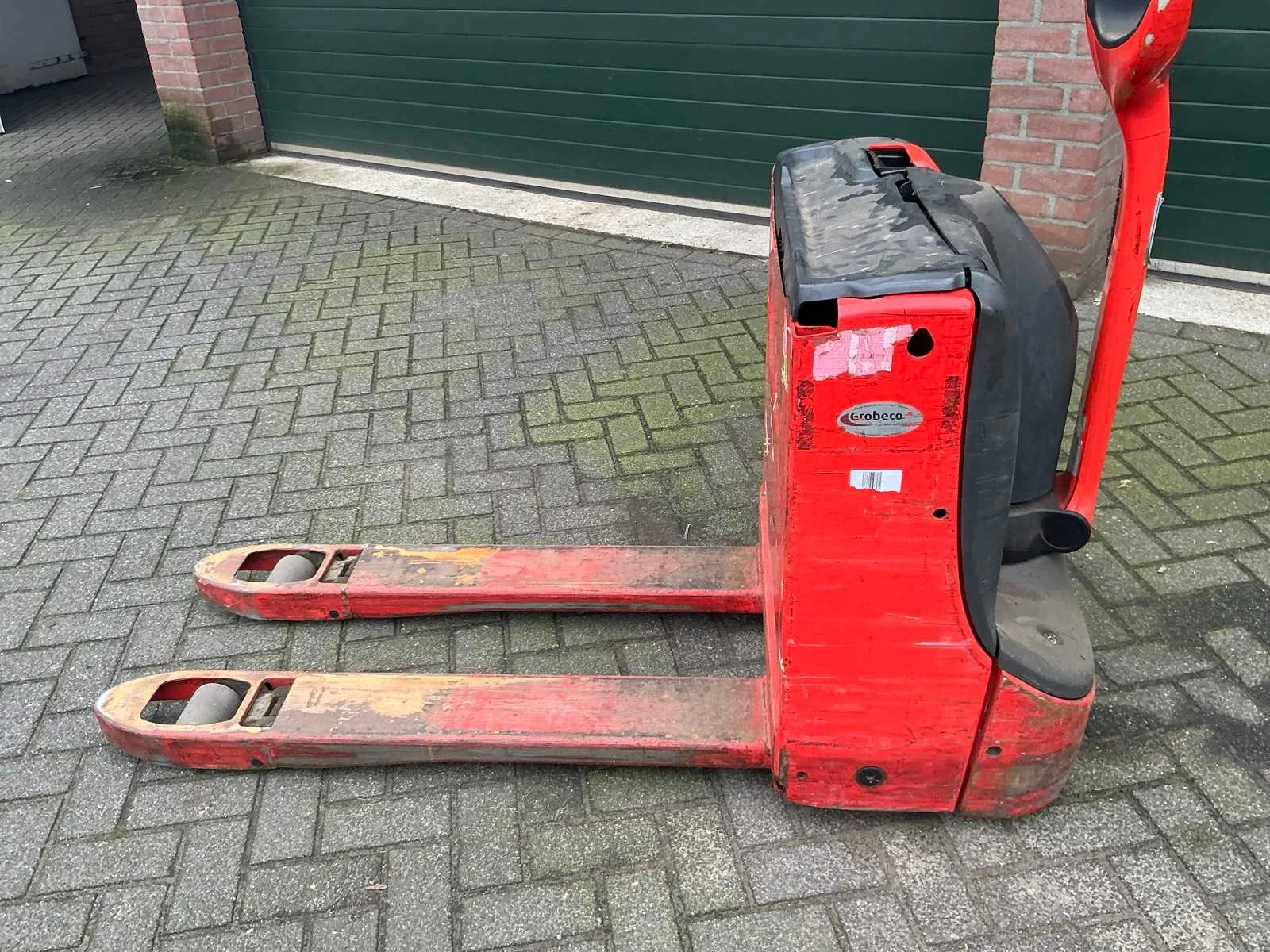 Voorzien van interne lader Nee Merk: Linde Type: T16 Bouwjaar: 2010 Serienummer: W41152A023334 Hefvermogen: 1600kg Hefhoogte: 220mm Lepellengte: 1100mm Afgelezen urenstand: 3287 Eigen gewicht: 505kg Totale afmeting L: 1700mm Totale afmeting Breedte: 700mm Totale afmeting Hoogte: 1300mm