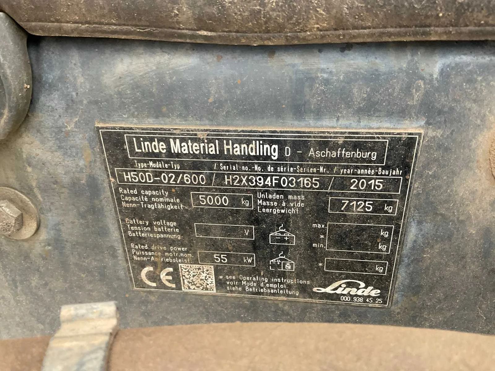 Voorzien van: Cascade rotator vorkenbord, automatisch smeersysteem, airconditioning Nee Merk: Linde Type: H50D-02/600 Evo Bouwjaar: 2015 Aantal wielen: 4 Afgelezen urenstand: 16898 Roterend vorkenbord: true Duplex mast: true Eigen gewicht: 7125kg Hefvermogen: 5000kg Lepellengte: 1140mm Hefhoogte: 7000mm Vol rubber banden: true Totale afmeting L: 4500mm Totale afmeting Breedte: 1450mm Totale afmeting Hoogte: 2250mm Diesel: true