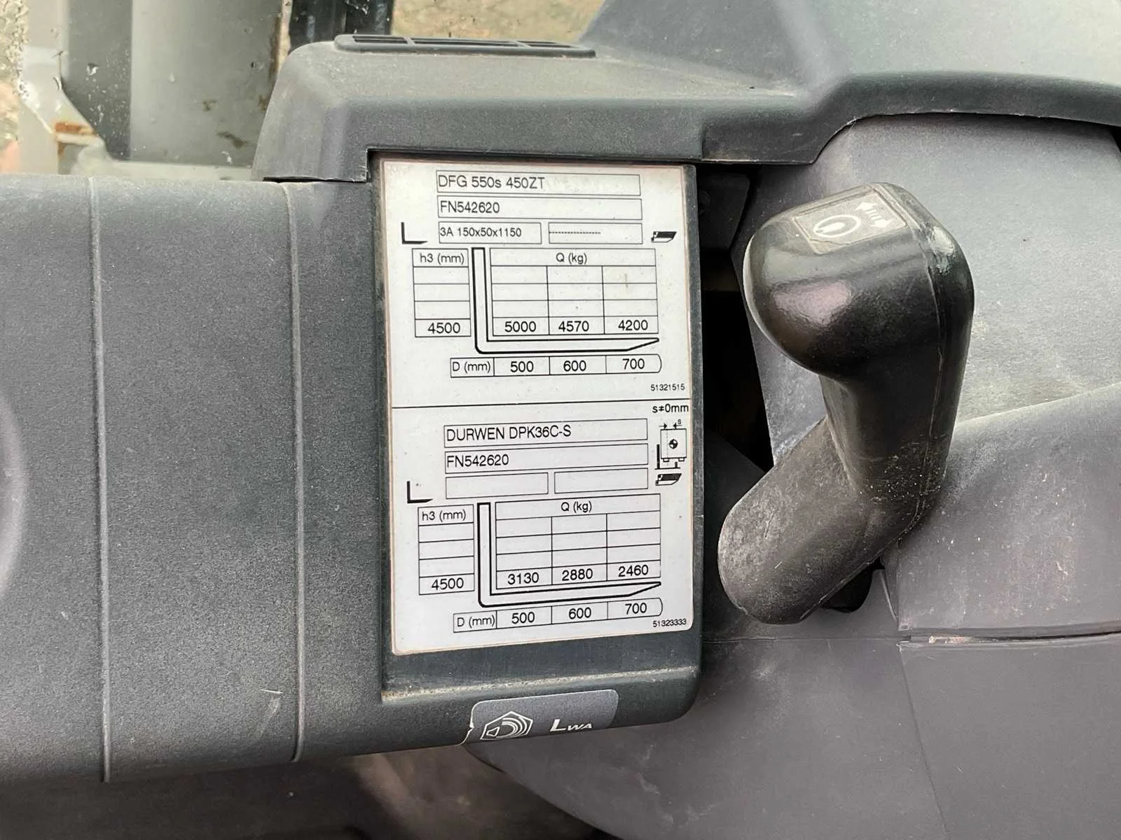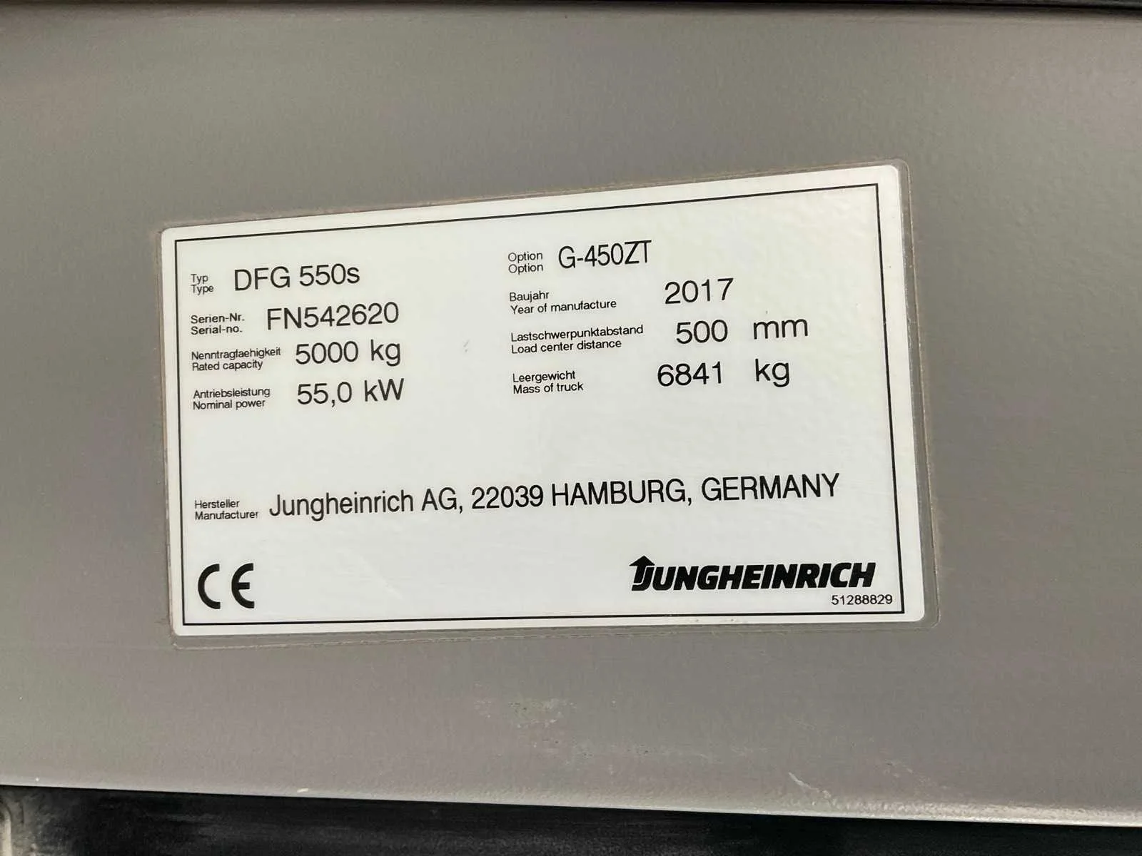 Voorzien van: 2 rijsnelheden, digitaal display, 2x extra functie voorzijde, werkverlichting, Hydrostaat aandrijving Nee Merk: Jungheinrich Type: DFG 550s 450ZT Bouwjaar: 2017 Brandstof: Diesel Mast: Duplex Afgelezen urenstand: 12723 Hefvermogen: 5000kg Lepellengte: 1600mm Hefhoogte: 4500mm Totale afmeting L: 4700mm Totale afmeting Breedte: 1450mm Totale afmeting Hoogte: 2980mm