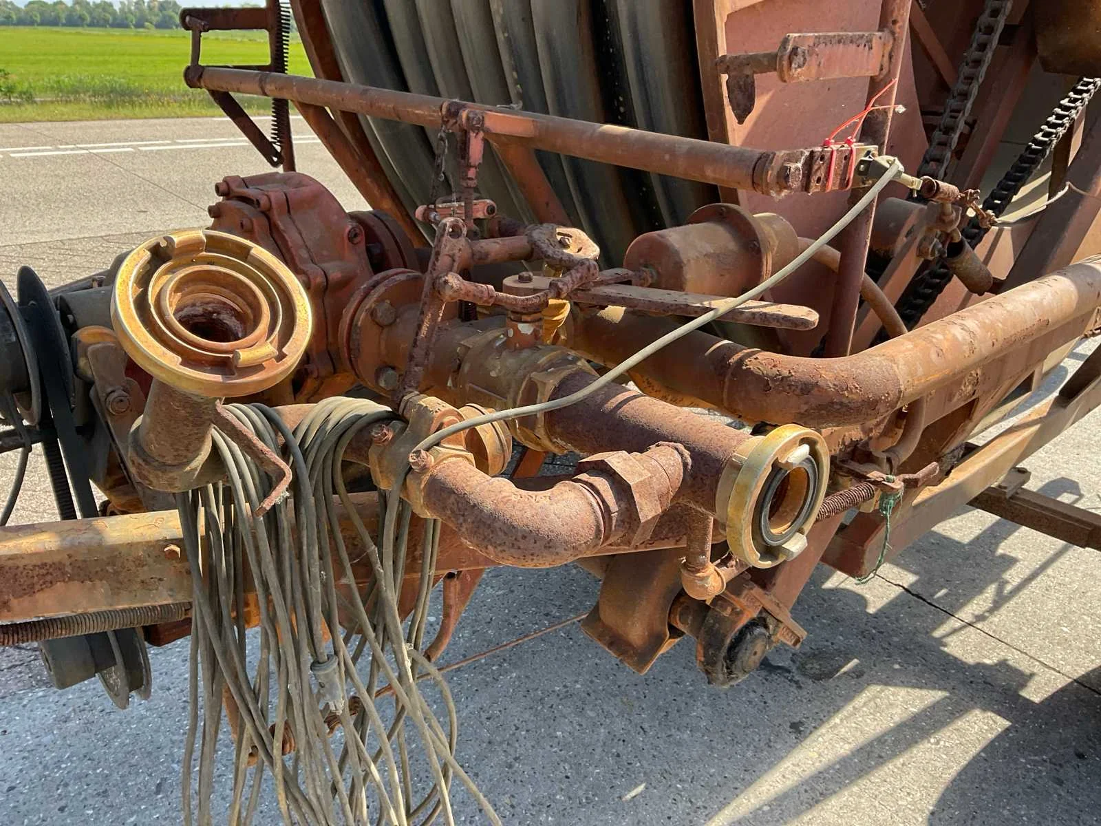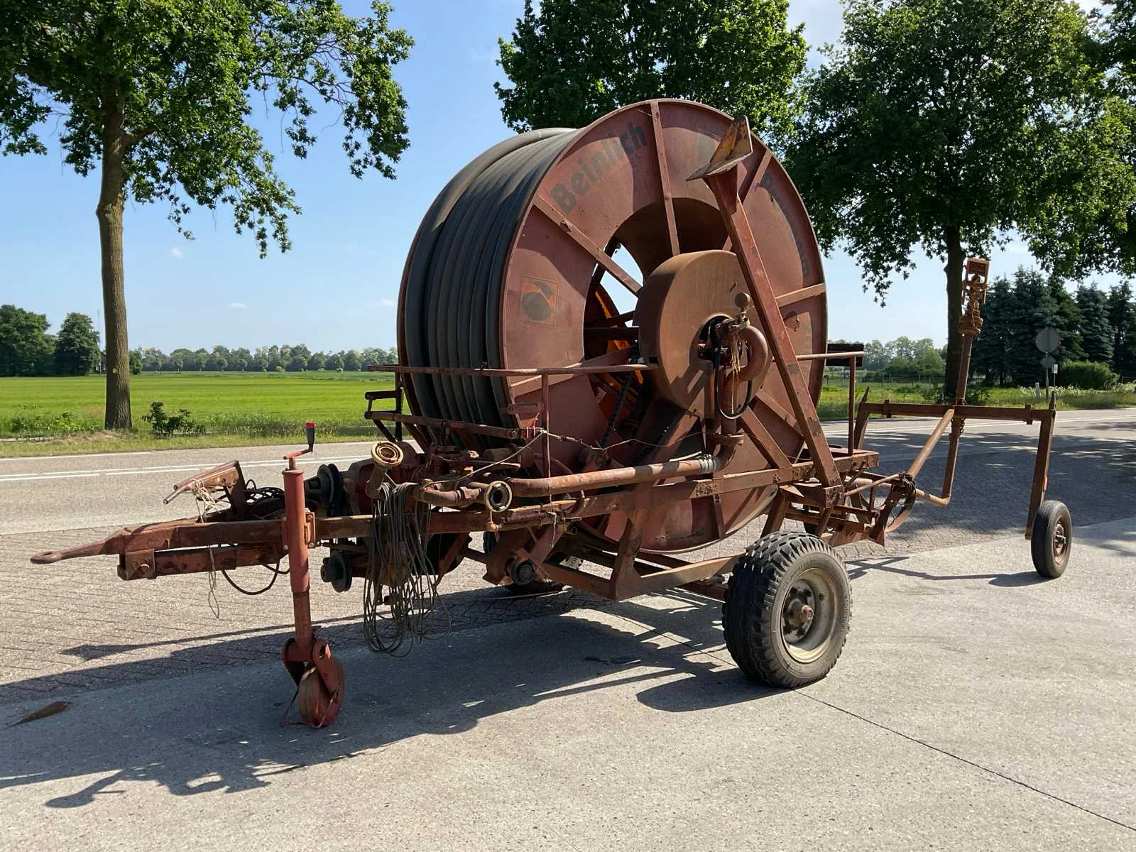 Lengte slang: 260 meter, diameter slang: 82mm, voorzien van: 10.0/75-15 banden, trekoog aanspan, steunwiel, 2x handmatige steunpoot achter, Nederlandse kentekenregistratie, sproeiwagen, Komet Twin 101 Plus sproeikanon, No Merk: Beinlich Type: Programm 200I Bouwjaar: 1977 Kenteken: LKK-62-D Totale afmeting L: 4400mm Totale afmeting Breedte: 2240mm Totale afmeting Hoogte: 2780mm