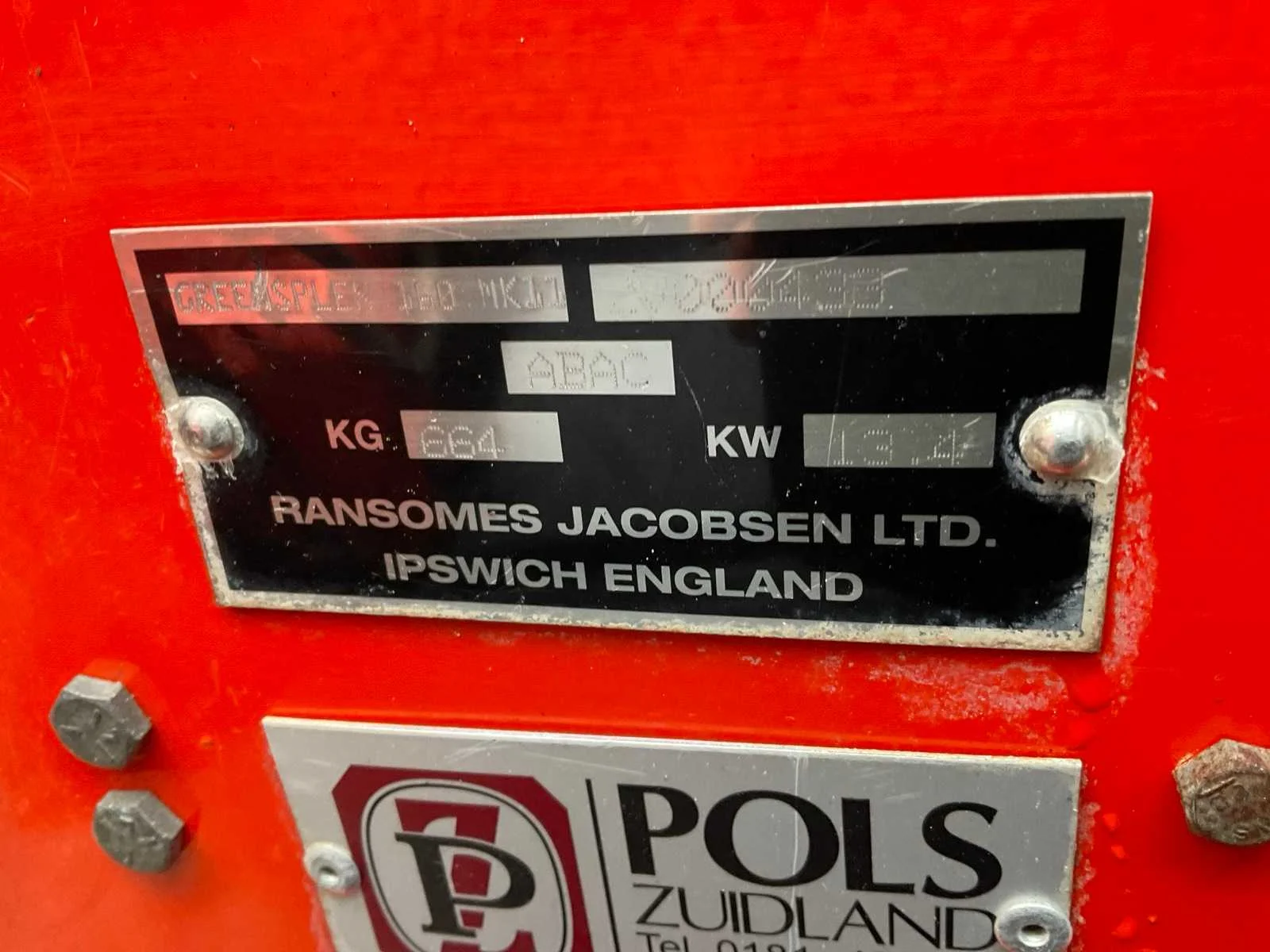 Voorzien van: hydraulische aandrijving, Nee Merk: Jacobsen Type: Greensplex 160 MKII Zelfrijdend: true Werkbreedte: 1600mm Aantal maaidekken: 3 Maaihoogte verstelling: true Type motor: Kubota Afgelezen urenstand: 2516hr Eigen gewicht: 664kg