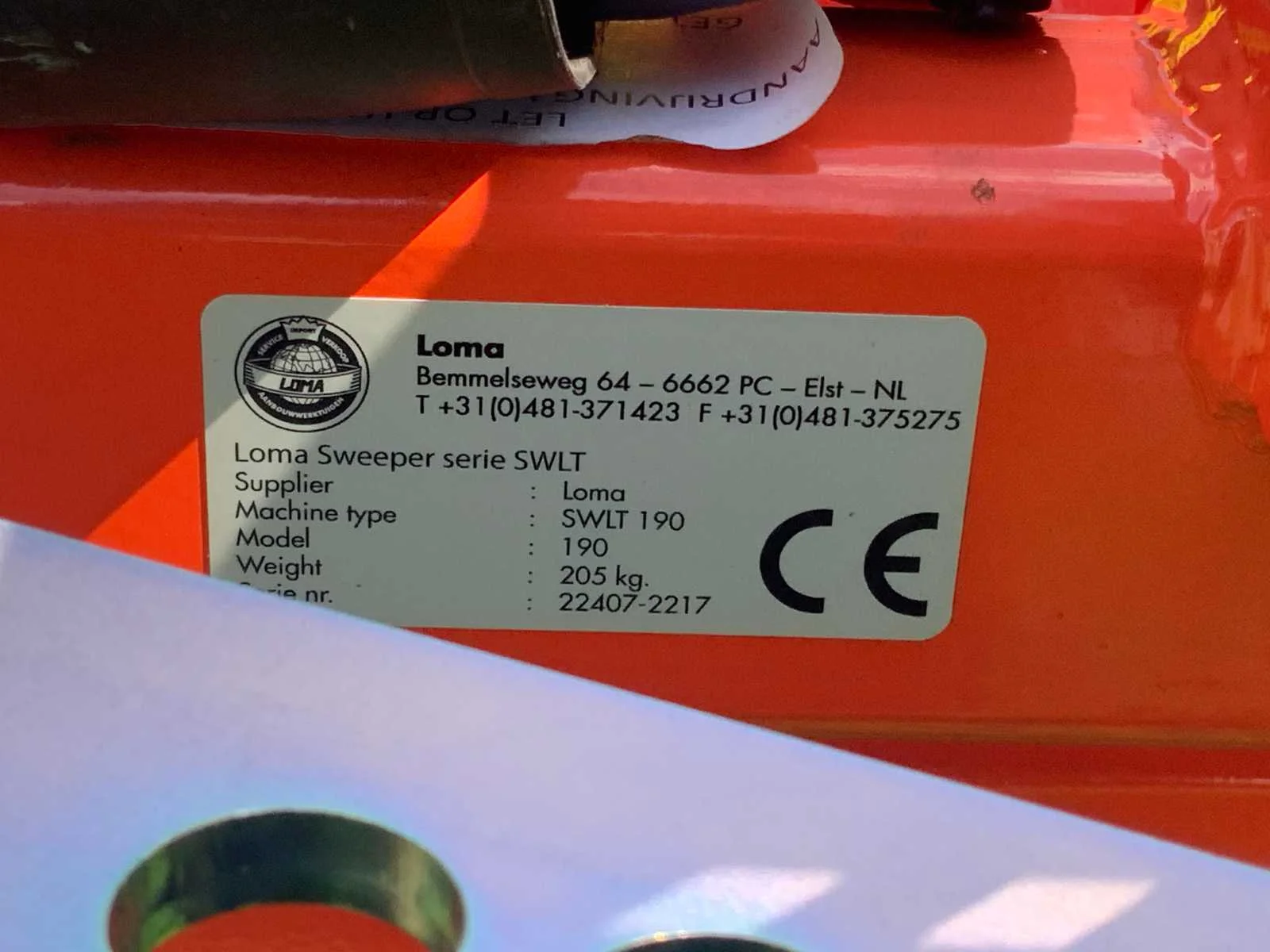 Betreft nieuwe machine in krat * Werkbreedte 1900mm * voorzien van aftakas * In hoogte verstelbaar * Kogel gelagerde luchtbanden * kettingaandrijving * Mechanisch links en rechts schuin te stellen * Cat. 1 driepunt achter de tractor * Nylon borstelringen diameter 52 cm. * Nee Merk: Loma Type: Sweeper SWLT190 Bouwjaar: 2021 Eigen gewicht: 205kg Totale afmeting L: 2030mm Totale afmeting Breedte: 1350mm Totale afmeting Hoogte: 830mm