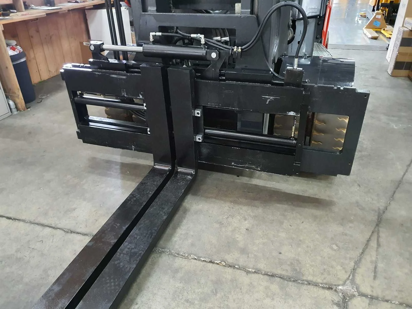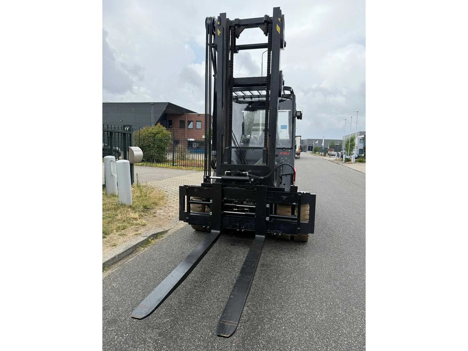 Extra opties: Led verlichting voorzijde, Led verlichting achterzijde, Zwaailamp, Dichte cabine, Kachel, Pedalen voor voor/achteruit, Glazen dak, Achterruit verwarming. Nee Merk: Linde Type: E80-01/900 Bouwjaar: 2017 Serienummer: H21279H00199 Brandstof: Elektrisch Mast: Duplex Soort band: Non-marking vol rubber Aantal wielen: 4 Afgelezen urenstand: 10703 Side-shift: true Hydraulisch verstelbare lepels: true Duplex mast: true Eigen gewicht: 16730kg Hefvermogen: 8000kg Lepellengte: 2000mm Hefhoogte: 4500mm Vol rubber banden: true Totale afmeting L: 5600mm Totale afmeting Breedte: 2100mm Totale afmeting Hoogte: 3600mm