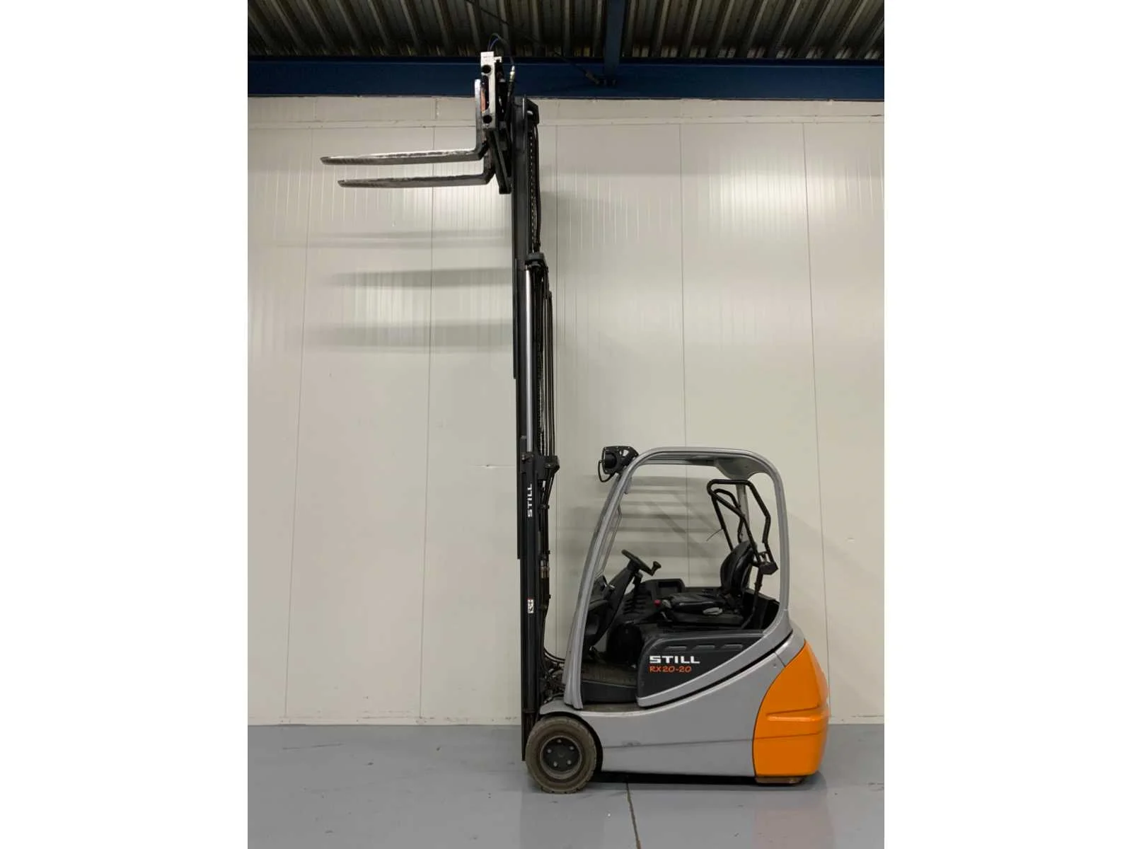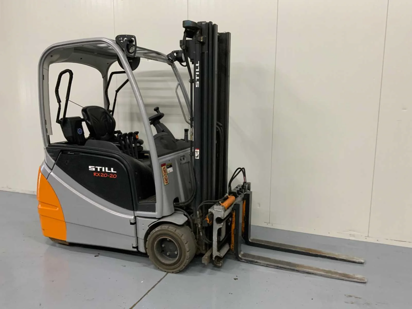 Extra opties: Hydraulische vorkenversteller, Verlichting voor, Valbeugel beveiliging, Nee Merk: Still Type: RX20-20 Bouwjaar: 2012 Serienummer: 516215C00377 Brandstof: Elektrisch Mast: Triple Soort band: Volrubber banden Aantal wielen: 3 Free-lift: true Side-shift: true Hydraulisch verstelbare lepels: true Triple mast: true Eigen gewicht: 3489kg Hefvermogen: 2000kg Lepellengte: 1200mm Hefhoogte: 4765mm Vol rubber banden: true Totale afmeting L: 3400mm Totale afmeting Breedte: 1150mm Totale afmeting Hoogte: 2200mm