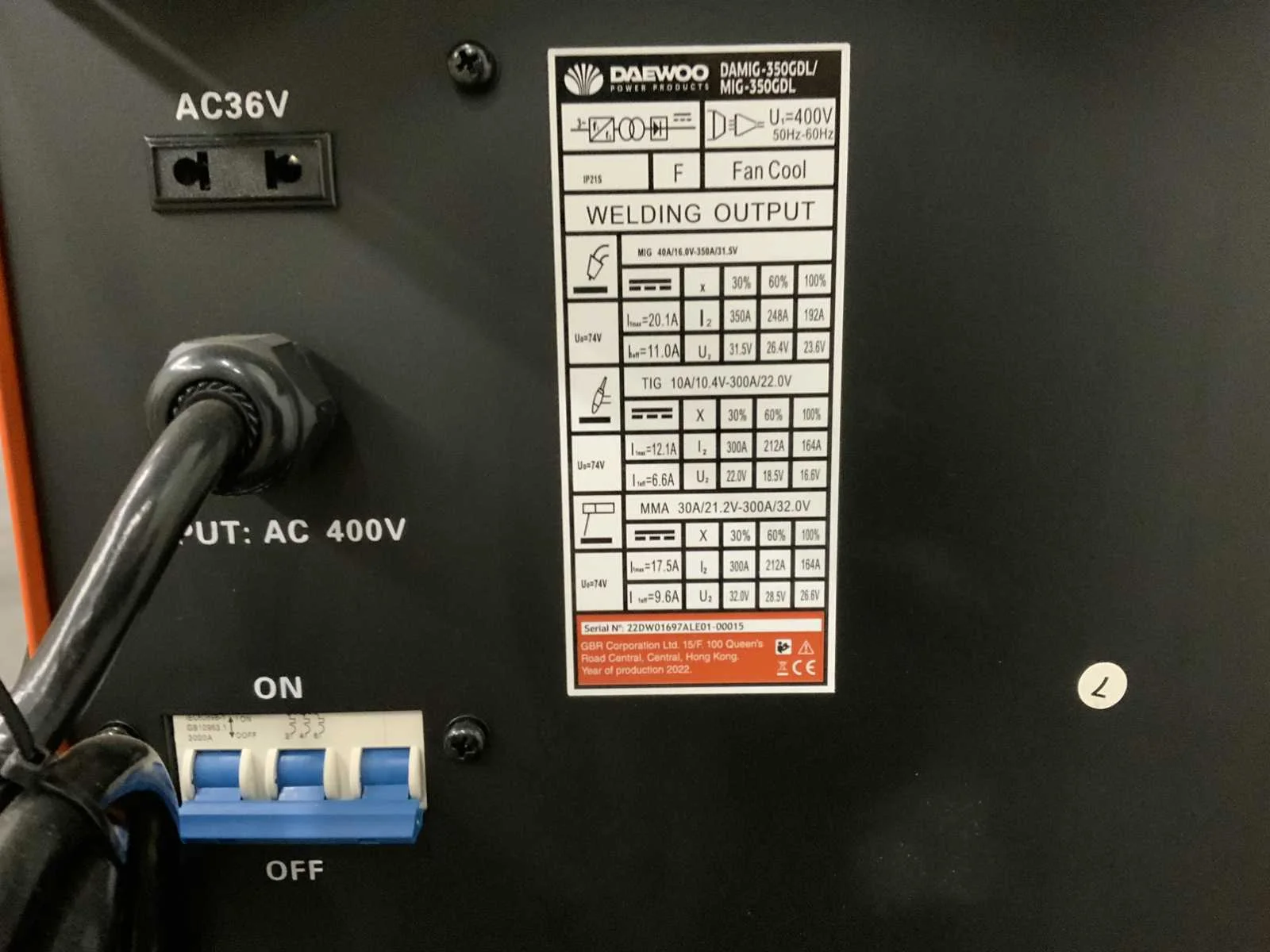 MIG/MAG lasapparaat, met een 350A vermogen is dit lasapparaat geschikt voor het lassen van dikker materiaal, wat het ideaal maakt voor zowel lichte als zware lasprojecten. Voltage: 380 - 400 V Phase: 3 Hertz: 50 Hz Output current: 40 - 350 A Duty cycle: 80% Welding wire: 0,80 - 1,2 mm Welding plate thickness: 0,5 - 12 mm IGBT MAG / MIG, MMA & Lift TIG Double pulse function VRD 2T / 4T function 4 drive feeder 5 language support 18 sets of weld data memory Nee Merk: Daewoo Type: Damig-350GDL Bouwjaar: 2025