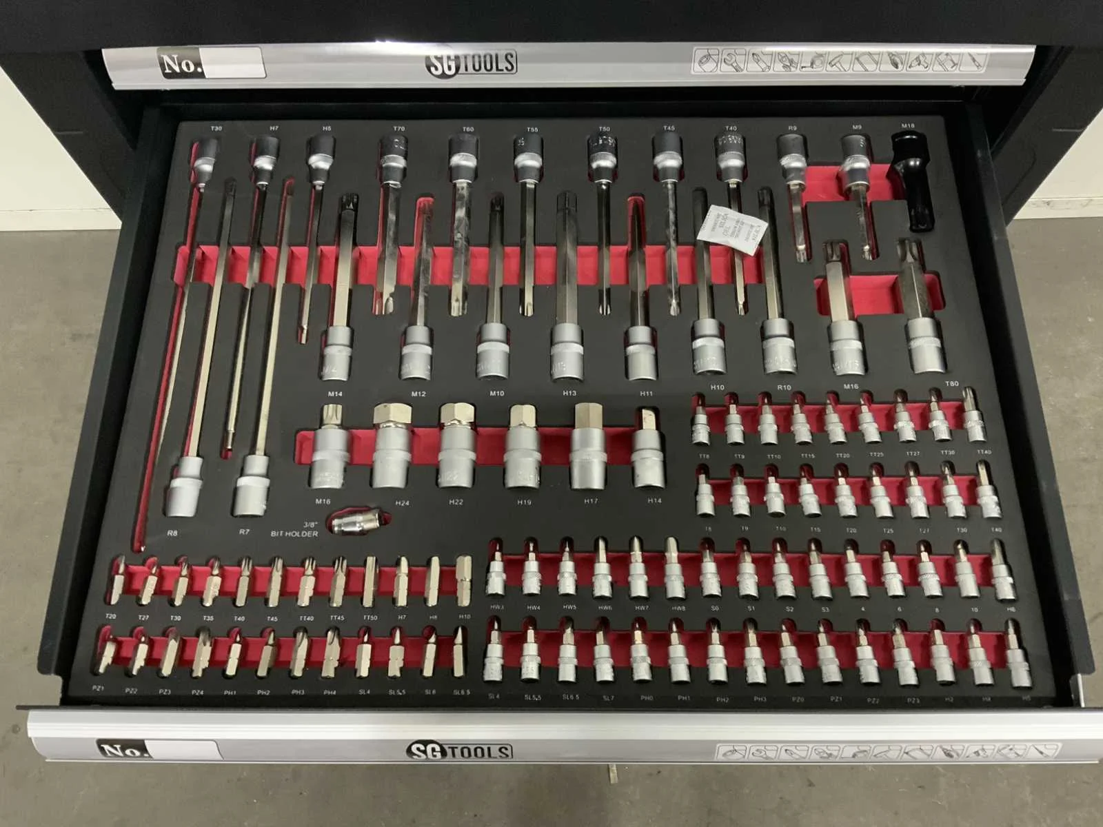 Aantal laden 7 incl 257 pcs Nee Merk: Sg tools Type: 257 stuks Bouwjaar: 2025 Aantal laden: 7 Met inhoud: true Eigen gewicht: 73kg Totale afmeting L: 790mm Totale afmeting Breedte: 480mm Totale afmeting Hoogte: 1010mm