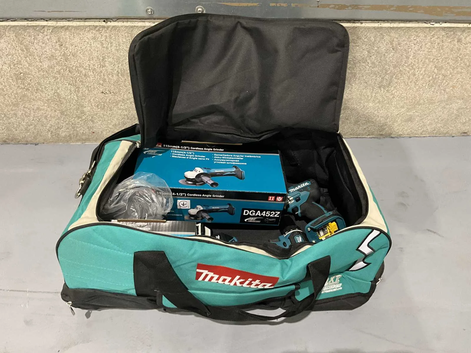 Ongebruikt , boorschroef machine , slagschroevendraaier , schroefmachine , slijptol 2 x 5.0AH accu , Makita opberg tas , 2024 Nee Merk: Makita Type: 4 delige accu combiset Bouwjaar: 2025 Kleur: Blauw / zwart Accu lader: true Accuspanning: 18V Aantal accu's: 2
