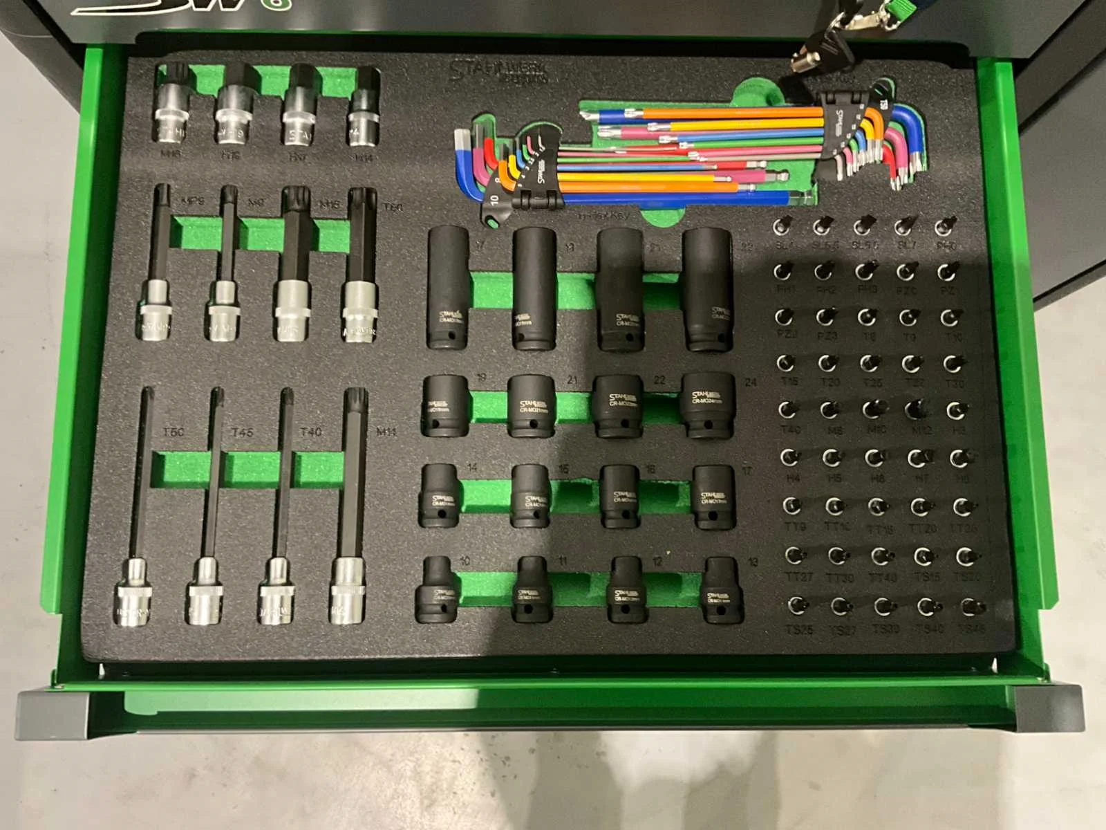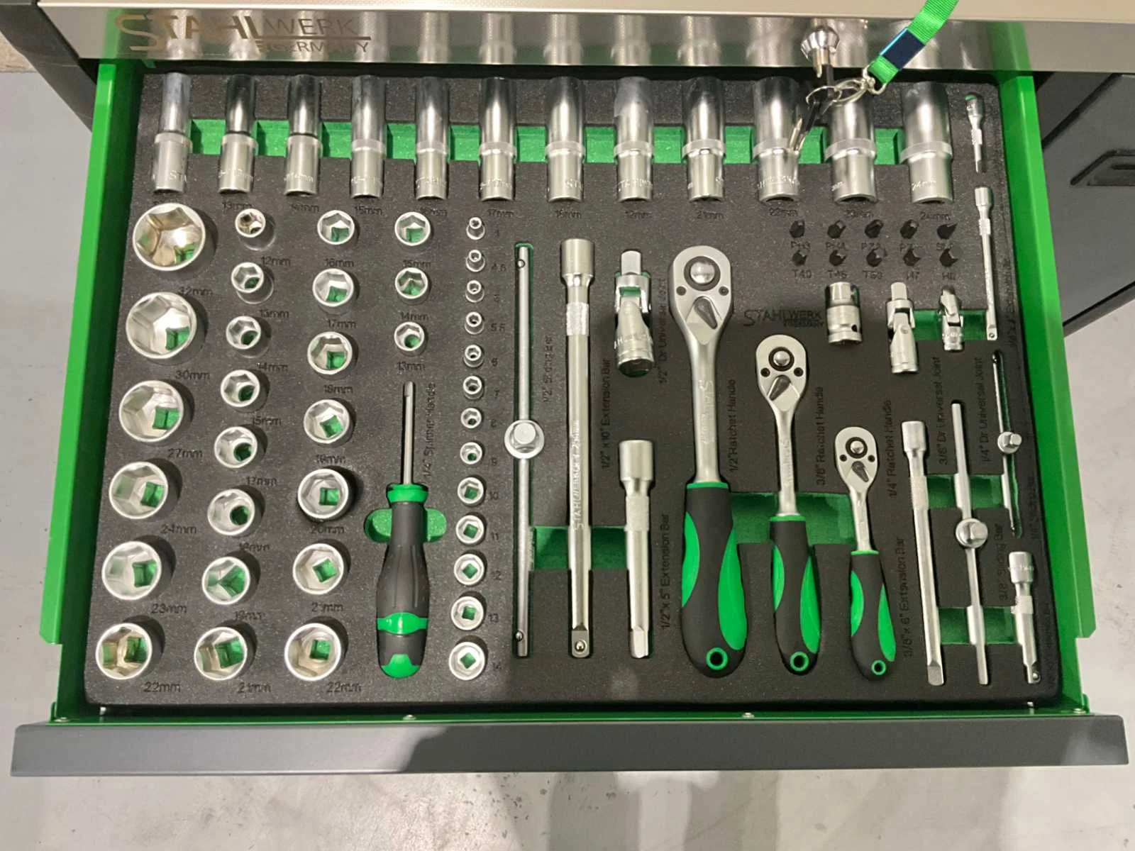 Ongebruikt , 3 stopcontacten , 2 usb poorten 13 stuks 1/4” doppen: 4-4,5-5-5,5-6-7-8-9-10-11-12-13-14mm 10 stuks 3/8” doppen: 13-14-15-16-17-18-19-20-21-22mm 14 stuks 1/2” doppen: 12-13-14-15-17-18-19-21-22-23-24-27-30-32mm 12 st. 1/2” dopsleutel: 12-13-14-15-16-17-18-19-21-22-24mm 3 stuks 1/4“ 3/8” 1/2” duwstang 3 stuks 1/4“ 3/8” 1/2” kruiskoppeling 2 st. 1/4“ maat 2” & 4” verlengstang 2 st. 3/8“ maat 3”&6” verlengstang 2 st. 1/2“ maat 5”&10” verlengstang 3 stuks 1/4“ 3/8” 1/2” ratelhandgreep 72T 1 st. 1/4“ snijhendel 1/2” Dr. koppeling 10 st. Bits PH3-4, PZ3-4, SL8, T40-45-50, H7-8; 12 st. 1/2” inbusbits maat: H14-17-19, M16, M9, MP9, M16, T80, M14, T40-45-50. 45 stuks 1/4” dopsleutels: SL4-SL5,5-... (en zo verder volgens uw lijst) 12 stuks 1/2” Pneumatische doppen: 10-11-12... (enzovoort) 9 stuks Lange inbussleutels: 1,5-2-2,5-... (enzovoort) 14 stuks schroevendraaiers: SL8*175-SL8*150-... (enzovoort) 7 stuks schroevendraaiers: SL6*38-SL5*100-... (enzovoort) 9 stuks. Flachringschlüssel:8-9-10-11-... (enzovoort) 21 stuks Kombischlüssel:6-7-8-9-10-11-... (enzovoort) 1 st. 8” verstelbare moersleutel 9 stuks schroevendraaiers: H2*100-5*150-... (enzovoort) 8 stuks T-Stecknuss:6-7-8-9-10-11-12-13mm 1 st. 8” combinatietang 1 stuk 8” naaldneuzen 1 x 8” zijkniptang 1 x 10” waterpomptang 1 x 10” vergrendeltang 1 stuk 7” binnenringtang recht 1 stuk 7” binnenringtang gebogen 1 x 7” buitenringtang recht 1 st. 7” buitenringtang gebogen 1 st. Meetlint 5 Nee Merk: Stahlwerk Type: SW 8 Bouwjaar: 2025 Aantal laden: 8 Met inhoud: true