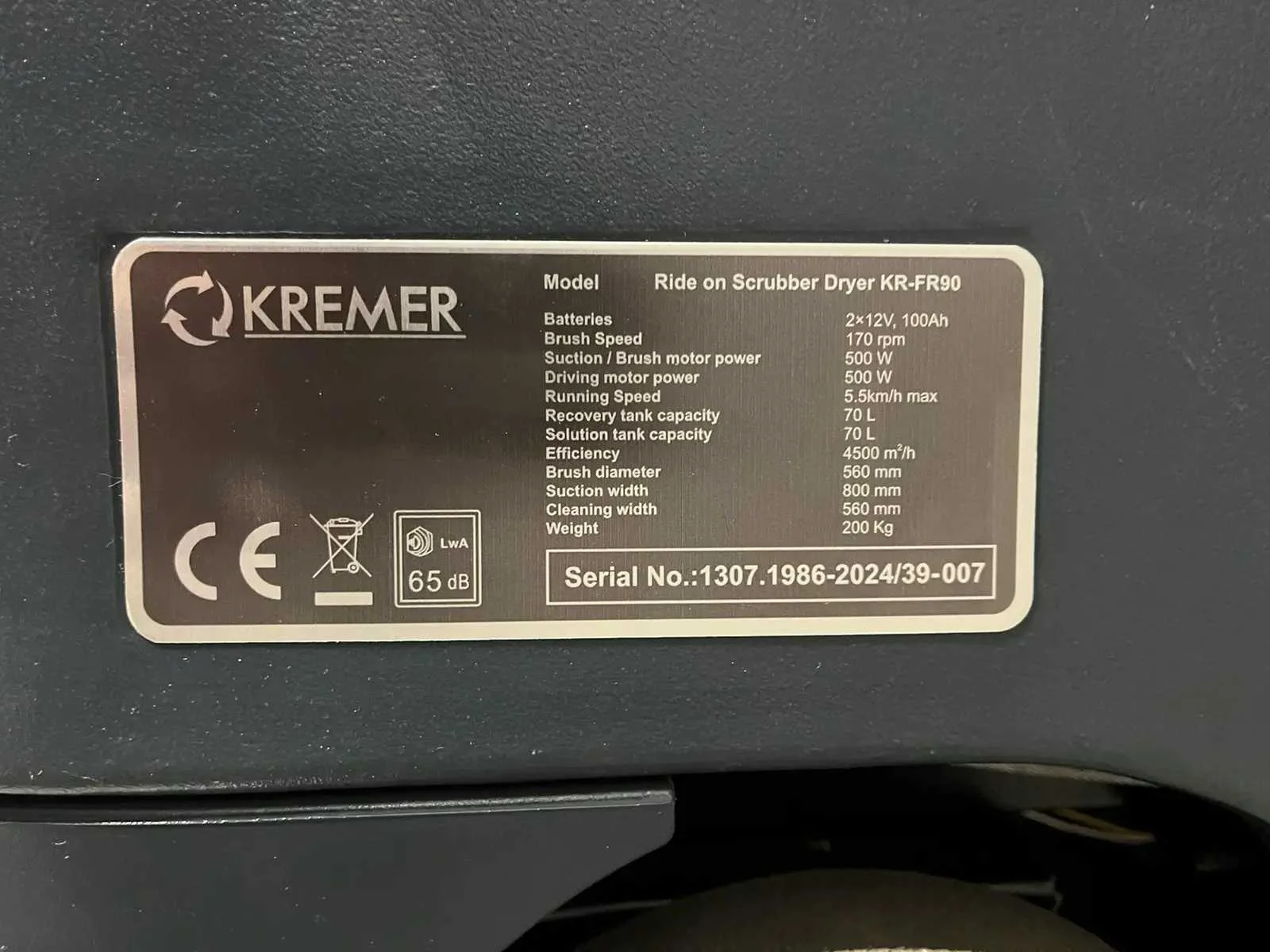Ongebruikt , accu 2 x 12V 100ah , max snelheid. 5,5km/u , borstel motor 500W , rijmotor kracht 300W , 4500m2 , vuile tank 70L , schone tank 70L Nee Merk: Kremer Type: KR FR 70 Bouwjaar: 2025 Werkbreedte: 900mm Elektrisch: true Afgelezen urenstand: 1hr Accu lader: true Aansluiting: 220V Eigen gewicht: 220kg Totale afmeting L: 1170mm Totale afmeting Breedte: 1000mm Totale afmeting Hoogte: 1100mm