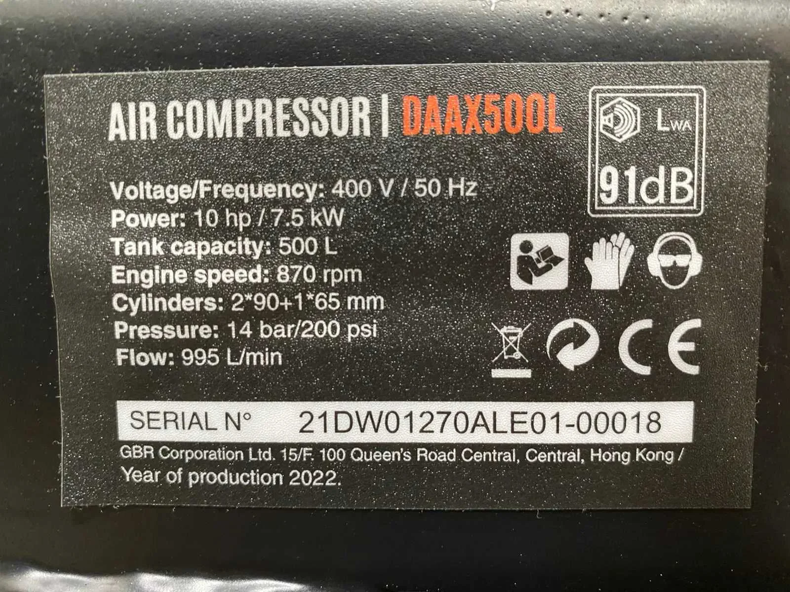 Daewoo - 2025 - daax 500l - luchtcompressor
