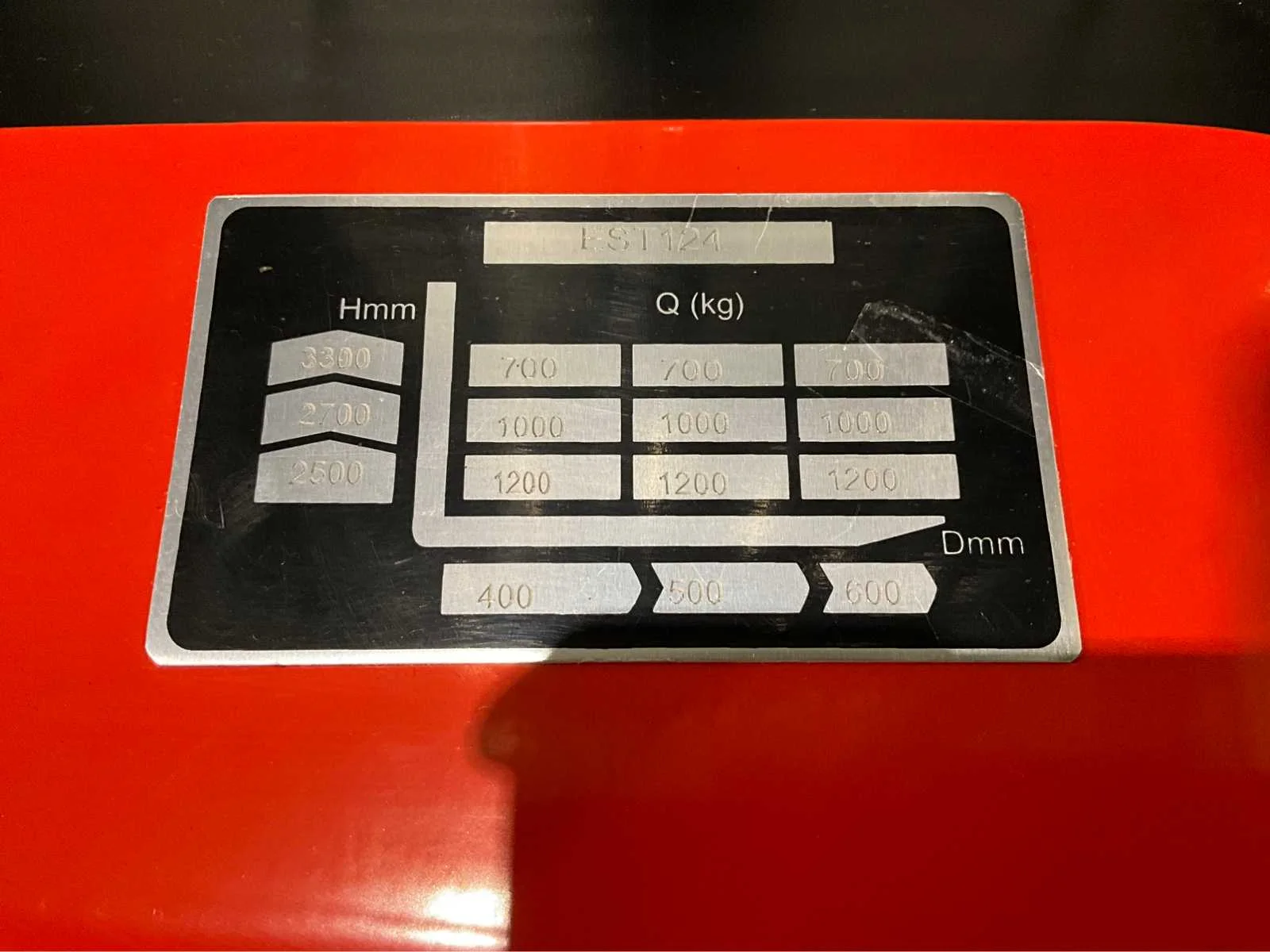 Ongebruikt , 2024 model , interne lader ingebouwd Nee Merk: EP Type: EST 124 3,3 meter Bouwjaar: 2025 Hefvermogen: 1200kg Hefhoogte: 3300mm Lepellengte: 1150mm Afgelezen urenstand: 1 Eigen gewicht: 480kg Totale afmeting L: 1720mm Totale afmeting Breedte: 800mm Totale afmeting Hoogte: 2240mm Accu lader: true