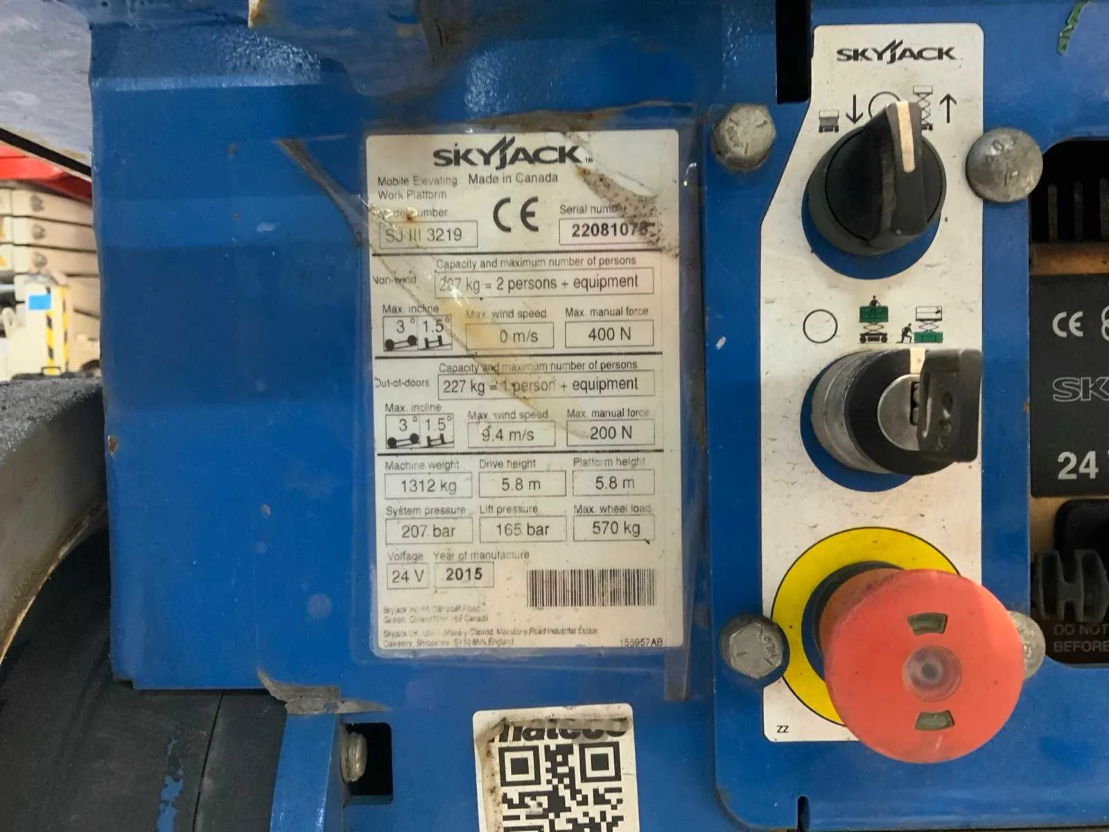 Interne acculader, urenstand 278 uur; platform uitgeschoven 243 cm, werkhoogte 7,8m Nee Merk: SkyJack Type: SJIII3219 Bouwjaar: 2015 Serienummer: 22081076 Elektrisch: true Schaarhoogwerker: true Werkhoogte: 7800mm Plateau afm. l: 1620mm Plateau afm. b: 650mm Platform capaciteit: 227kg Accu lader: true Afgelezen urenstand: 278 Eigen gewicht: 1312kg Totale afmeting L: 1900mm Totale afmeting Breedte: 800mm Totale afmeting Hoogte: 1200mm