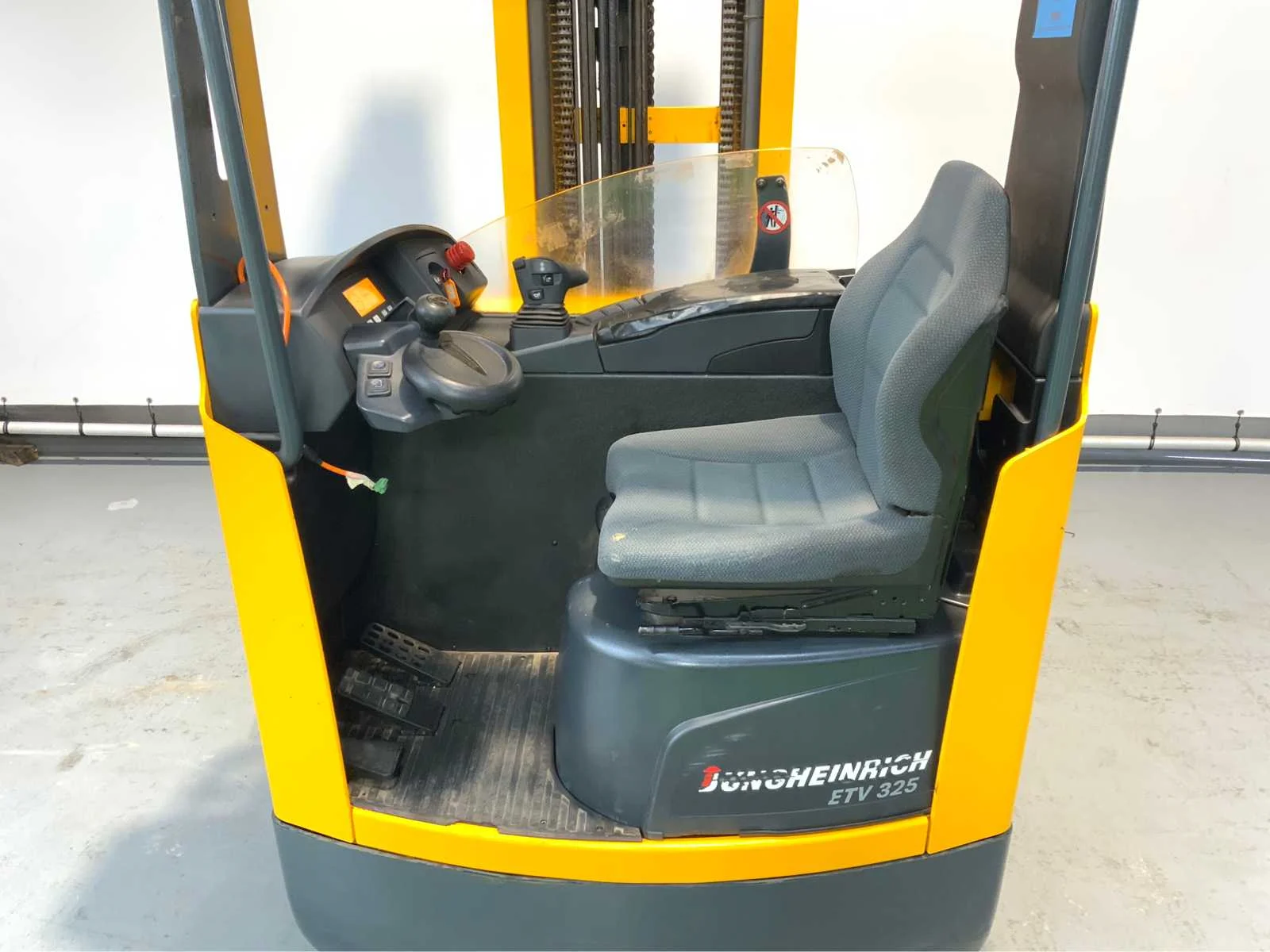 Extra opties: verstelbare armsteun, armsteun opbergvak. Weeg functie aanwezig Nee Merk: Jungheinrich Type: ETV 325 Bouwjaar: 2013 Serienummer: 91081643 Aantal wielen: 3 Afgelezen urenstand: 6243 Free-lift: true Side-shift: true Triple mast: true Eigen gewicht: 5221kg Hefvermogen: 2000kg Lepellengte: 1150mm Hefhoogte: 8720mm Totale afmeting L: 2800mm Totale afmeting Breedte: 1260mm Totale afmeting Hoogte: 3550mm Elektrisch: true