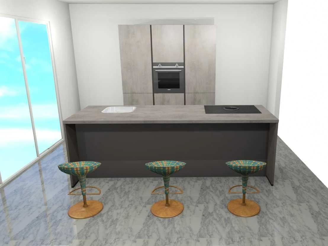 Bora GP4U InductionAir, kookveld met afzuiging, 76cm, inductie met 4 kookzones; Let op! zonder kraan, accessoires en krukken; Staat niet opgesteld in de showroom, enkel via 3D tekening; Let op! Vaatwasser deur is uit 1 stuk. Let op: ongebruikt in doos; Nee Merk: Nobilia Model: Riva Decor Schiefer grijs Type keukenopstelling: eiland Lengte: 185cm Breedte: 60cm Hoogte: 215cm Gootsteen: Reginox opbouw Amsterdam pure black 50 spoelbak Werkblad hoogte: 91cm Aanrechtblad: HLP Kleur 330 Decor Beton grijs Koelkast: Laurus LKS122F 122cm sleepdeur systeem koelkast Softclose: true Oven: Siemens HB510ABR1 bakoven 60cm Rvs/zwart Vaatwasser: Laurus LSV604 volledig geïntegreerd inbouw vaatwasser Lengte kookeiland: 265cm Breedte kookeiland: 90cm Hoogte kookeiland: 91cm Plintkleur: Decor Beton Schiefer grijs Hoofdkleur: Decor Beton Schiefer grijs Style: Modern Kleur: Decor Beton Schiefer grijs