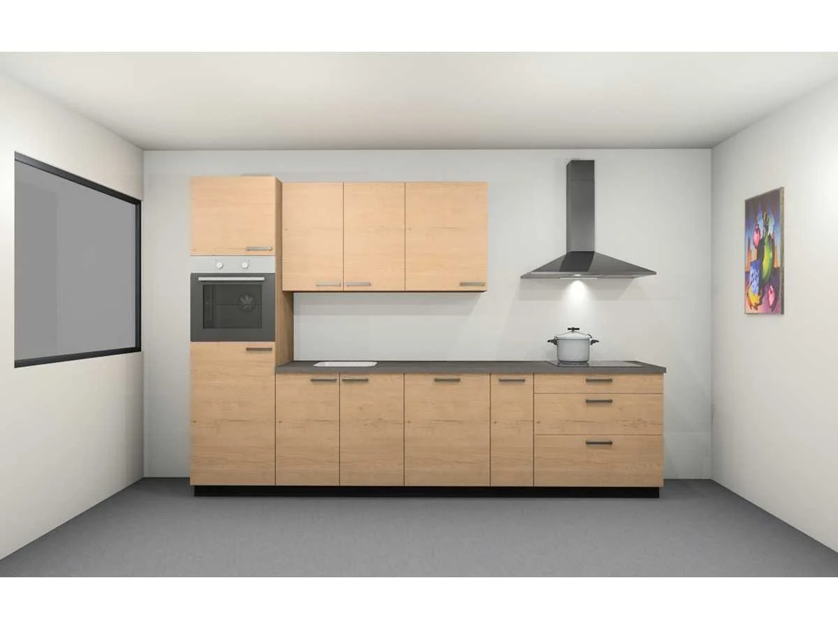 ”Laurus” LCA60, 60cm, keramische 4-zone kookplaat; Let op! Staat niet opgesteld in de showroom, enkel via 3D tekening; wordt geleverd ongebruikt in doos Nee Merk: Nobilia Model: Structura Decor eiken Sierra Type keukenopstelling: Recht opstelling Lengte: 331cm Breedte: 60cm Hoogte: 91cm Gootsteen: Reginox Colorado rvs Werkblad hoogte: 3,8cm Aanrechtblad: Kunststof mat Decor zwart graniet gevlamd Koelkast: Laurus LKS88F, Nis 88cm Softclose: true Oven: Laurus LEB5, 60cm Afzuigkap: Elica Missy BL90-D 90cm Vaatwasser: Laurus LSV604 Hoofdkleur: Decor eiken Sierra Style: Modern Kleur: Decor eiken Sierra