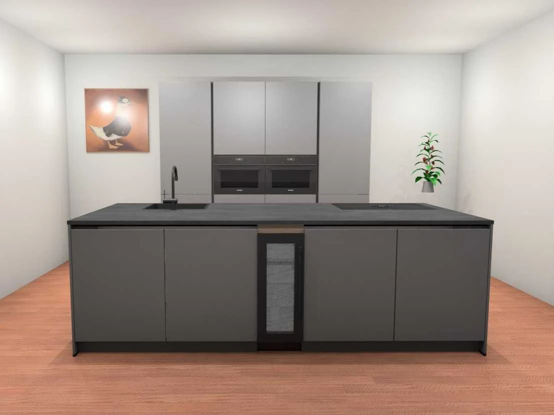Bora Puru 76cm inductiekookplaat, 4-kookzones met afzuiging; Siemens KU20WVHF0 wijnklimaatkast 82x30cm; Zonder kraan en accessoires. Let op! Staat niet opgesteld in de showroom, enkel via 3D tekening; wordt geleverd ongebruikt in doos. Nee Merk: Häcker Concept130 Model: TopSoft parelgrijs mat Type keukenopstelling: Eiland opstelling Lengte: 245cm Breedte: 60cm Hoogte: 218cm Gootsteen: Reginox Amsterdam 50 pure black Werkblad hoogte: 92cm Aanrechtblad: Kunststof zwart geplamuurde beton repro Koelkast: Siemens KI86V5SE0 178cm koelvrieskast Softclose: true Oven: Siemens Stoomoven CS936G1B1 45cm / CB974GKB1 oven 45cm Vaatwasser: Siemens SN63H802UE volledig geïntegreerd 60cm Lengte kookeiland: 274cm Breedte kookeiland: 120cm Hoogte kookeiland: 92cm Plintkleur: parelgrijs mat Hoofdkleur: parelgrijs mat Style: Modern Kleur: parelgrijs mat