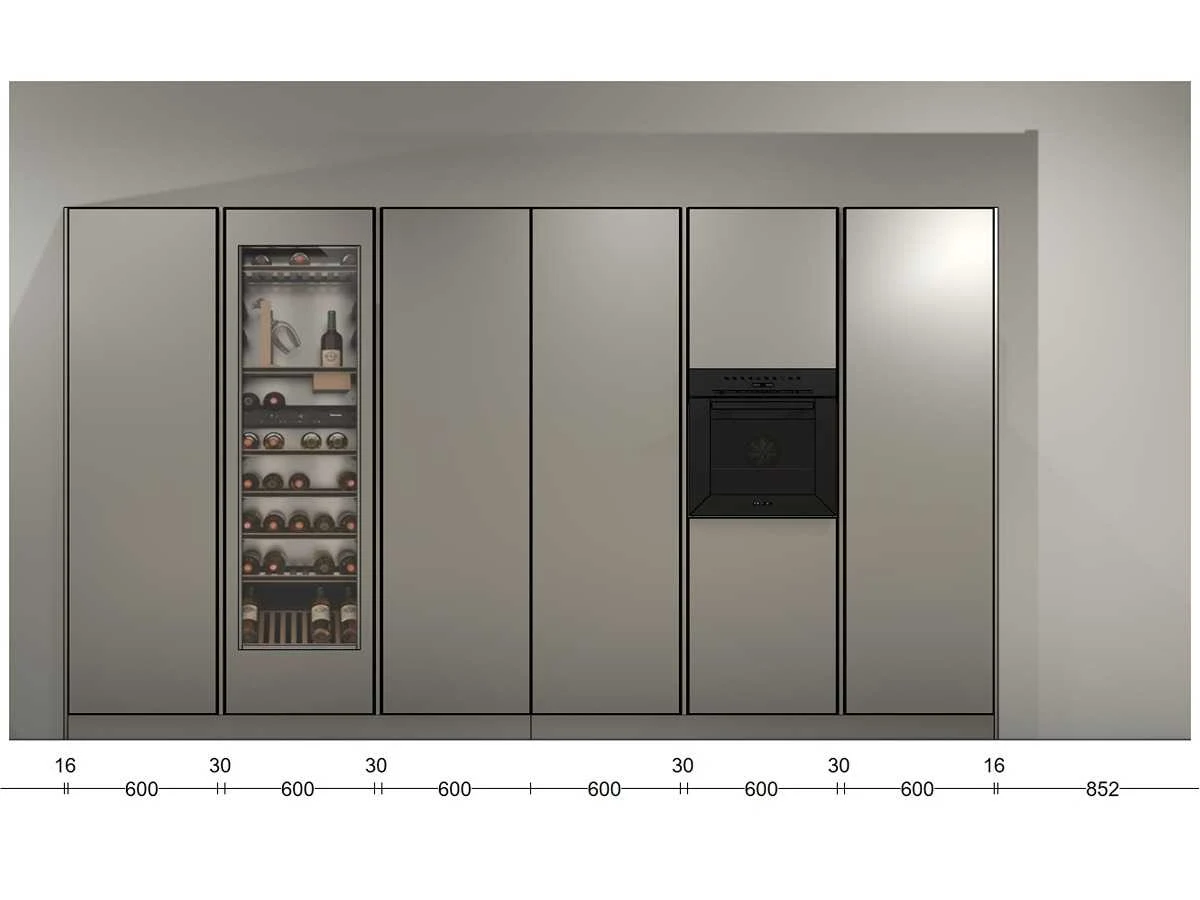 Miele KWT 6722 iS-1 EU1, wijnklimaatkast, 177cm. 259liter, Miele KMDA 7473 FR-U Silence RVS BNE, werkblad afzuiging, inductie, 4 kookzones, 80cm. Opbouwmodel Let op! Werkblad is van Kemie Venturo Gold glans, cosmostone, 4cm. Heeft naad in het midden. Let op! Keuken staat niet opgesteld, enkel 3D tekening en wordt geleverd ongebruikt in doos. Let op! Aanrecht blad is zwaar, tijdens afhaal dag zorgvuldig meenemen en neem extra man kracht mee! Nee Merk: Duitse Keuken Model: Kasjmier mat lak Type keukenopstelling: Eiland met hoge kasten Lengte: 375cm Breedte: 60cm Hoogte: 214cm Gootsteen: Reginox Houston RVS vlak inbouw Aanrechtblad: Kemie Venturo Gold glans, cosmostone, 4cm Koelkast: Miele K7715E, koeler 178cm, Softclose: true Oven: DGC 7250 OBSW BN, Stoomoven, 60cm Vaatwasser: Miele G 5651 SCVi Active, volledig geintegreerd Lengte kookeiland: 364cm Breedte kookeiland: 120cm Hoogte kookeiland: 93,5cm Plintkleur: Kasjmier mat Hoofdkleur: Kasjmier mat lak Style: Modern greeploos Kleur: Kasjmier mat lak