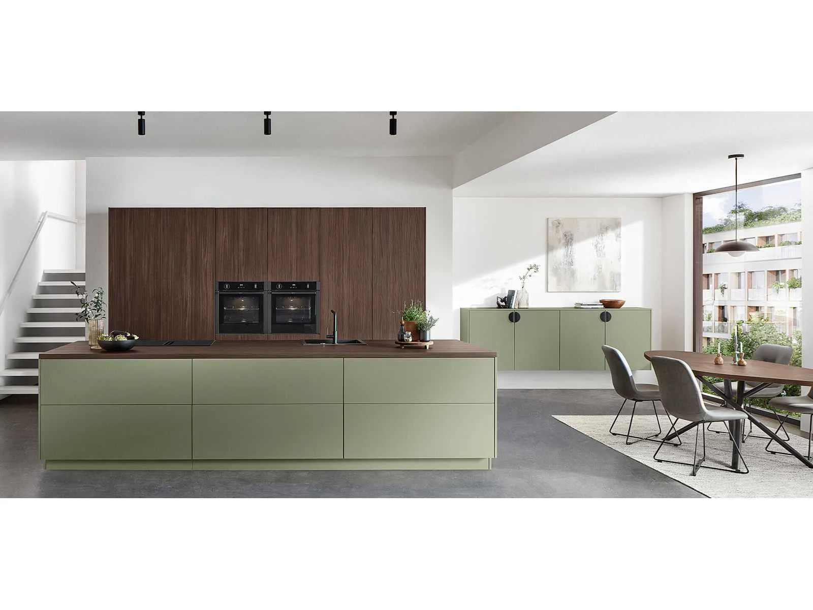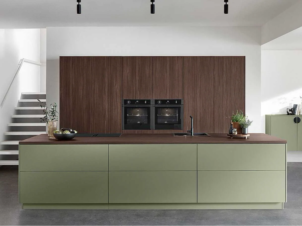 Neff V58NBS1L0, inductie afzuiging, opbouw, 80cm, 4 kookzones. Let op! Keuken in 2 kleuren. Hoge kasten Structura Decor noten Milano, Eiland: Senso Lak, olijf premium mat. Let op! Lades aan de achterkant van het eiland zijn, Push To Open systemen! Let op! Keuken staat niet opgesteld, enkel 3D tekening en wordt geleverd ongebruikt in doos. Let op! Aanrecht blad is zwaar, tijdens afhaal dag zorgvuldig meenemen en neem extra man kracht mee! Nee Merk: Nobilia Model: Structura Decor noten Milano Type keukenopstelling: Eiland Lengte: 369cm Breedte: 60cm Hoogte: 226cm Gootsteen: Reginox Amsterdam Pur 50 zwart opbouw model Werkblad hoogte: 93cm Aanrechtblad: HPL 399 Decor noten Milano 3,8cm Koelkast: Bosch KIR81AFE0 178cm, koeler Softclose: true Oven: 2x Neff B1ACE2AG3 bakoven, 60cm Vaatwasser: Neff S175HTX04E 60cm, volledig geïntegreerde vaatwasser Lengte kookeiland: 364cm Breedte kookeiland: 117cm Hoogte kookeiland: 93cm Hoofdkleur: Structura Decor noten Milano/ Senso Lak, olijf premium mat Style: Modern greeploos en Push to Open Lades