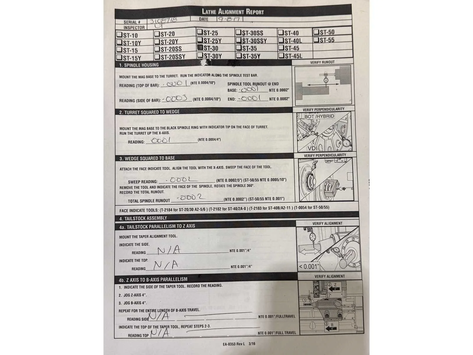 Max. stukzwaaier: 806 mm; Asverplaatsing (X, Z): 324 mm, 660 mm; voorzien van 12-voudig BOT gereedschapscarroussel; 3-klauwplaat, diameter 254 mm; "Hennig" automatische spanentransporteur, type: 101435, bouwjaar 2017; Let op! zonder tegencenter Nee Merk: Haas Type: ST-30 Bouwjaar: 2017 Serienummer: 3108718 Draai: 533mm Draailengte: 660mm Holle spil Ø: 76mm Snelheid van n =: 0rpm Snelheid tot n =: 3400rpm Spanentransporteur: true CNC-besturing, merk, type: OneCNC XR7 Motorvermogen (kW): 22,4kW Aansluiting: 400V Machinegewicht: 6000kg Afmeting l: 3100mm Afmeting b: 2050mm Afmeting h: 2150mm Leveringsvoorwaarden: Niet gefundeerd - onverpakt