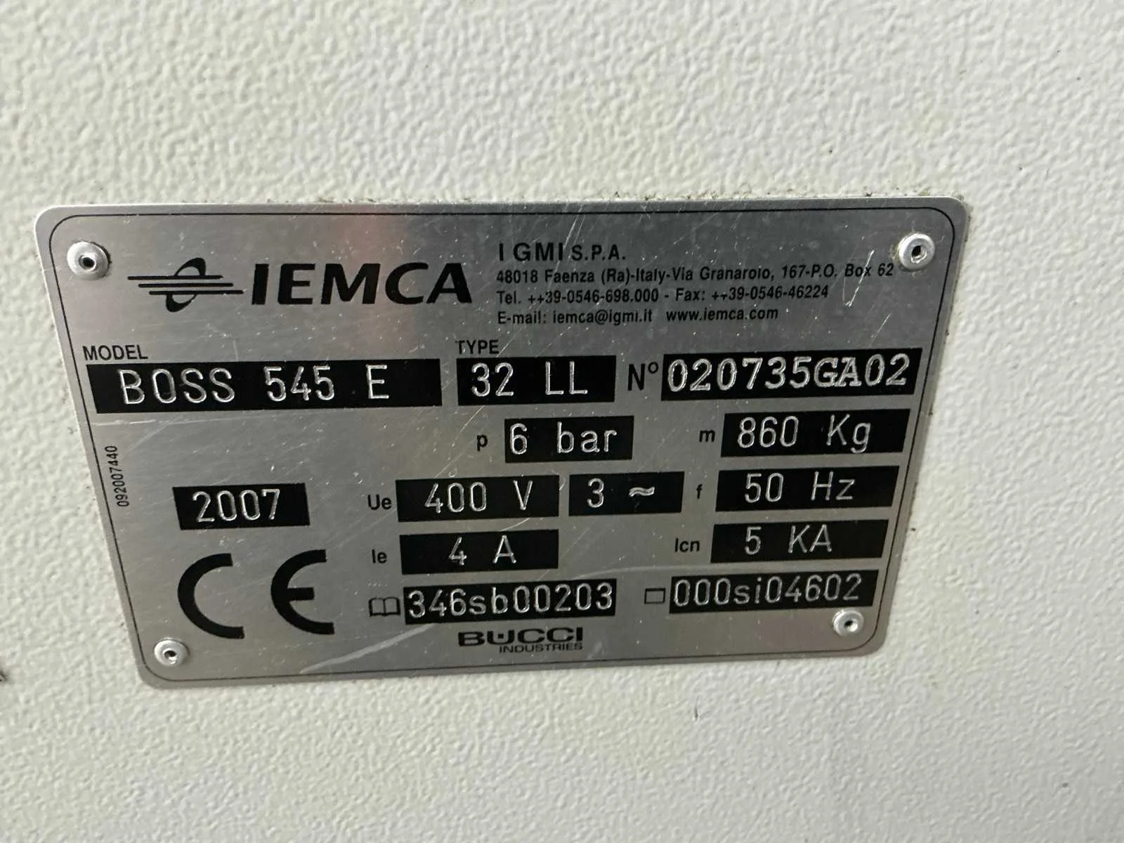 Maximale lengte werkstuk 3200 mm; Nee Merk: Iemca Type: Boss 545 E Bouwjaar: 2007 Serienummer: 020735GA02 Aansluiting: 400V Machinegewicht: 860kg Afmeting l: 4200mm Afmeting b: 650mm Afmeting h: 1370mm