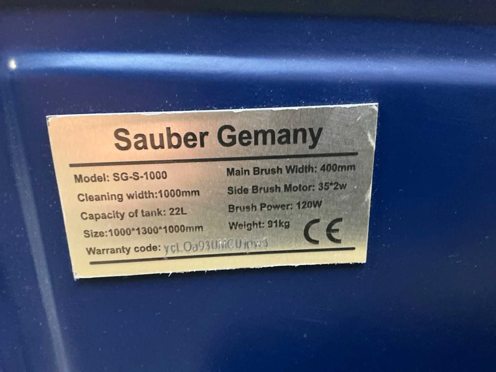 Voorzien van: waterpomp, vuilcontainer. Nee Merk: Sauber Type: SG-S-1000 Serienummer: YCLOA93UMCU1pw3 Werkbreedte: 400mm Eigen gewicht: 91kg Totale afmeting L: 1000mm Totale afmeting Breedte: 900mm Totale afmeting Hoogte: 700mm