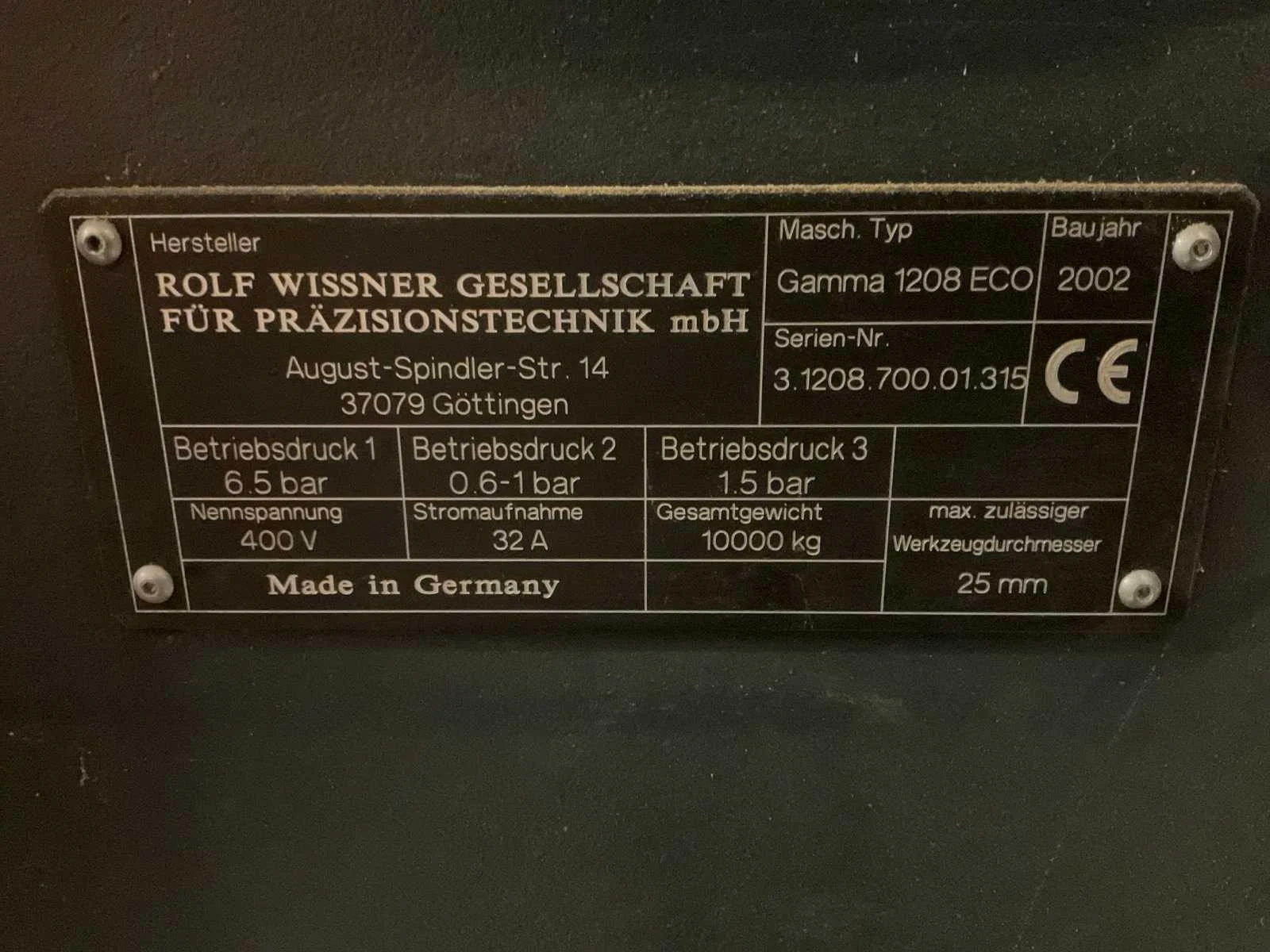 LET OP! besturingsysteem start niet op (programma/abonnement verlopen, tafel 1500x900mm, Nee Merk: Wissner Type: Gamma 1208 ECO Bouwjaar: 2002 Serienummer: 3.1208.700.01.315 Verplaatsing x-as: 1200mm Verplaatsing y-as: 800mm Verplaatsing z-as: 700mm Opname: HSK F63 Werkstuk gewicht max.: 860kg Motorvermogen (kW): 10kW Machinegewicht: 10000kg Afmeting l: 2200mm Afmeting b: 3150mm Afmeting h: 2500mm