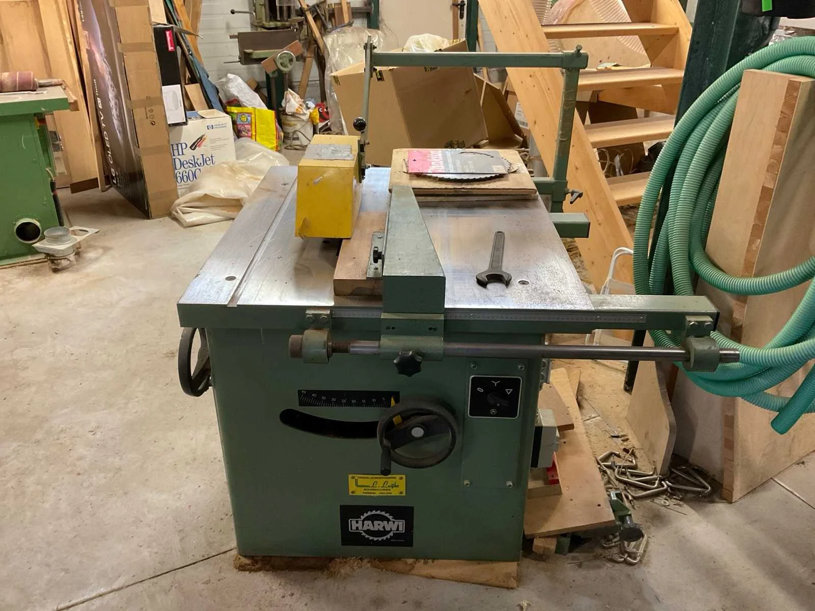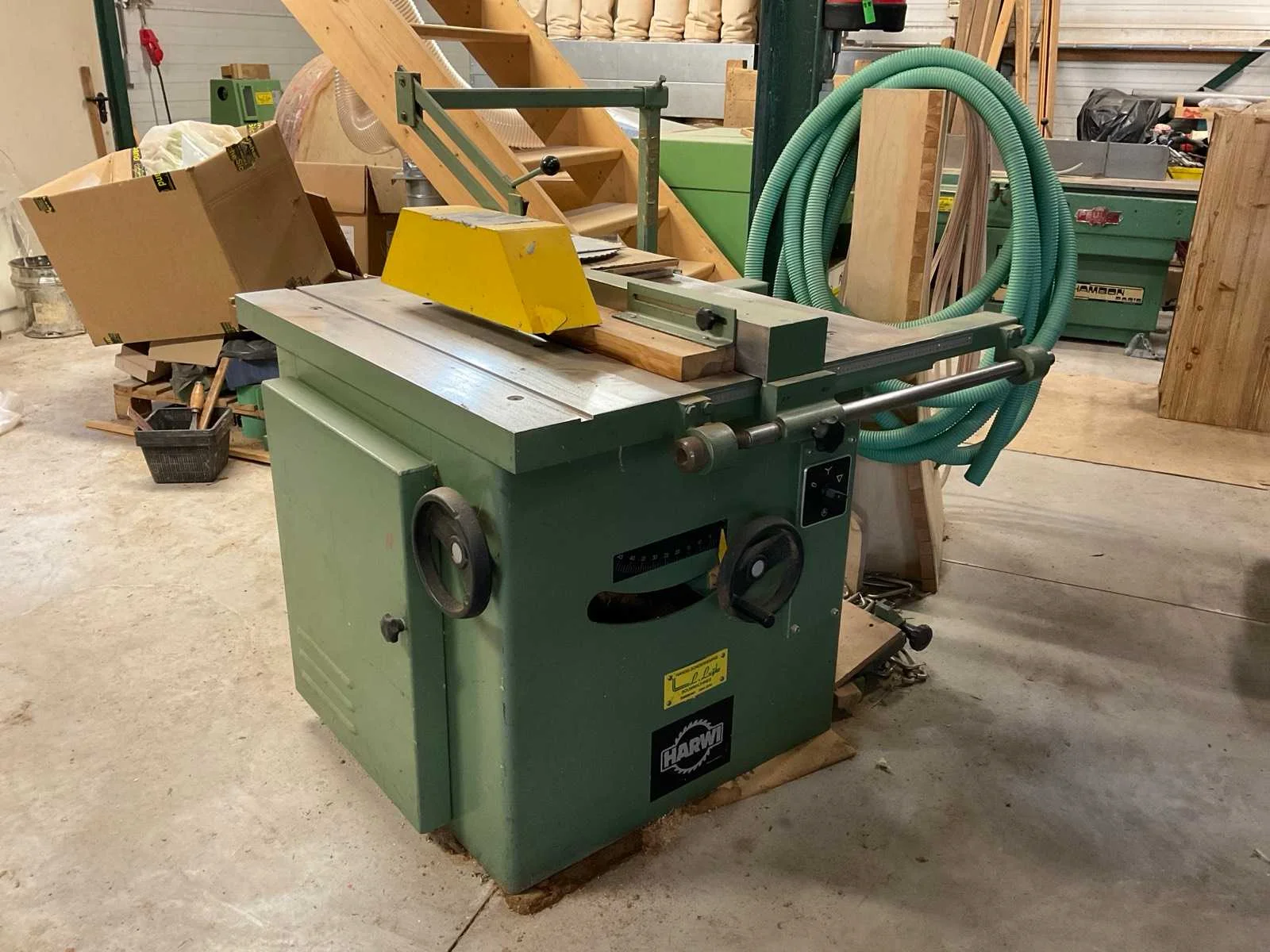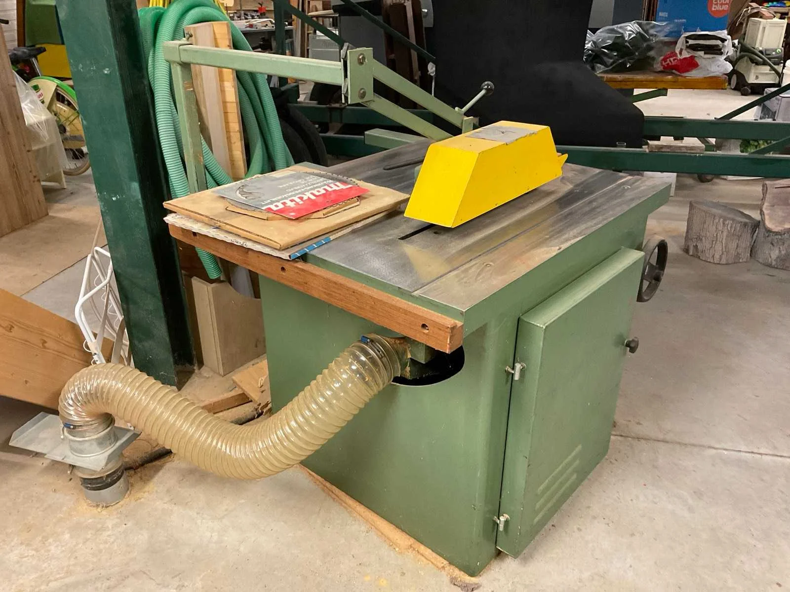 Functioneert naar behoren, voorzien van motafzuigpunt, reserve zaagbladen Nee Merk: Harwi Type: 130 103 Bouwjaar: 1989 Zaagblad Ø: 400mm Tafel afmeting l: 1050mm Tafel afmeting b: 900mm Onderliggende afkortzaag: true Motorvermogen (kW): 5.5kW Aansluiting: 380V Totale afmeting L: 1200mm Totale afmeting Breedte: 1200mm Totale afmeting Hoogte: 1300mm