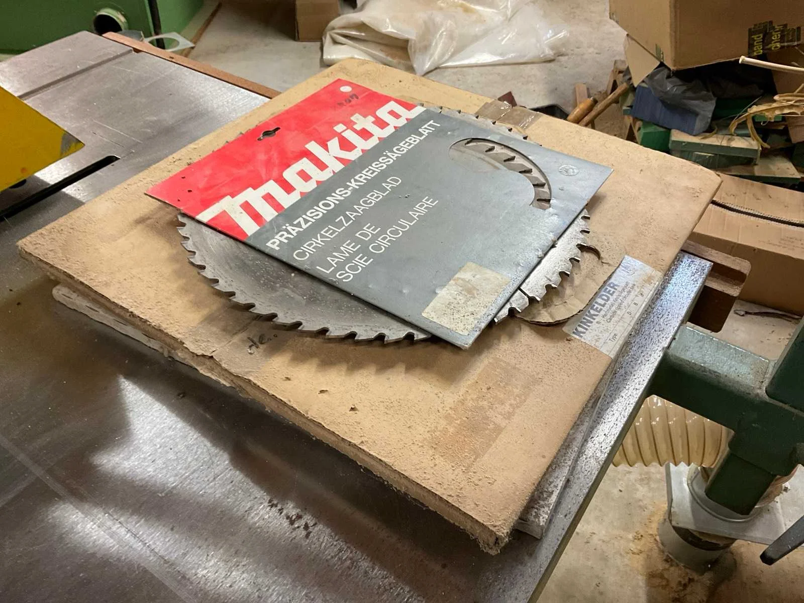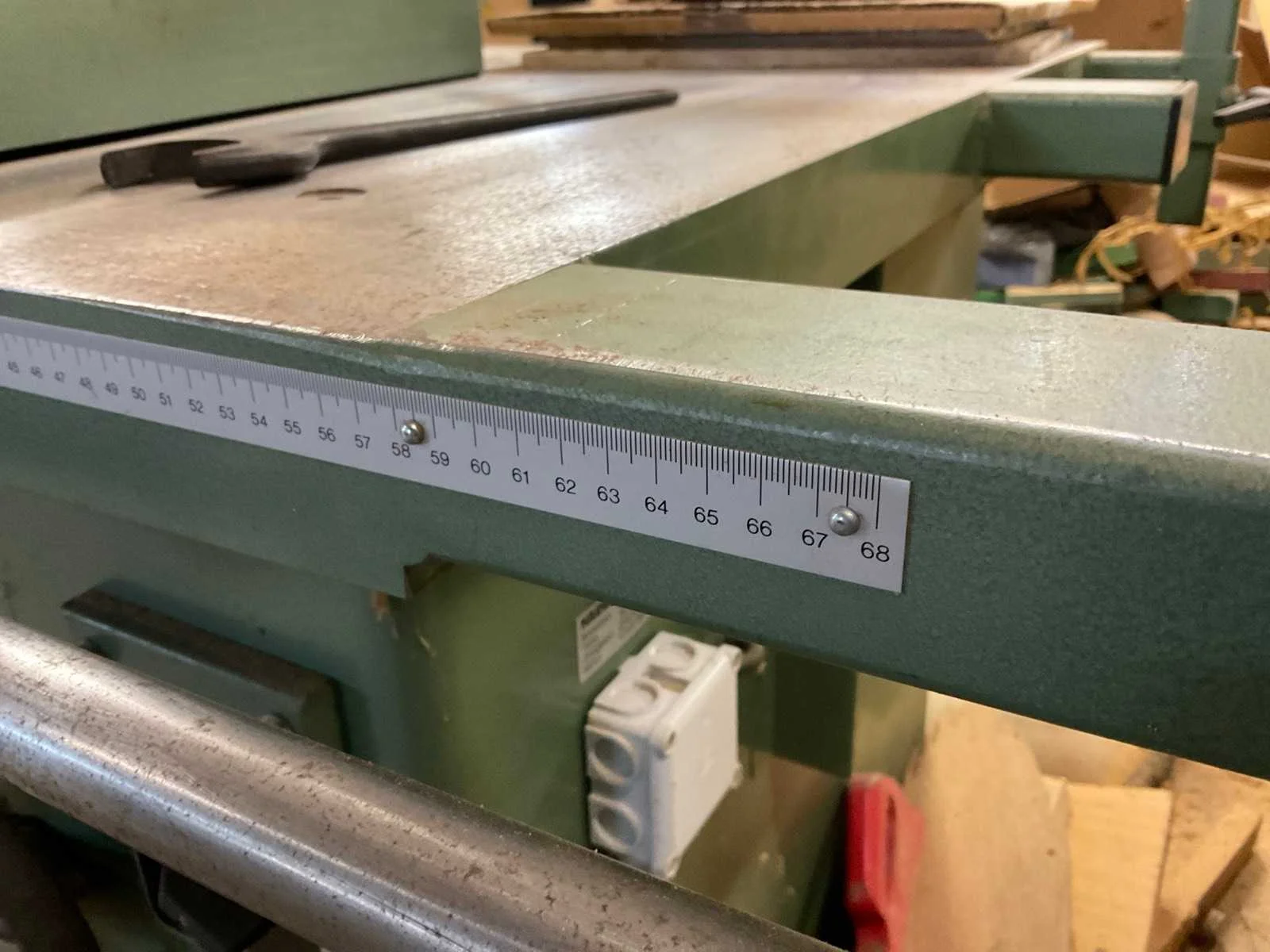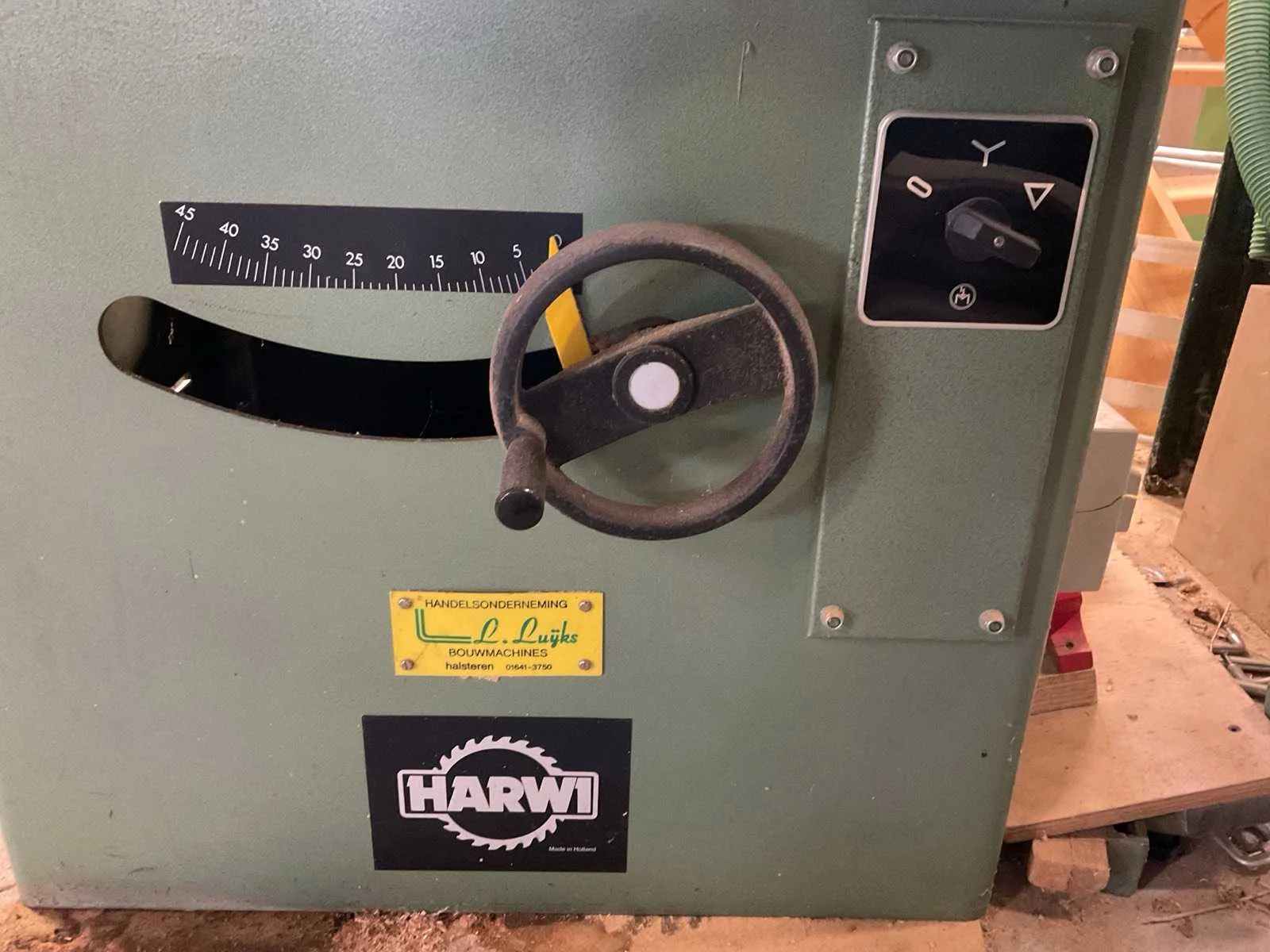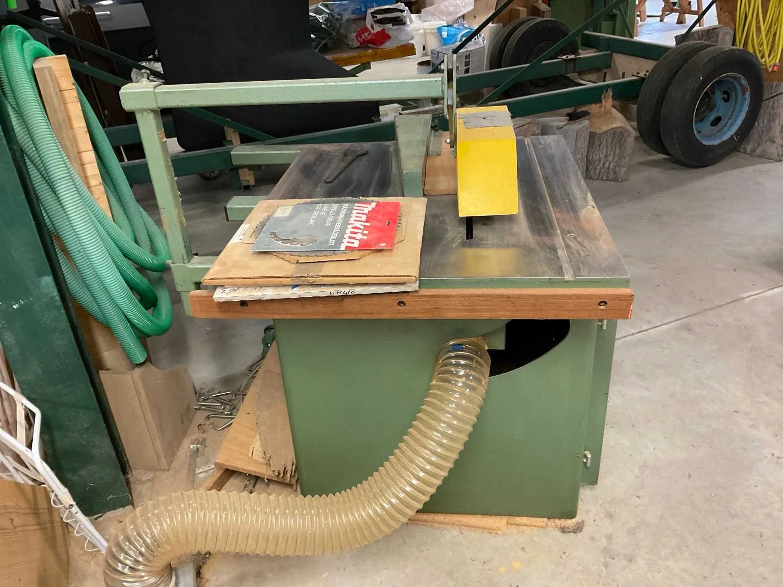 Functioneert naar behoren, voorzien van motafzuigpunt, reserve zaagbladen Nee Merk: Harwi Type: 130 103 Bouwjaar: 1989 Zaagblad Ø: 400mm Tafel afmeting l: 1050mm Tafel afmeting b: 900mm Onderliggende afkortzaag: true Motorvermogen (kW): 5.5kW Aansluiting: 380V Totale afmeting L: 1200mm Totale afmeting Breedte: 1200mm Totale afmeting Hoogte: 1300mm