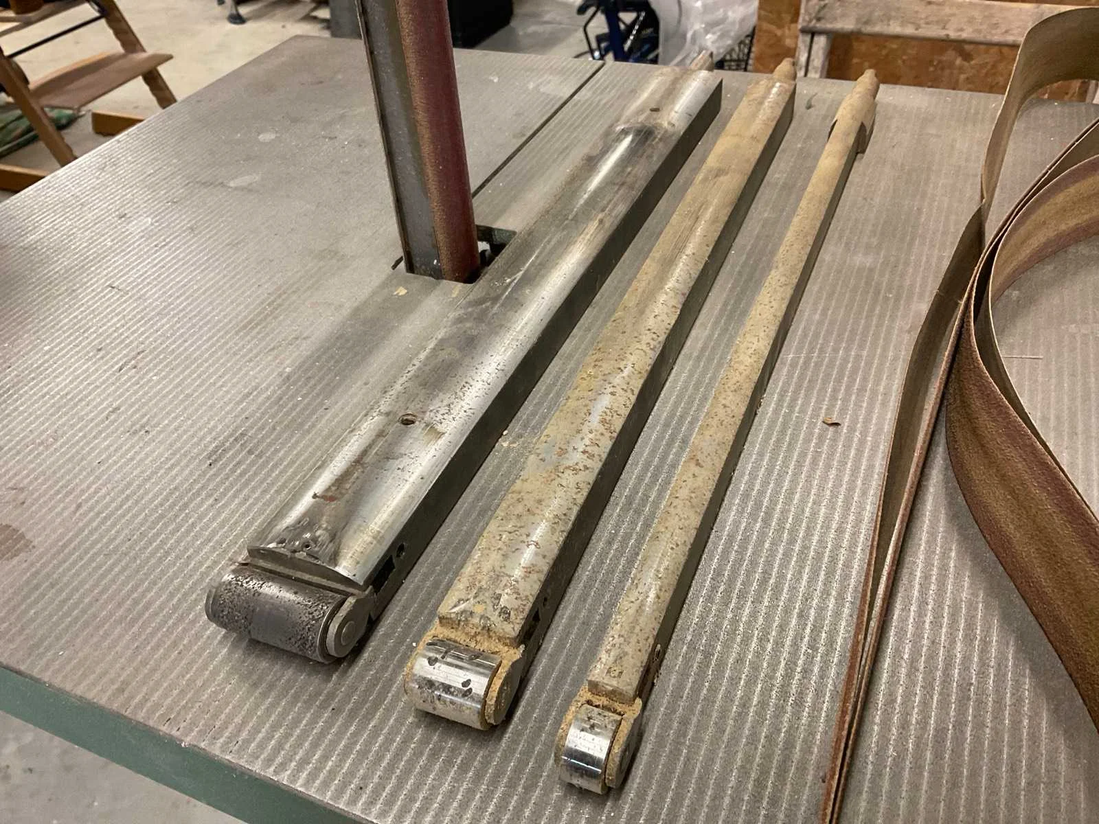 Tafelafmeting: 650x60mm. 4 schuurbandmaten (10mm, 28mm, 38mm, 48mm) Nee Merk: Zimmermann Type: PS1 Bouwjaar: 1997 Serienummer: 1006 Afmeting l: 1150mm Afmeting b: 750mm Afmeting h: 1450mm