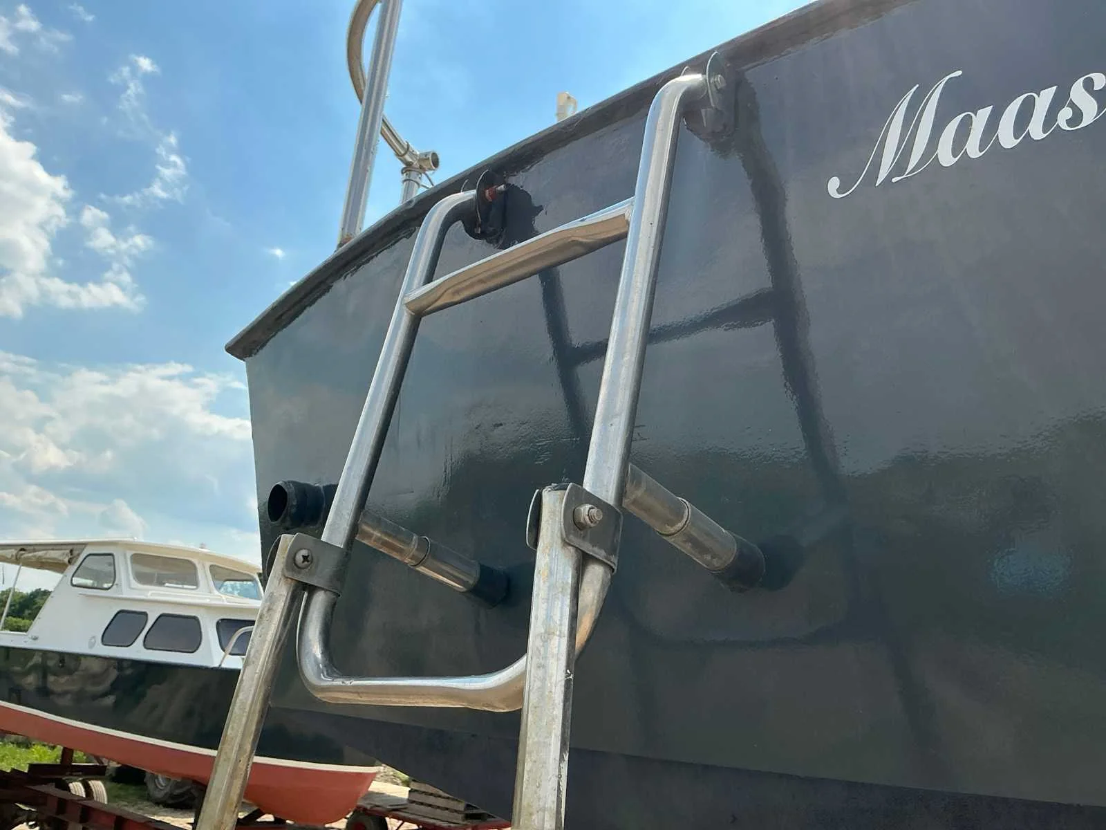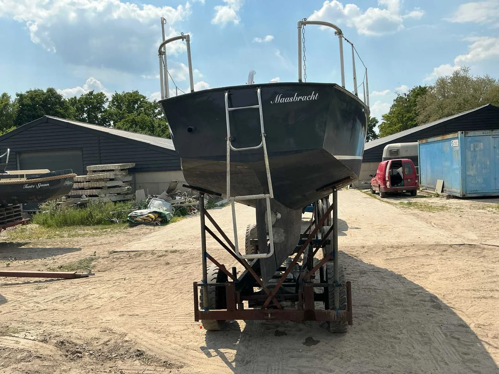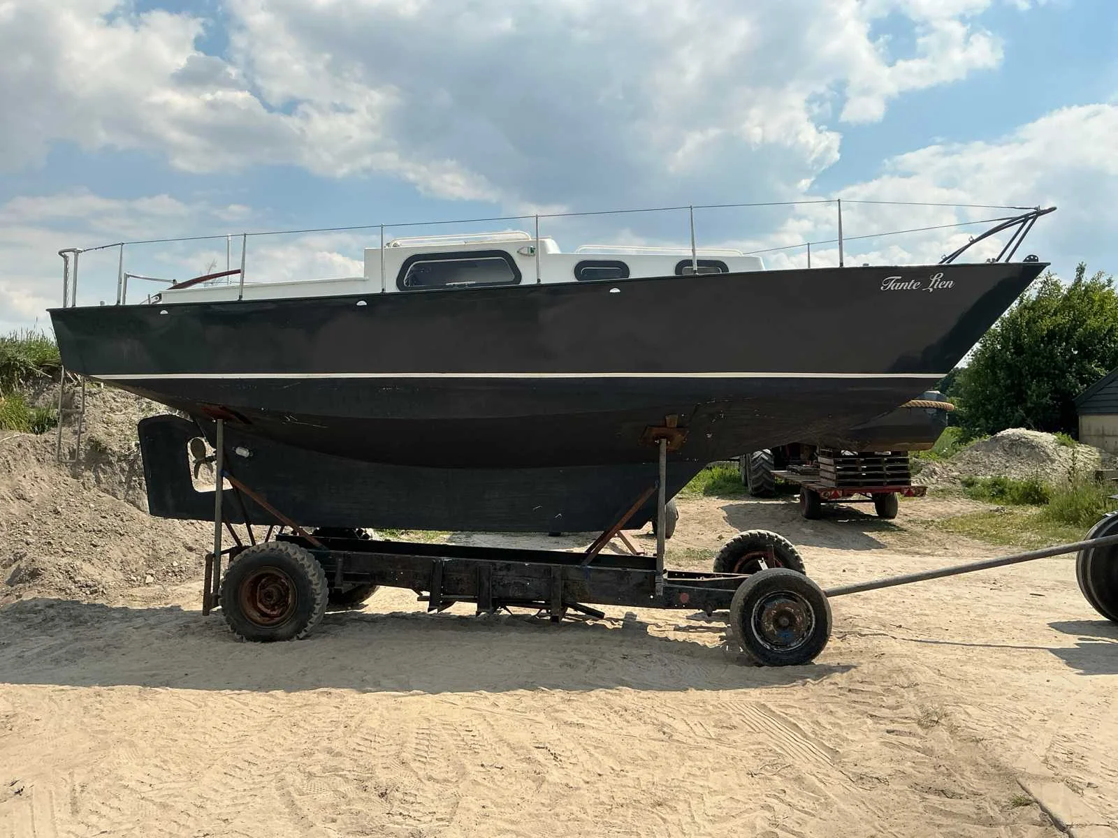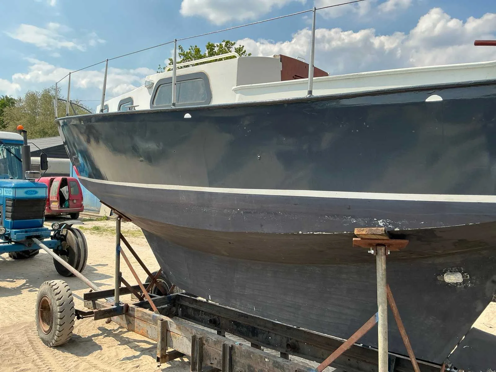 Voorzien van: Motor met elektrische start, Boordverlichting, Toilet, Keukenblok, Slaapcabine, Totale maat trailer met boot is 8300x1800 mm No Rompmateriaal: Staal Brandstof: Diesel Lengte over alles: 7.8m Breedte formaat: 2.4m Type motor: Sabb Aantal cilinders: 1