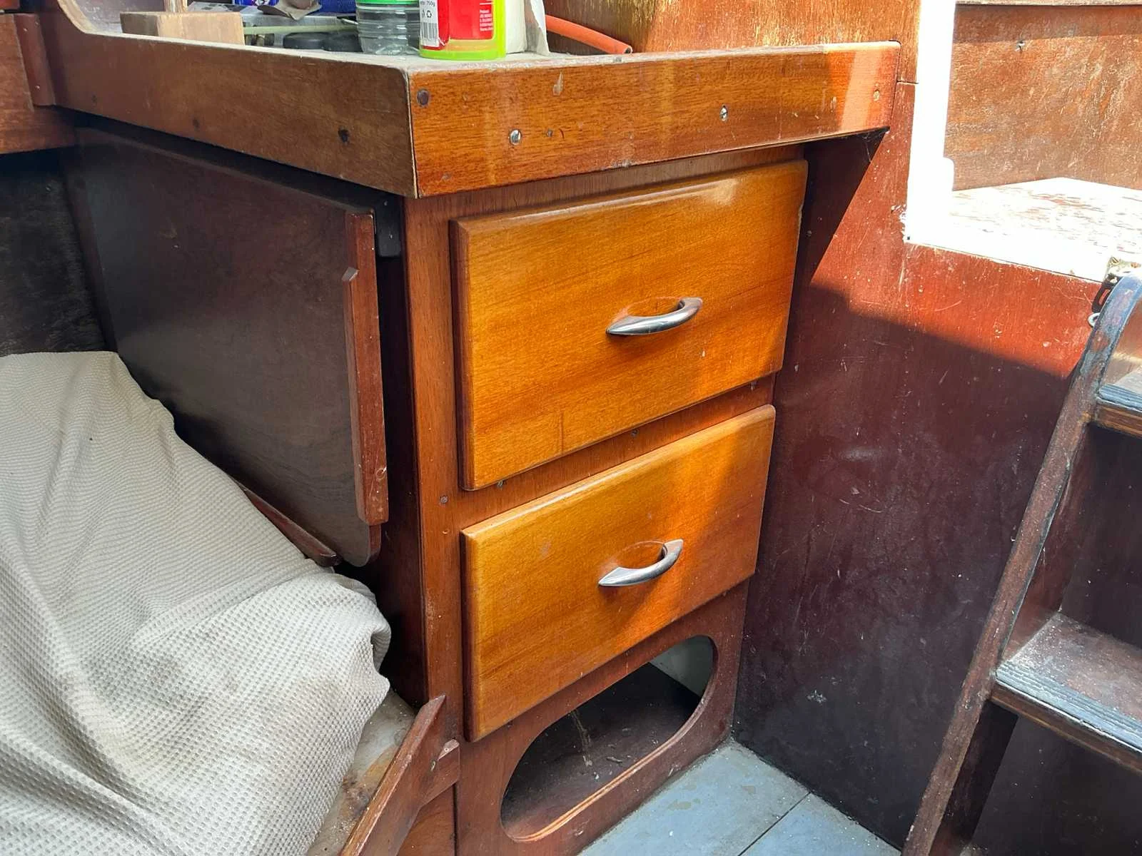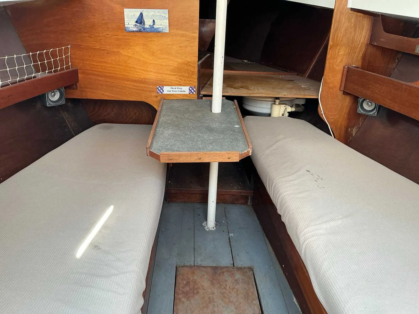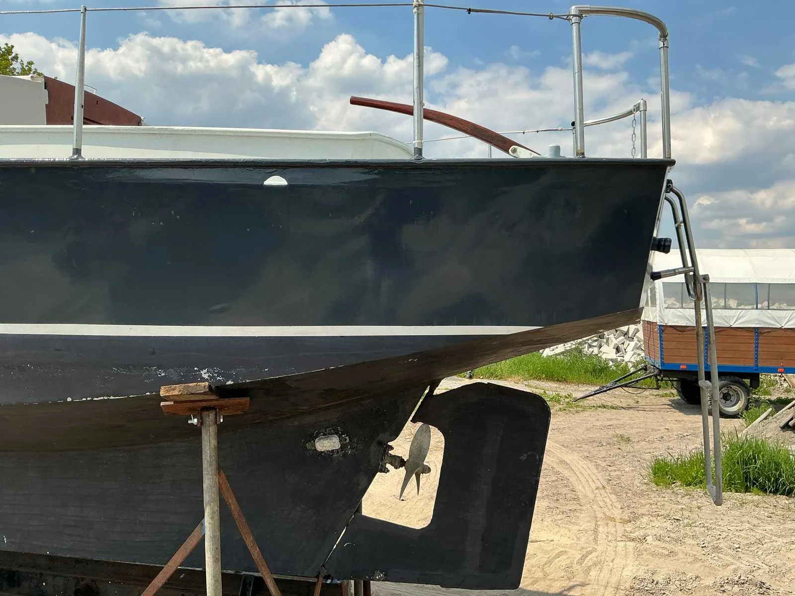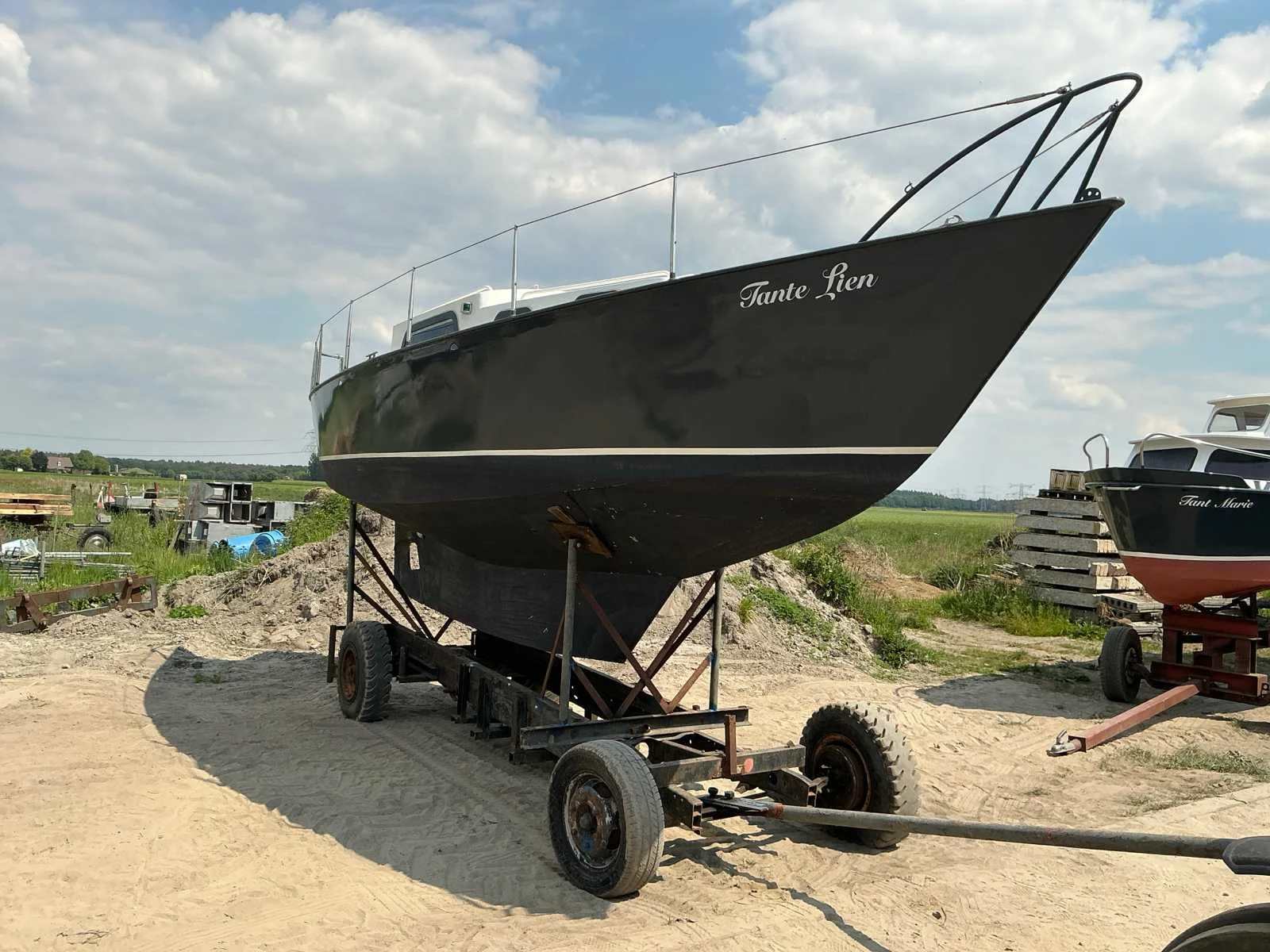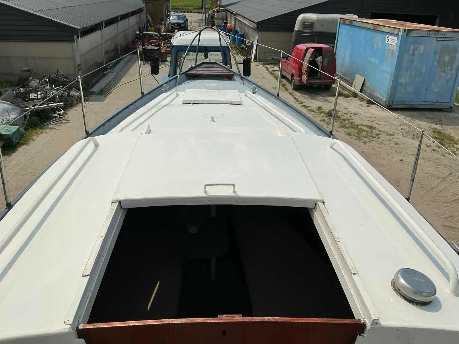 Voorzien van: Motor met elektrische start, Boordverlichting, Toilet, Keukenblok, Slaapcabine, Totale maat trailer met boot is 8300x1800 mm No Rompmateriaal: Staal Brandstof: Diesel Lengte over alles: 7.8m Breedte formaat: 2.4m Type motor: Sabb Aantal cilinders: 1