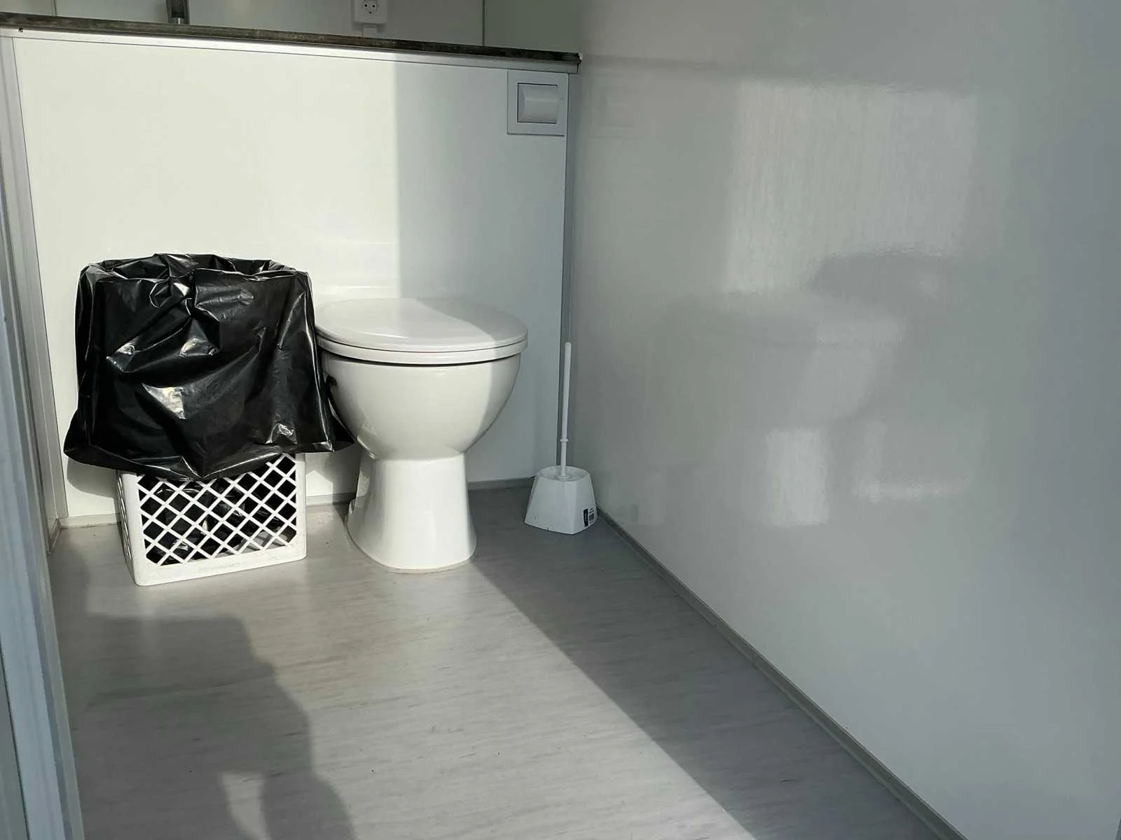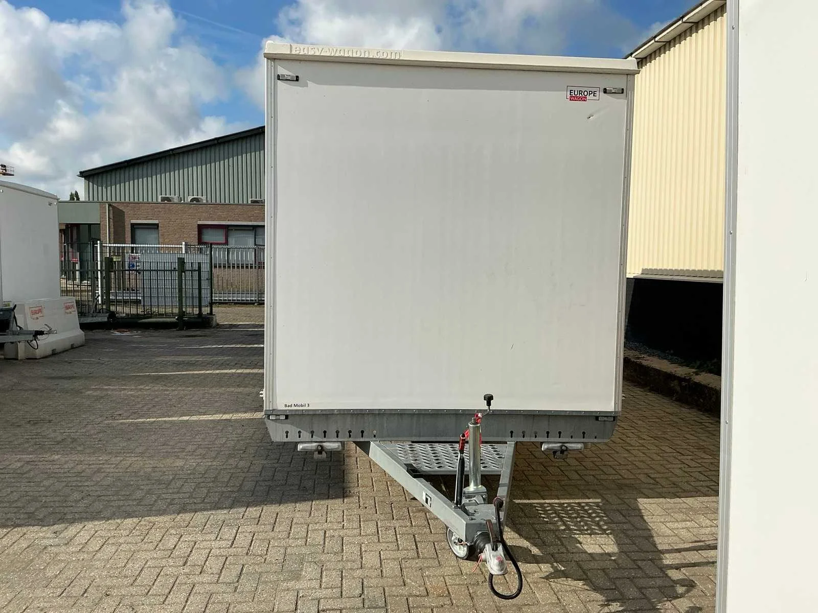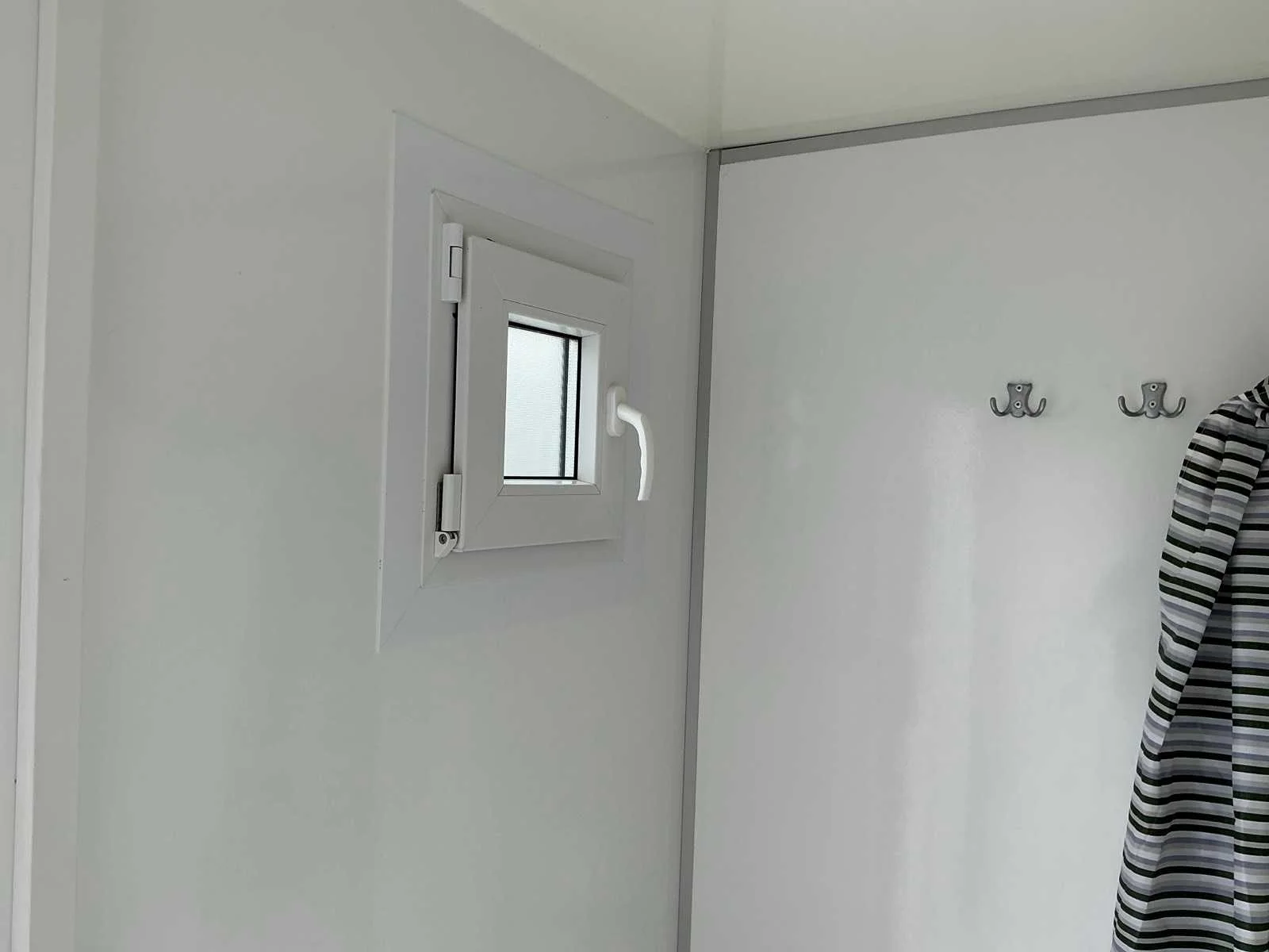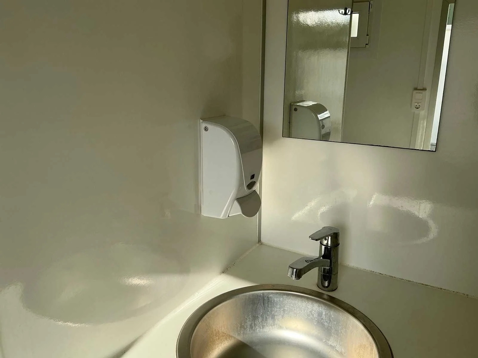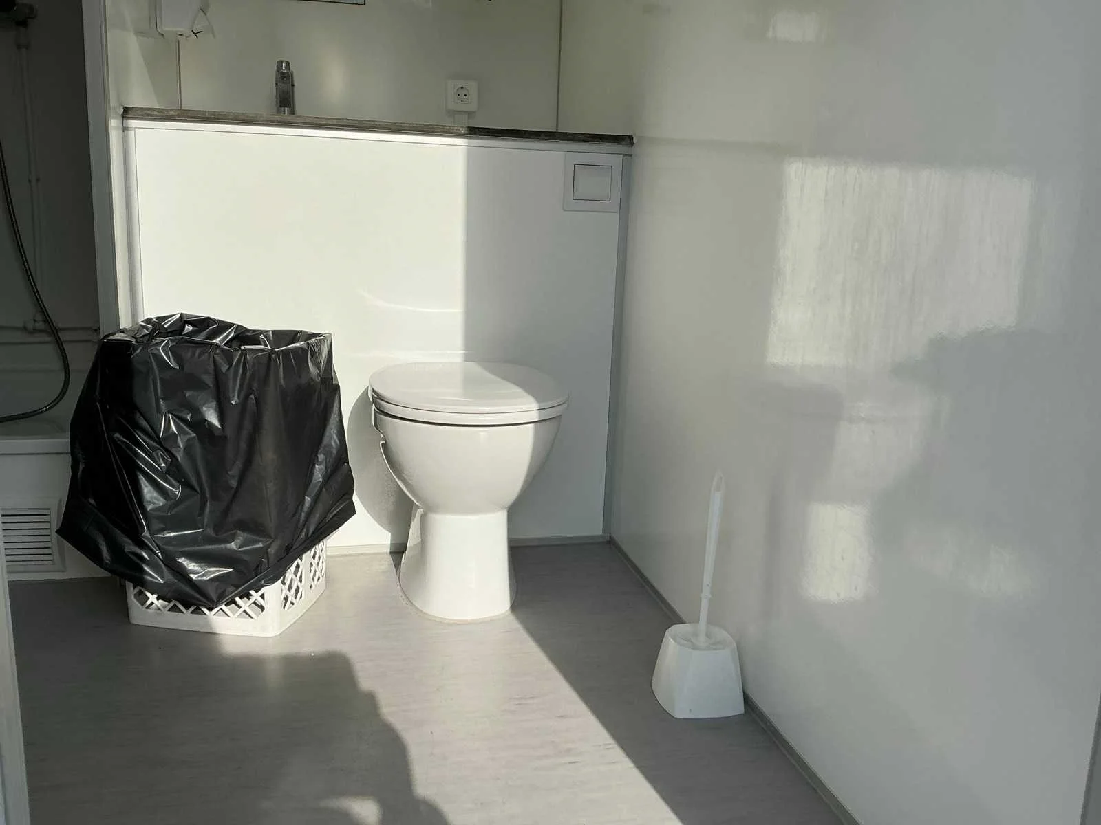 Voorzien van: 3x complete doucheruimte voorzien van toilet met toiletrolhouder vuilnisbak en toiletborstel, wasbak met kraan en spiegel en zeeppompdispenser, bankje, douchebak met douchekraan en gordijn, electrische kachel, verlichting, trapje, technische ruimte per doucheruimte ( 30L boiler, antivrieskachel, spoelbak toilet), aansluiting 1x 110 PVC, 1x 3/4 wateraansluiting, 1x 400V 16A aansluiting, steunpoten Nee Merk: Easywagen Type: 660 Bouwjaar: 2018 Afmeting l: 6600mm Afmeting b: 2500mm Afmeting h: 2900mm Aantal ramen: 3 Aantal toiletten: 3 Aantal wastafels: 3 Aantal douches: 3 Eigen gewicht: 2000kg