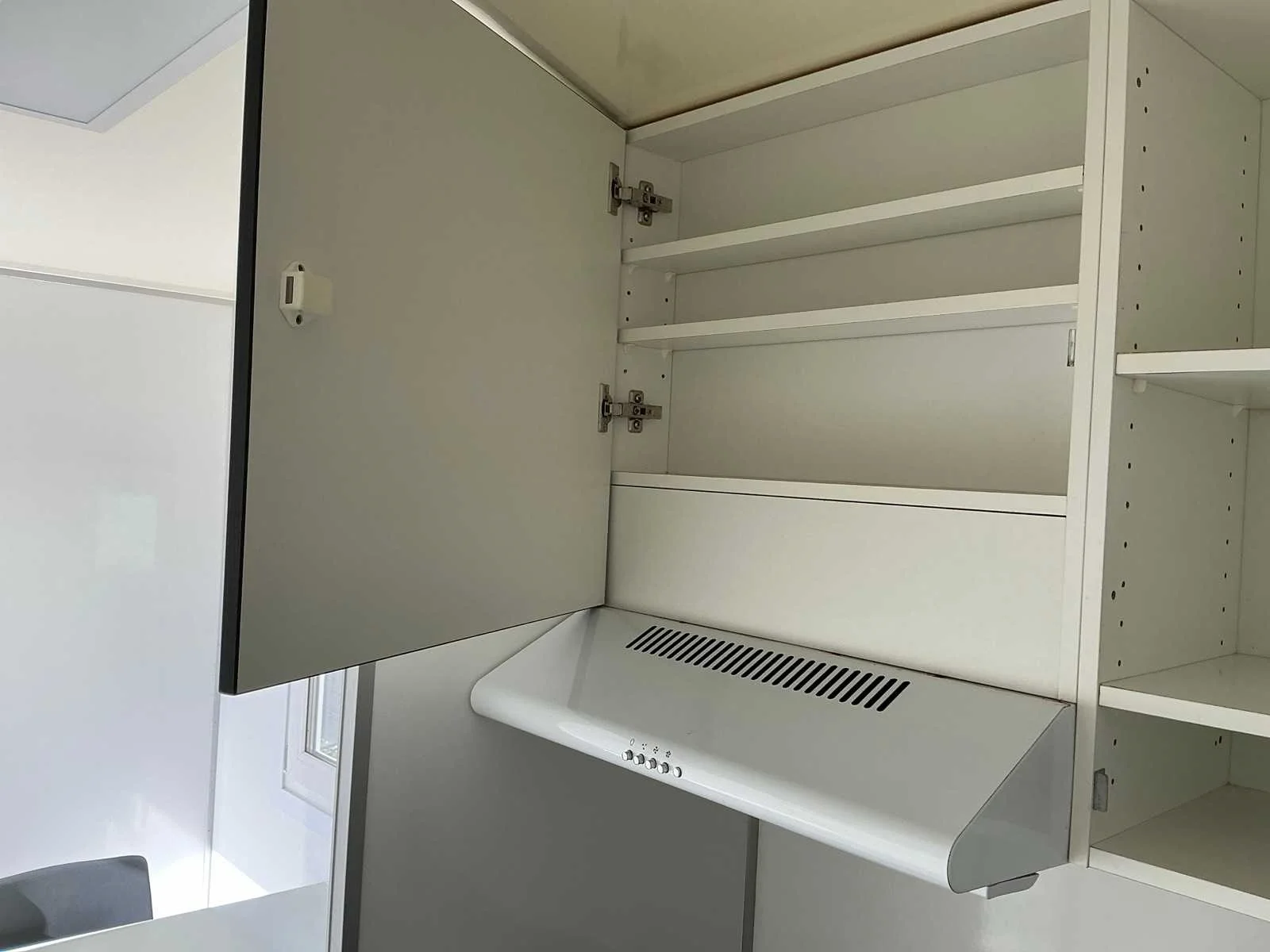 Voorzien van: 4 slaapkamers met 1 persoonsbed en opbergruimte voorzien van electrische kachel, stopcontact, raam met verduistering, verlichting, keukenblok met vaatwasser, koelkast, spoelbak en spoelkraan, opbergruimte, electrische kookplaat, magnetron, koffiezetapparaat, afzuigkap, tafel met 4 stoelen, electrische kachel, TV, sanitairruimte met toilet, douche, wastafel, 30L boiler en vermaalpomp, ontluchting, steunpoten Nee Merk: Easywagen Model: 730 4K 4P Kleur: Wit Gewicht: 2500 Lengte: 7300 Breedte: 2500 Hoogte: 2900